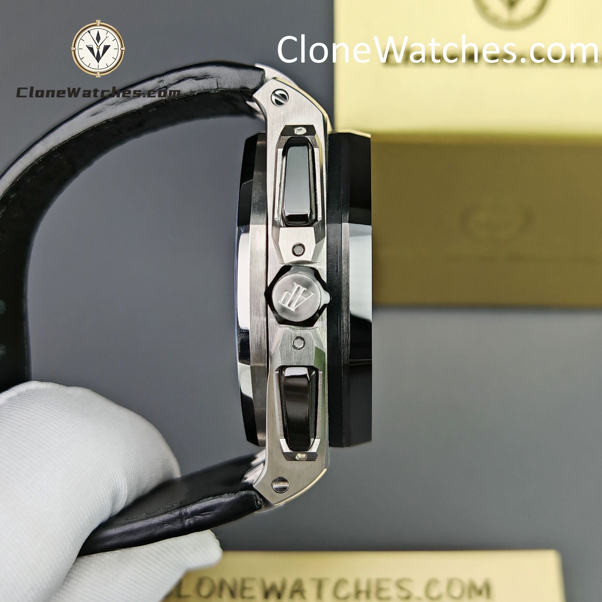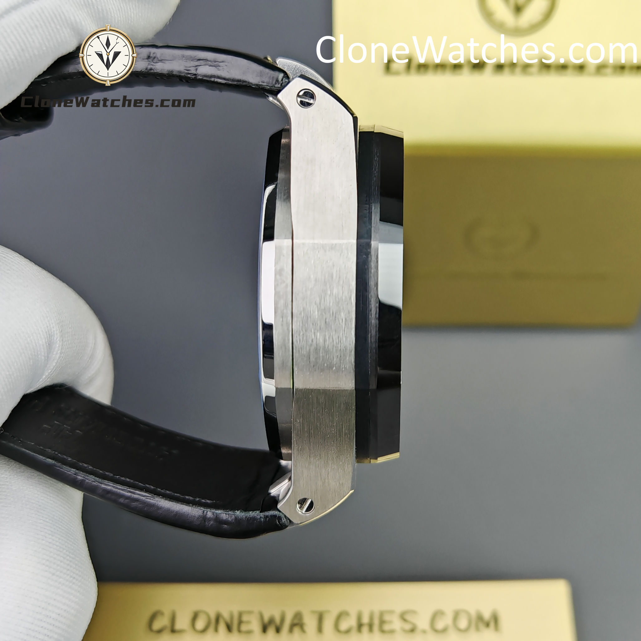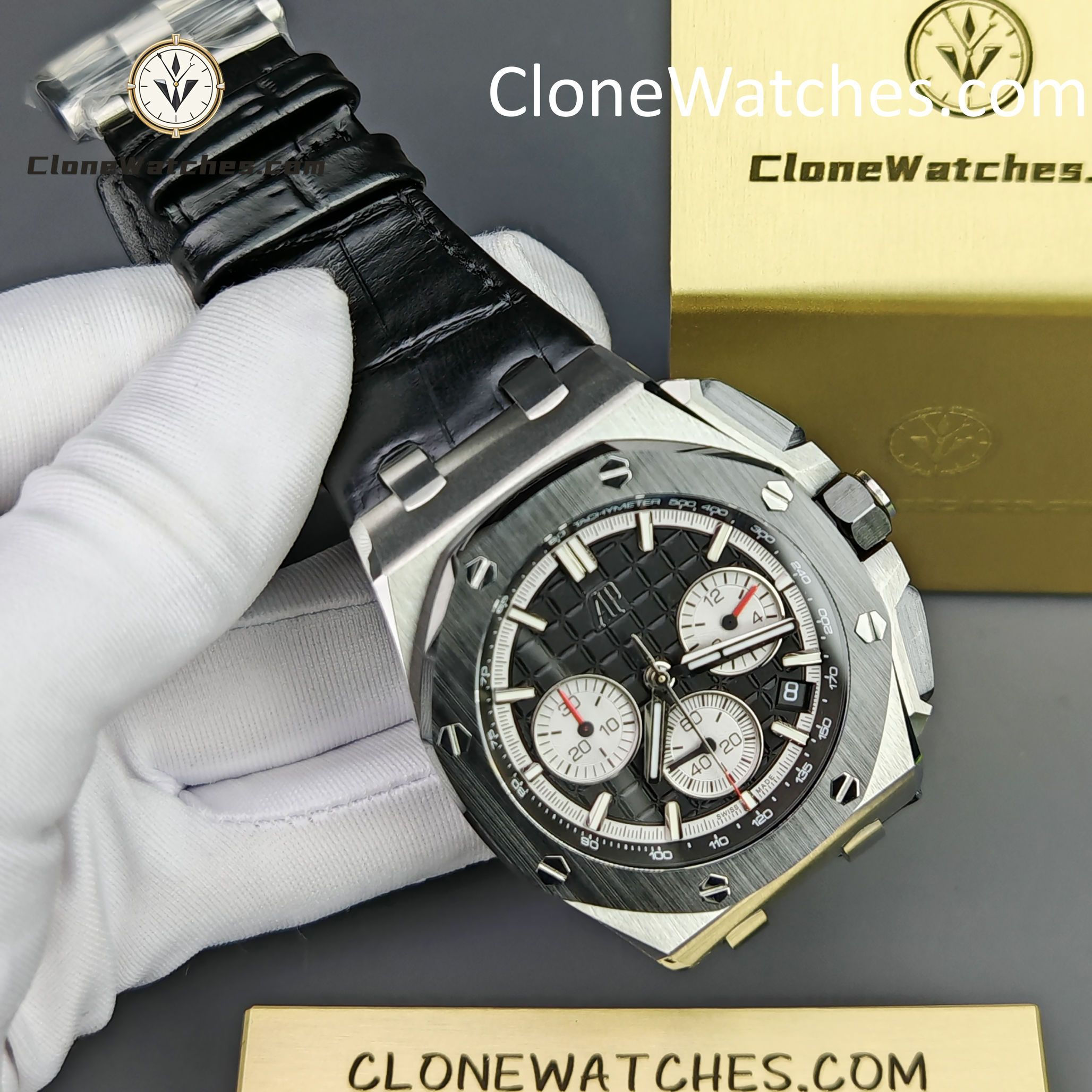 Clone Watches strap and buckle universal original technology realize quick release technology and can be interchanged with the original. The lettering adopts vertical and horizontal checkered surface, which is domineering and luxurious. The movement uses a customized Clone movement that is consistent with the original 4401 movement.