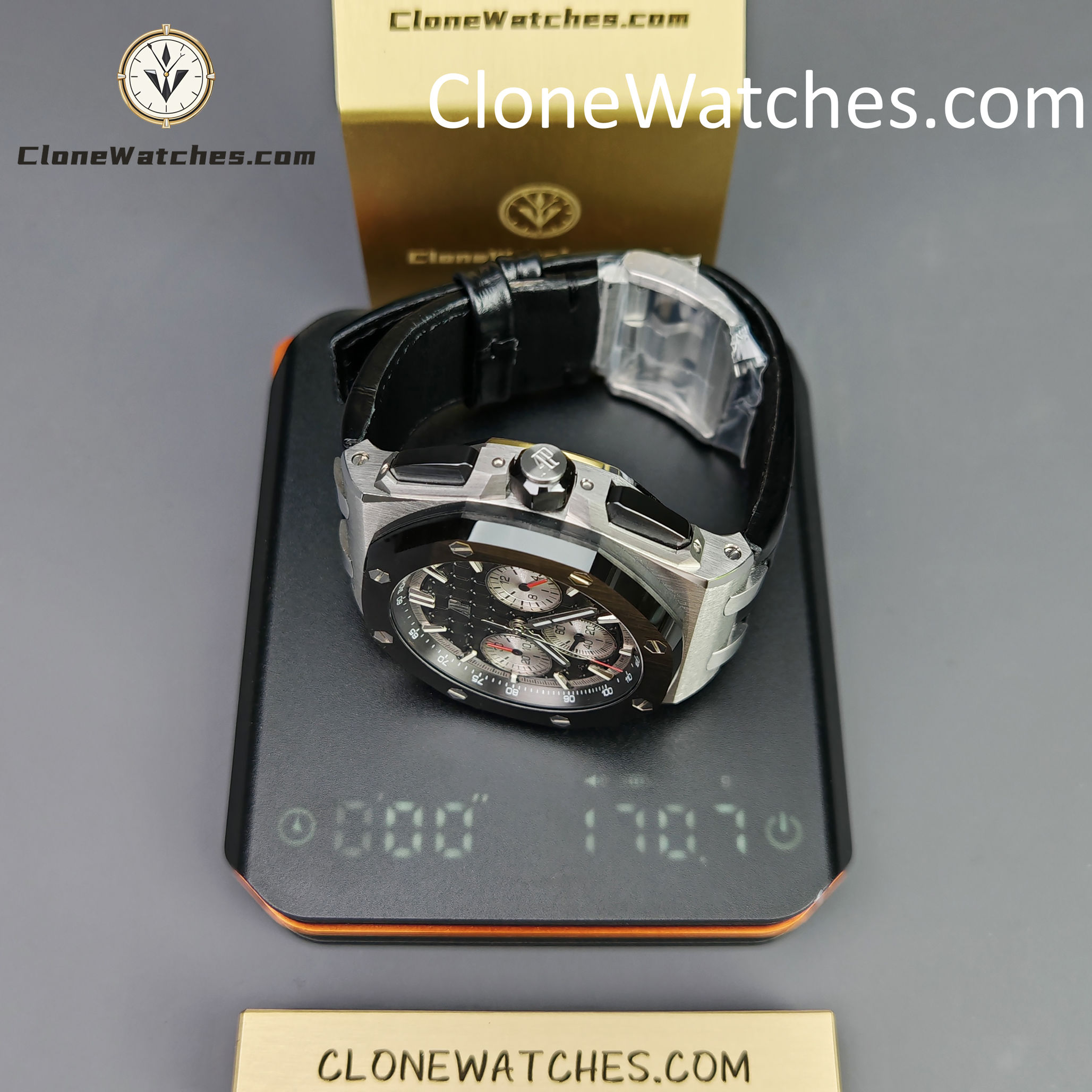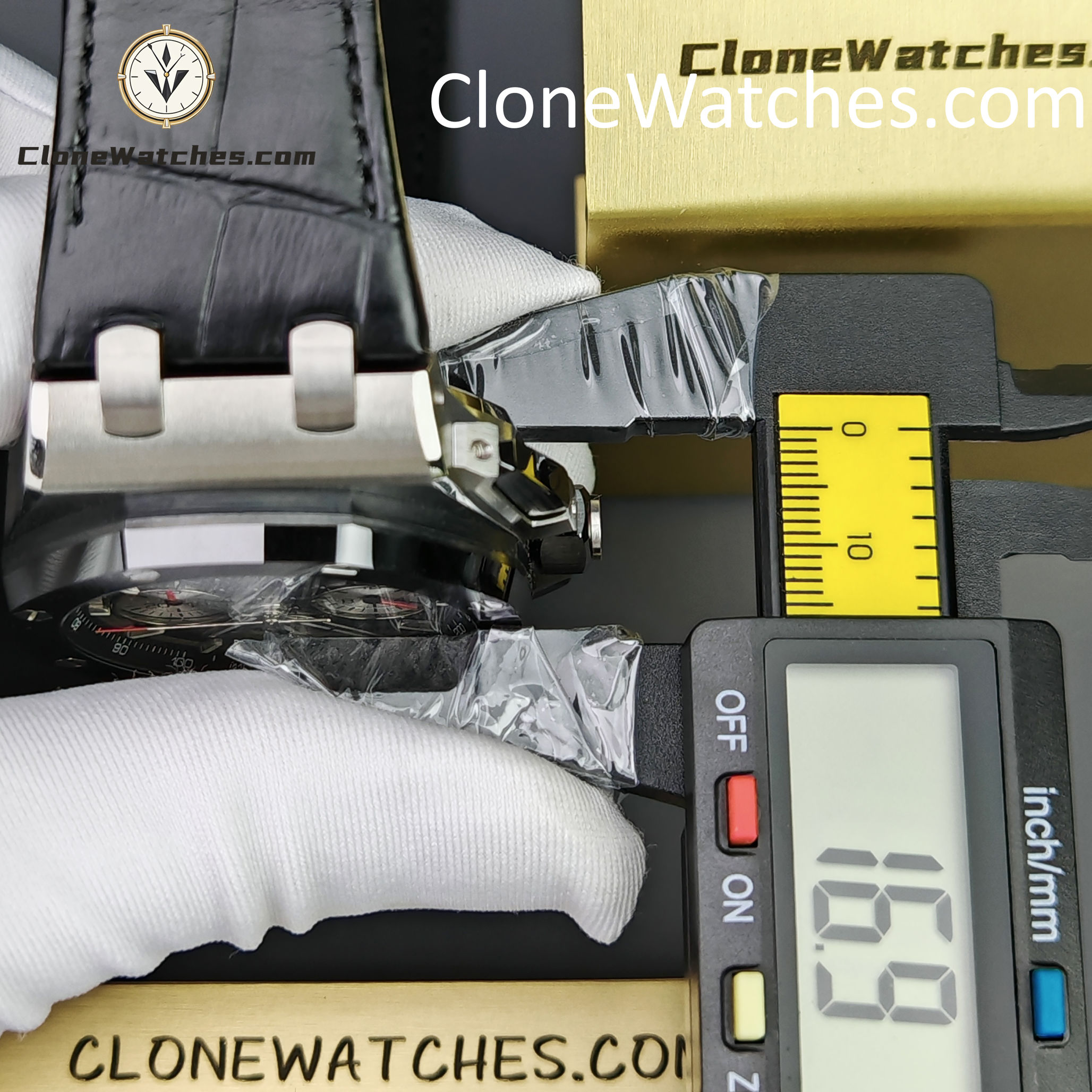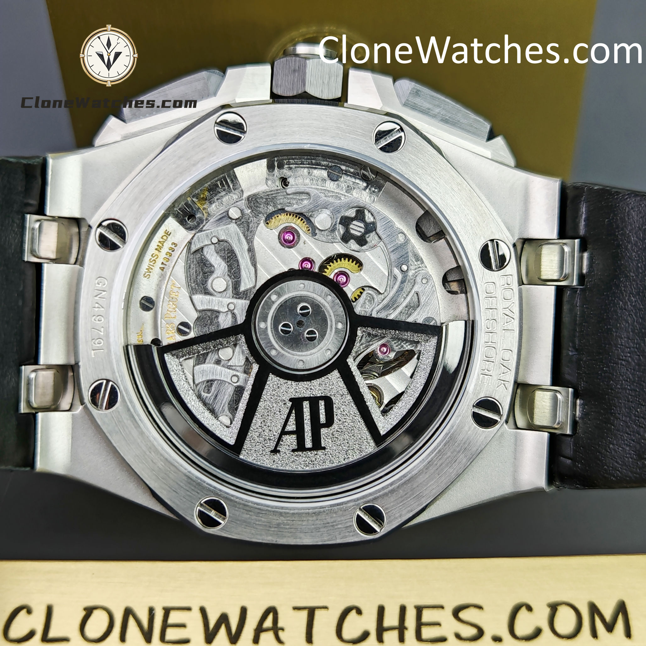 Clone Watches strap and buckle universal original technology realize quick release technology and can be interchanged with the original. The lettering adopts vertical and horizontal checkered surface, which is domineering and luxurious. The movement uses a customized Clone movement that is consistent with the original 4401 movement.