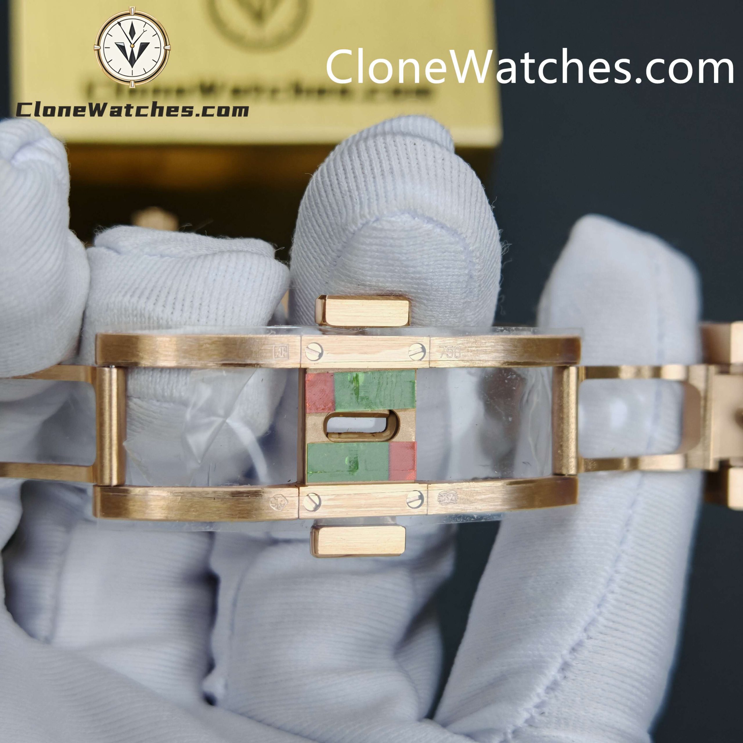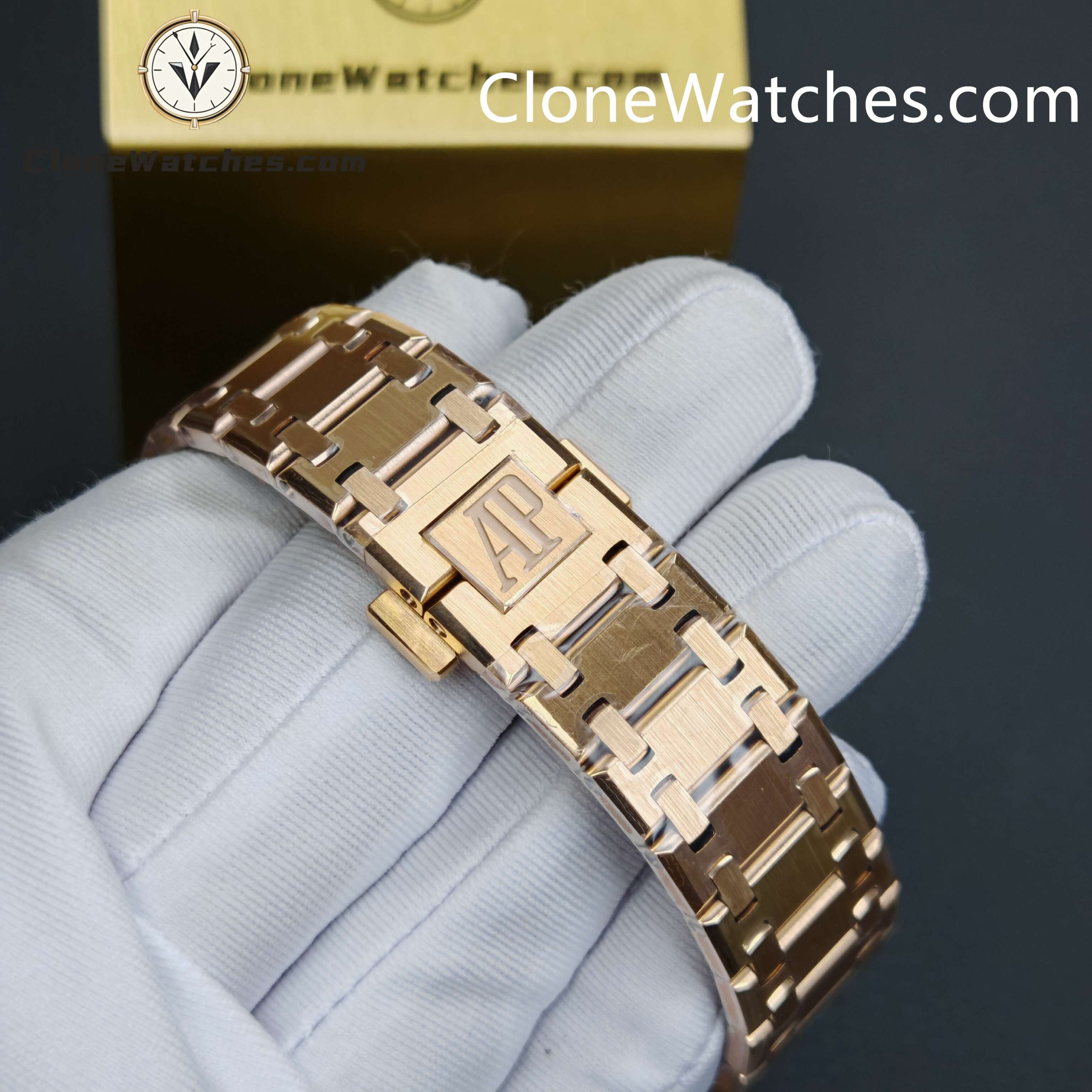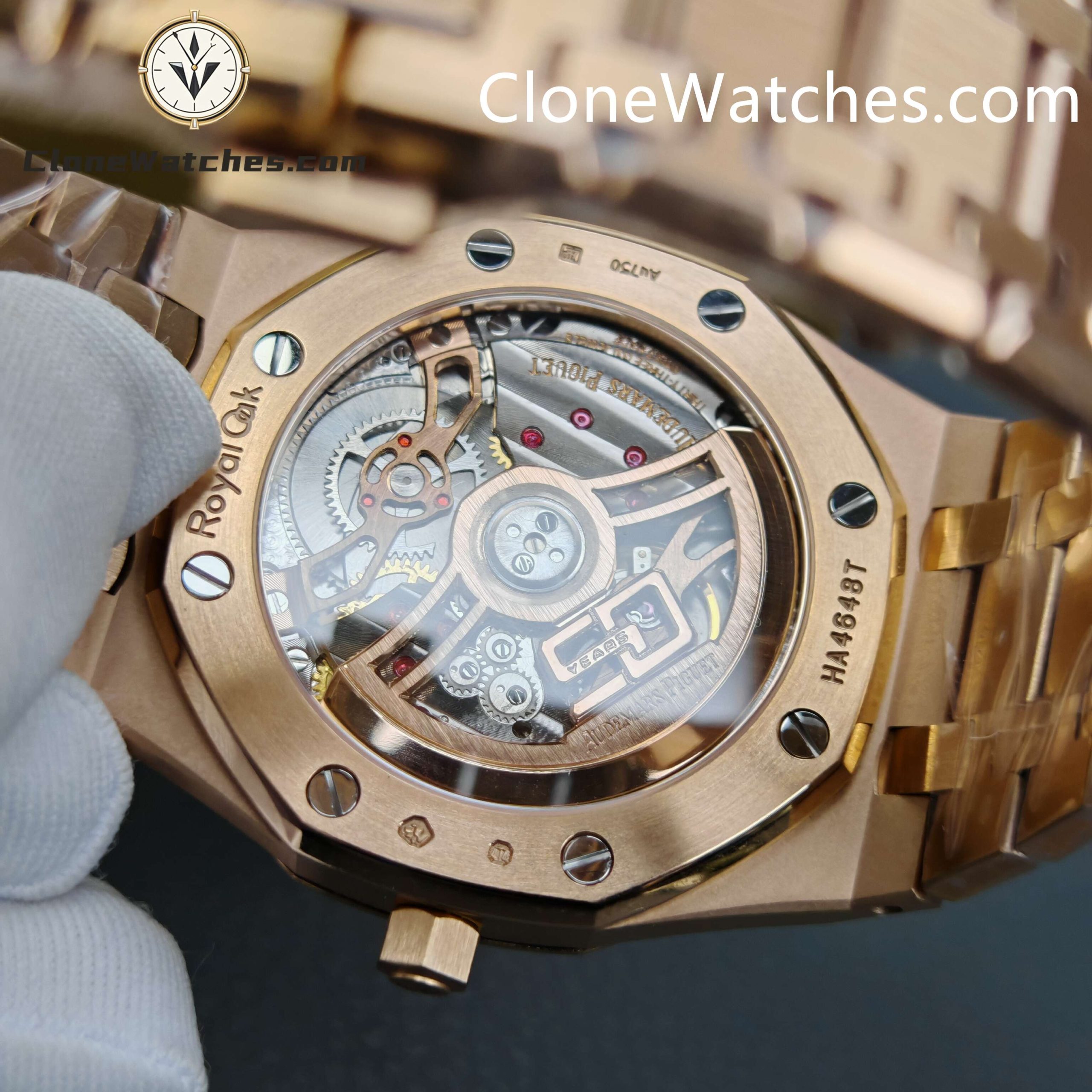 The calendar window at three o’clock is a typical daily wear function. The transparent bottom cover can display the latest 50th anniversary movement of the Royal Oak. Clone Watches uses a customized Calibre 7121 movement, and is still equipped with the “Steel King” classic steel strap and folding butterfly buckle strap. The ultimate sports style takes into account the comfort of wearing, creating the Royal Oak “Jumbo” ultra-thin watch with the highest daily use rate!
