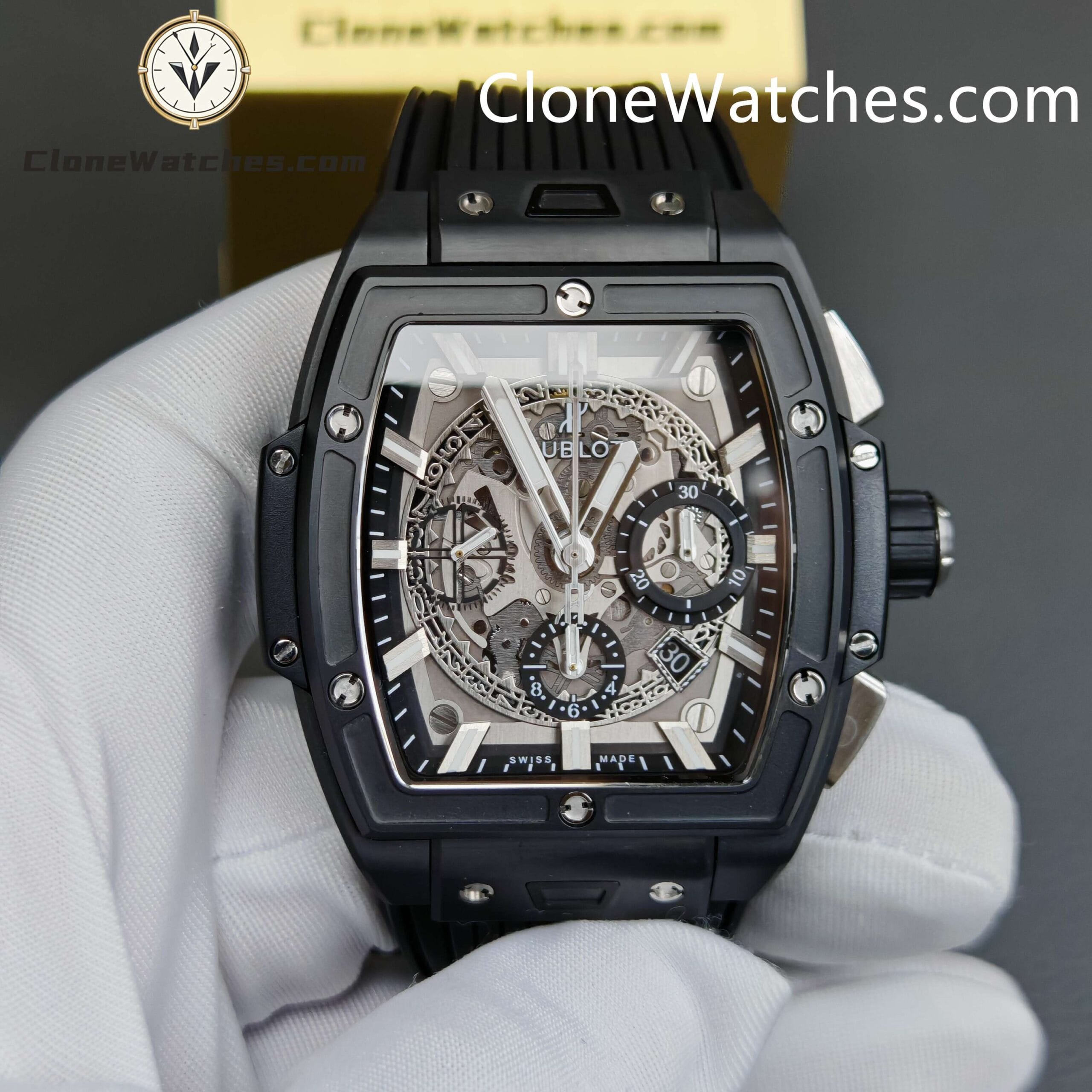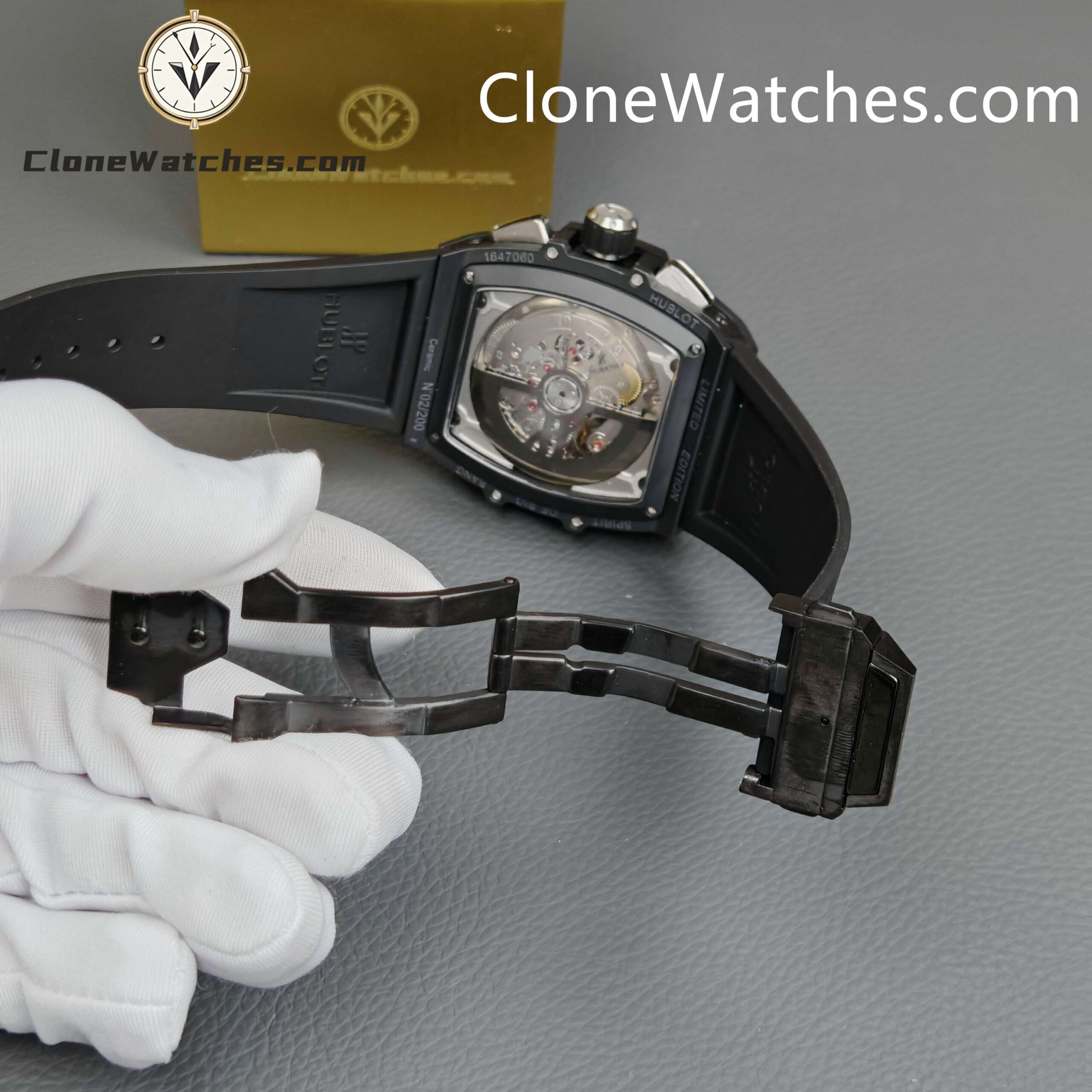 Hublot Spirit of Big Bang Black Magic Super Clone Watches Combining all the iconic features of the Spirit of Big Bang series, the new barrel-shaped case. The case is made of titanium and resin, and uses six H-shaped screws to build a “sandwich” structure, conveying the concept of “integrated technology”, perfectly Clone’s exclusive customized HUB4700 movement, original folding clasp, and customized fluororubber strap. Clone Watches is equipped with a “one-button” quick-change strap system. The wearer can easily and quickly replace the strap with just a light press! ! !