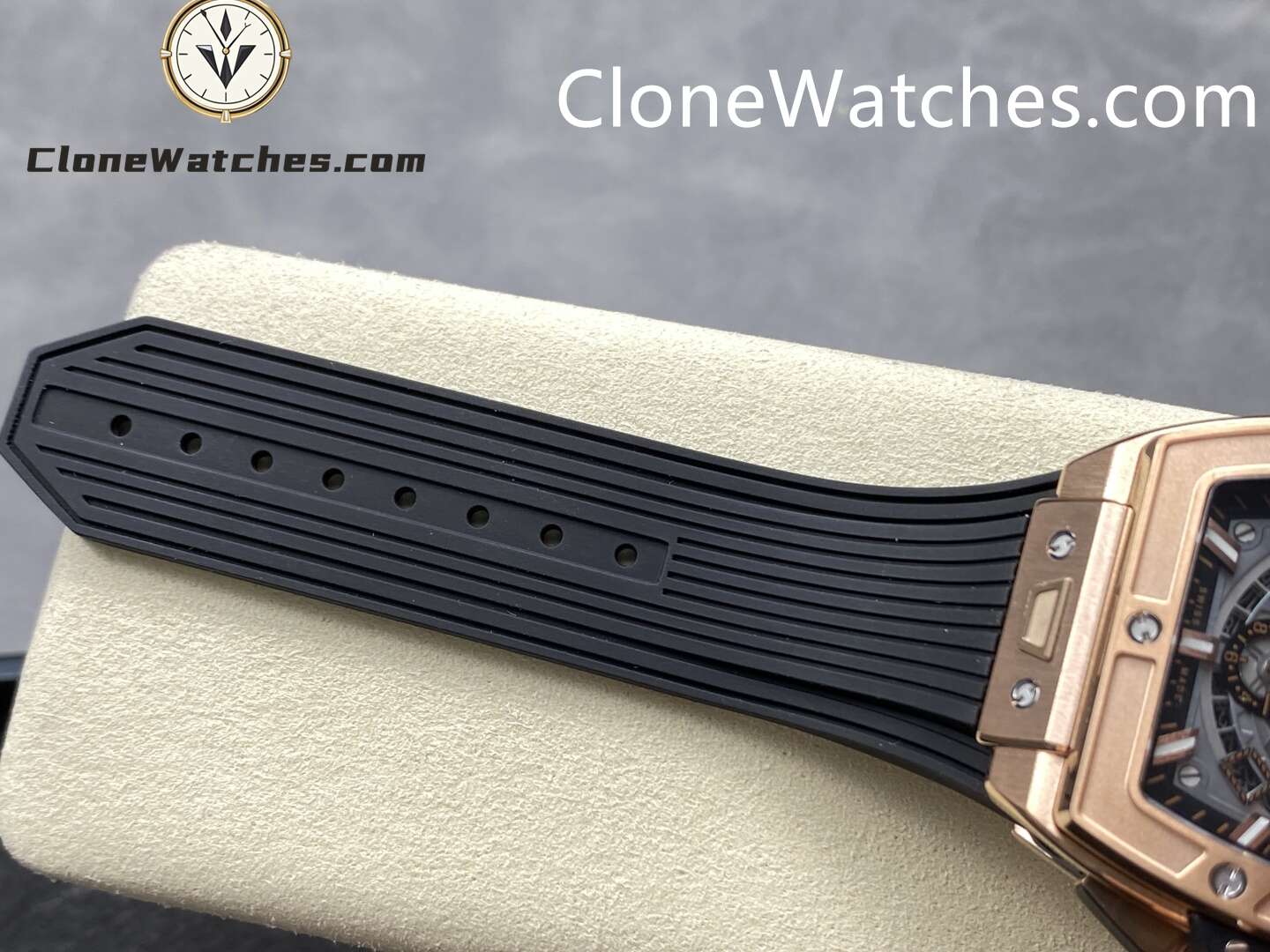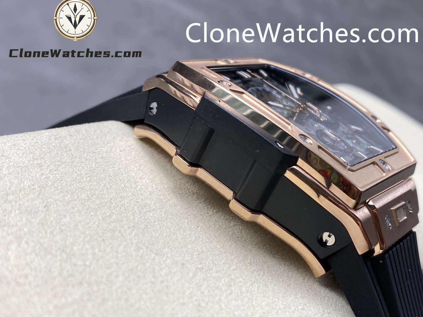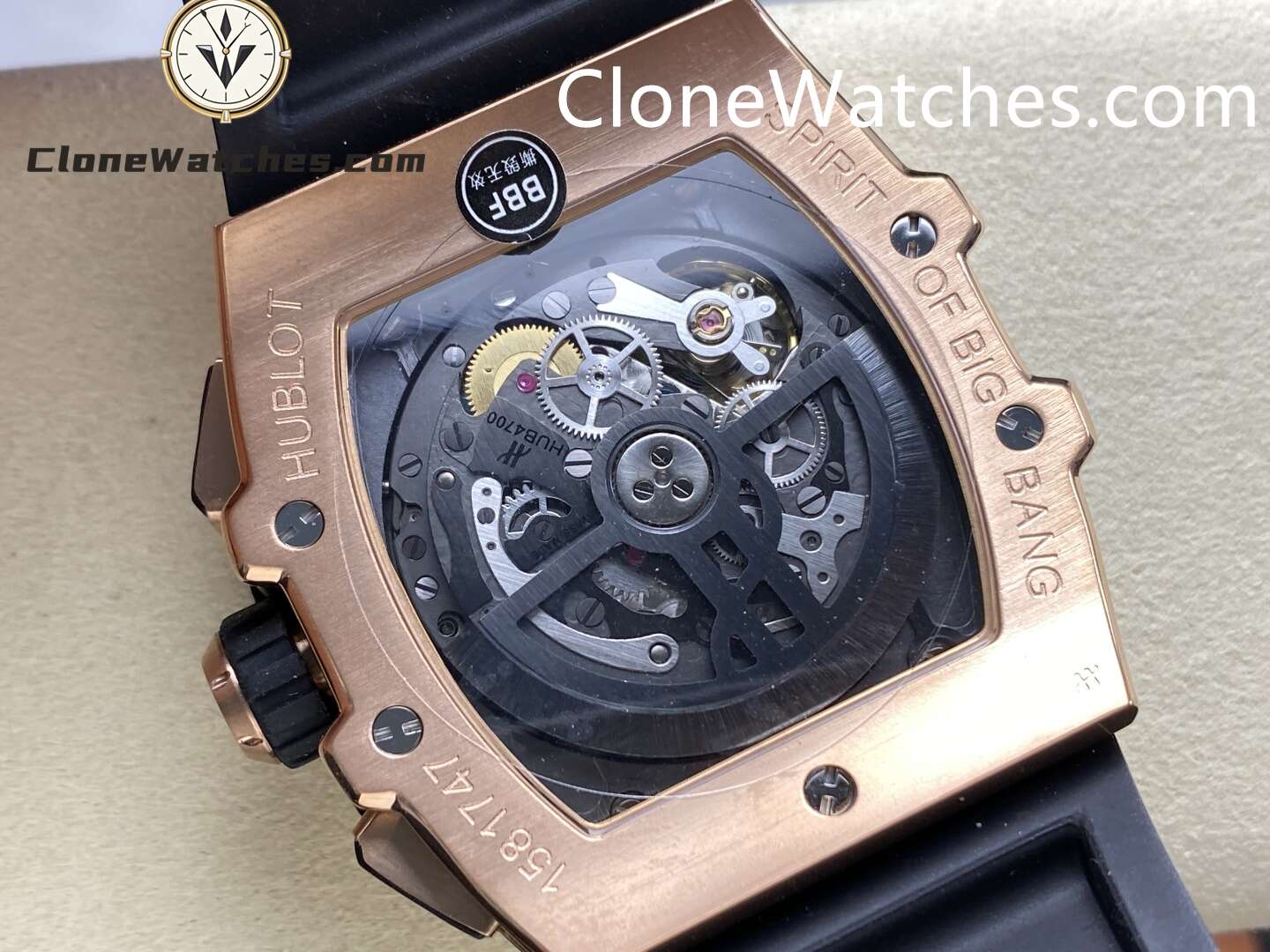 Hublot Spirit of Big Bang King Gold Super Clone Watches combines all the iconic features of the Spirit of Big Bang series with a new barrel-shaped case. The case is made of titanium (Rose gold plated) and resin material, and uses six H-shaped screws to build a “sandwich” structure to convey the concept of “integrated technology”. It is perfectly cloned with an exclusive customized HUB4700 movement, original folding clasp, and customized fluororubber strap. Clone Watches is equipped with a “one-button” quick-change strap system. The wearer can easily and quickly replace the strap with just a light press! ! !