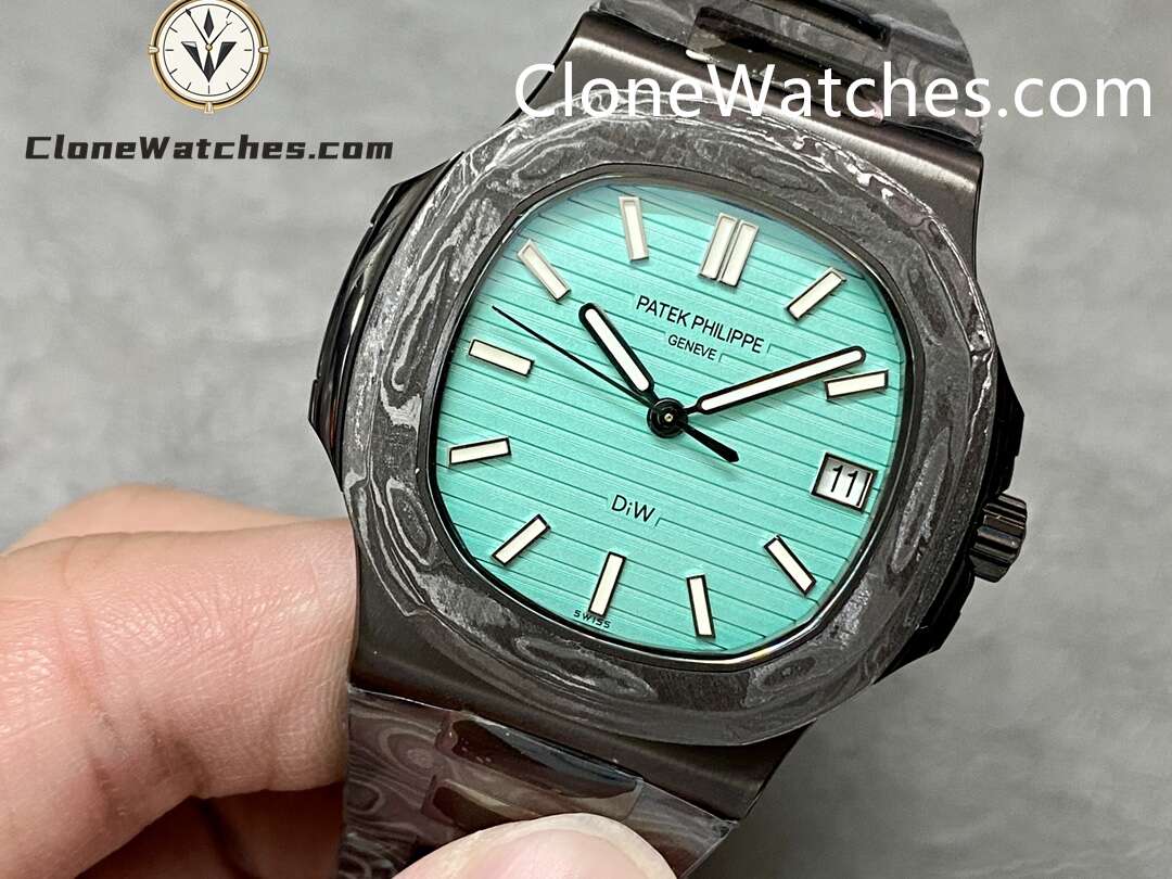 With the aesthetic presentation of carbon fiber, DiW gives the Nautilus 5711 watch a different style.
