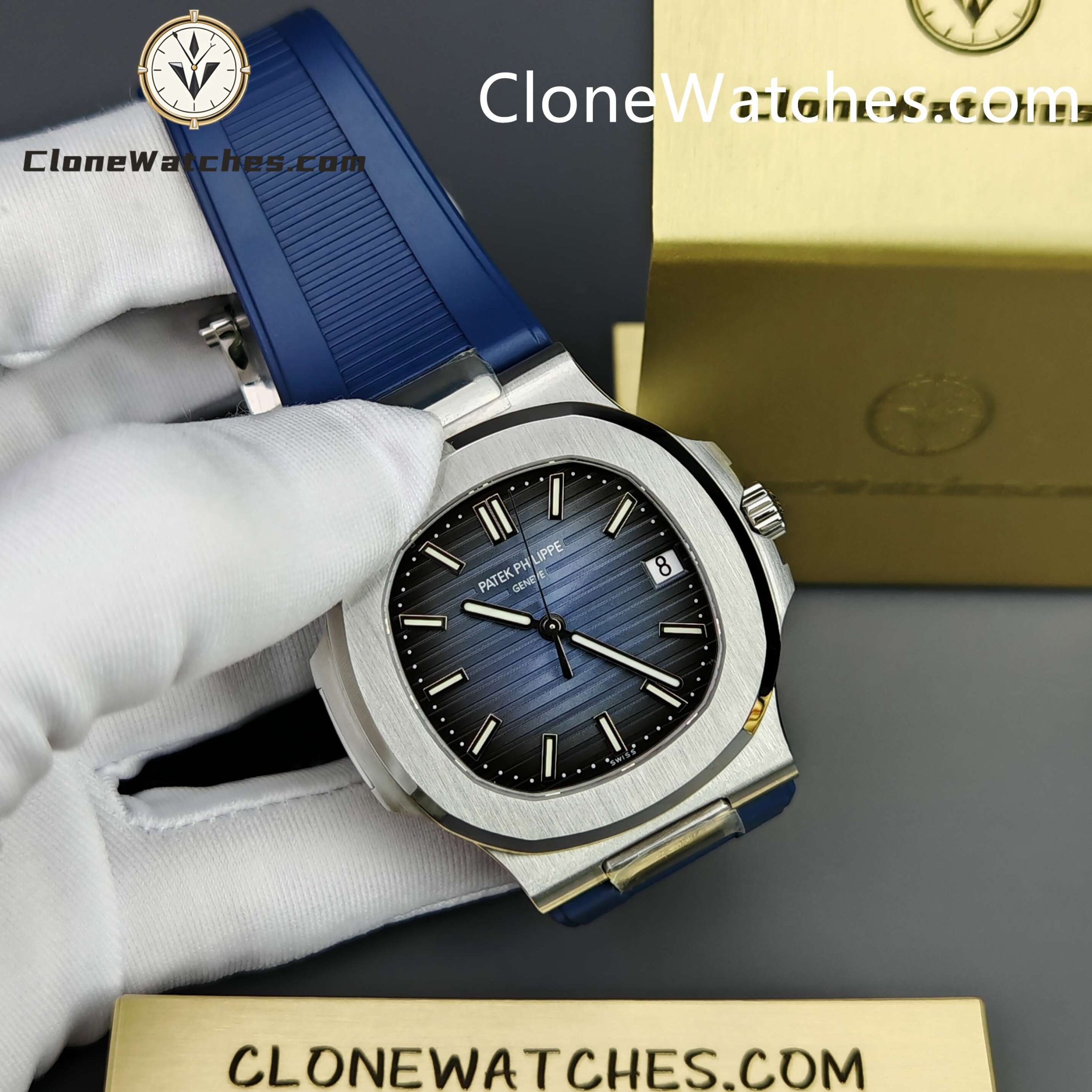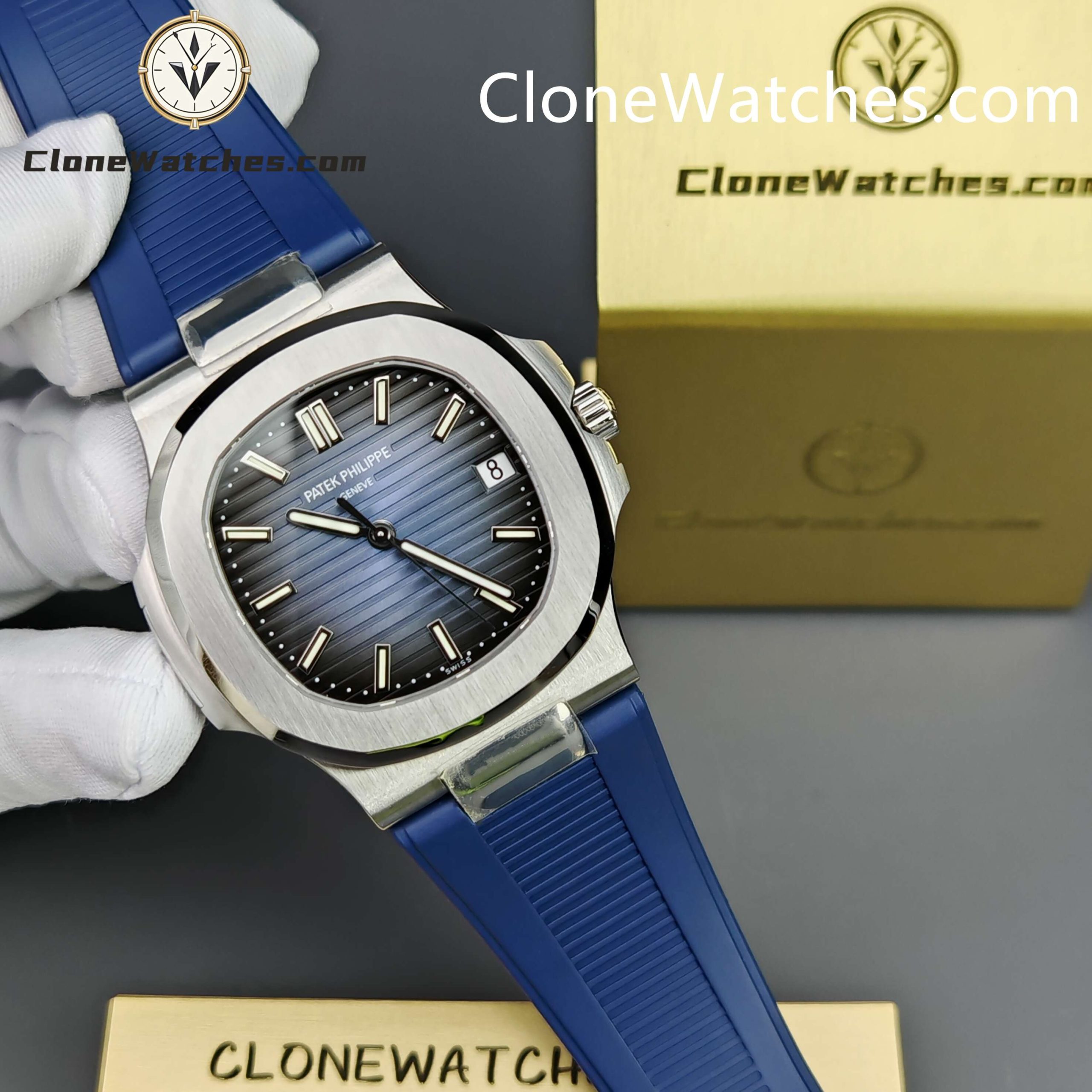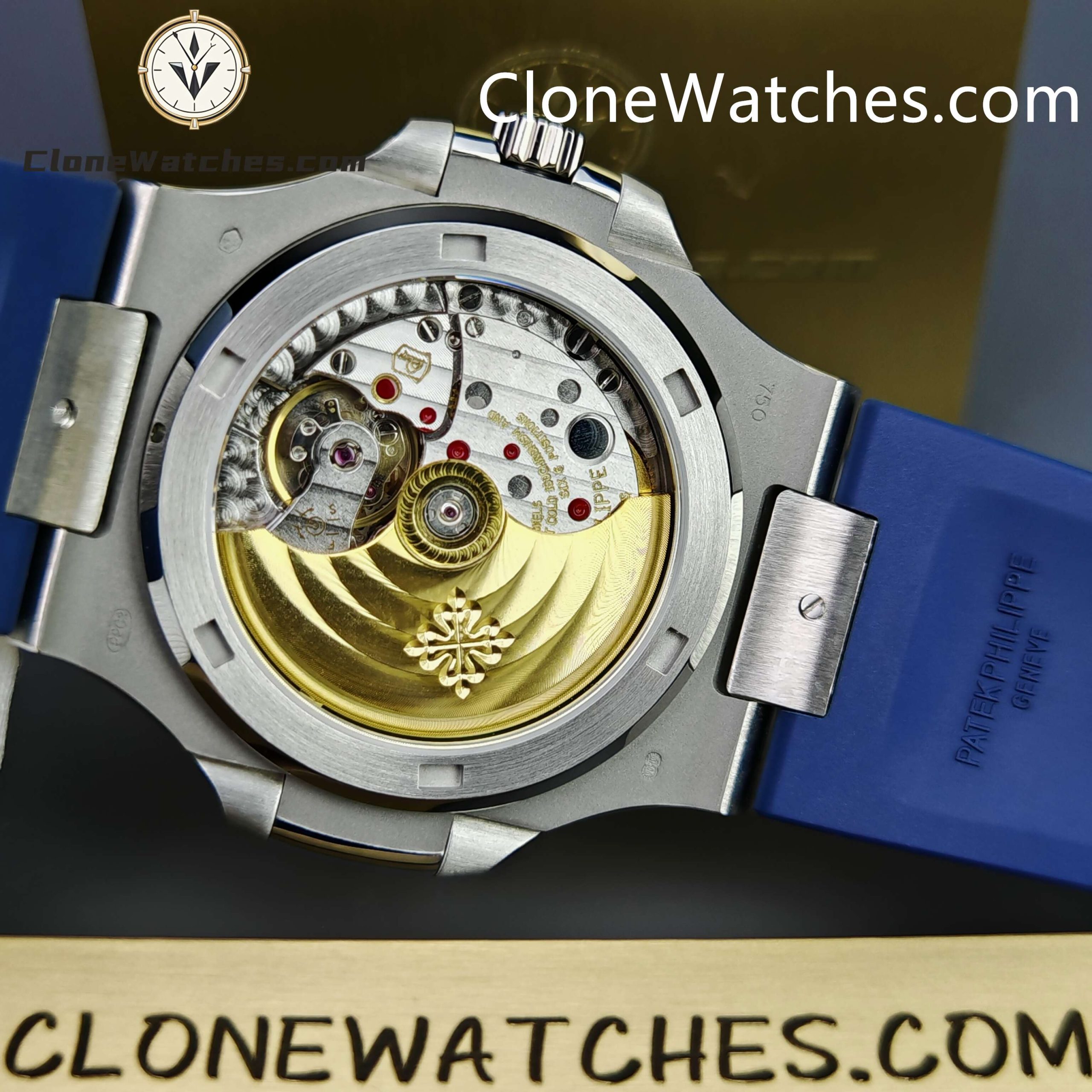 Patek Philippe Super Clone Watches 1:1 Nautilus 5711/1R Blue Dial Blue Rubber Strap