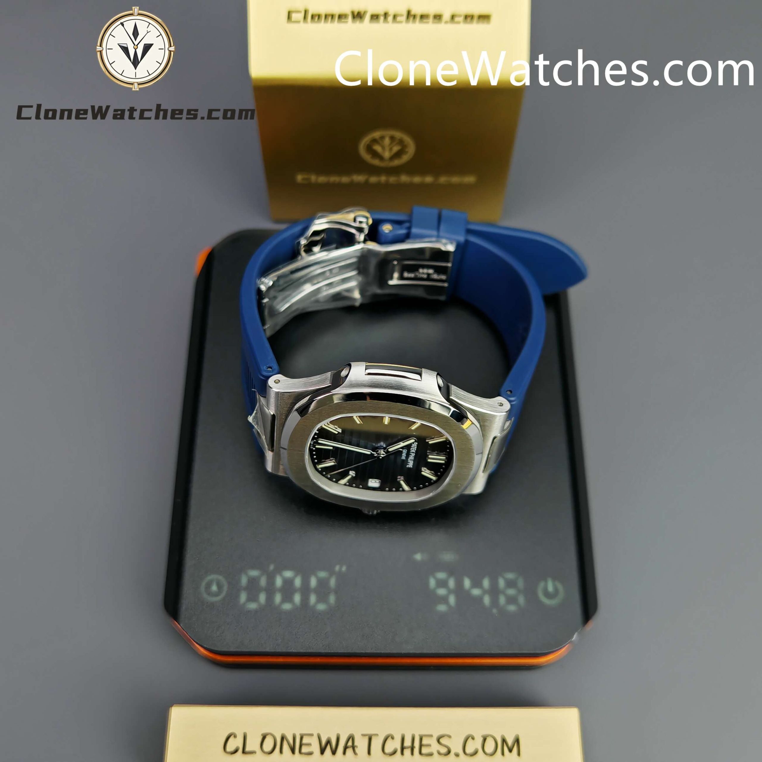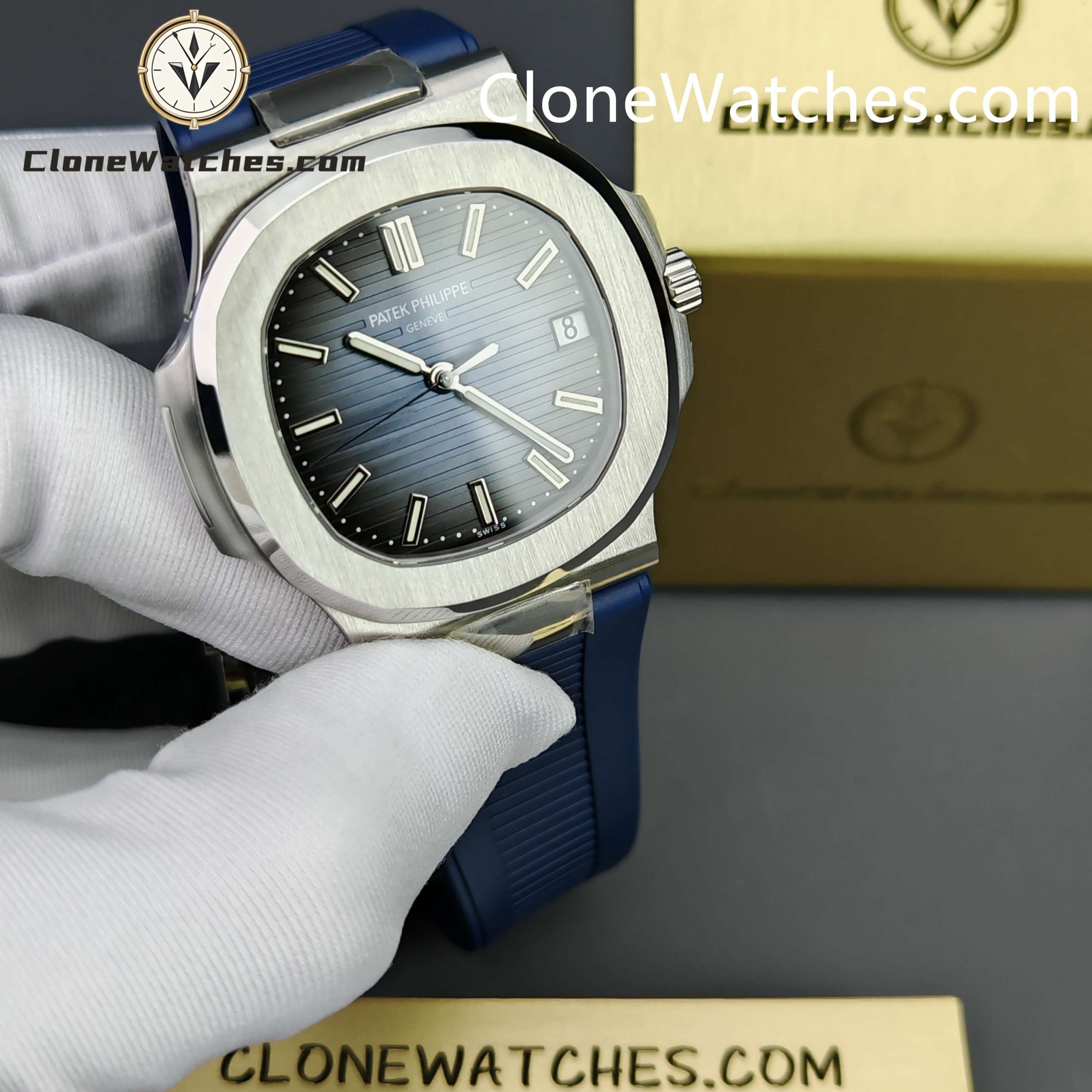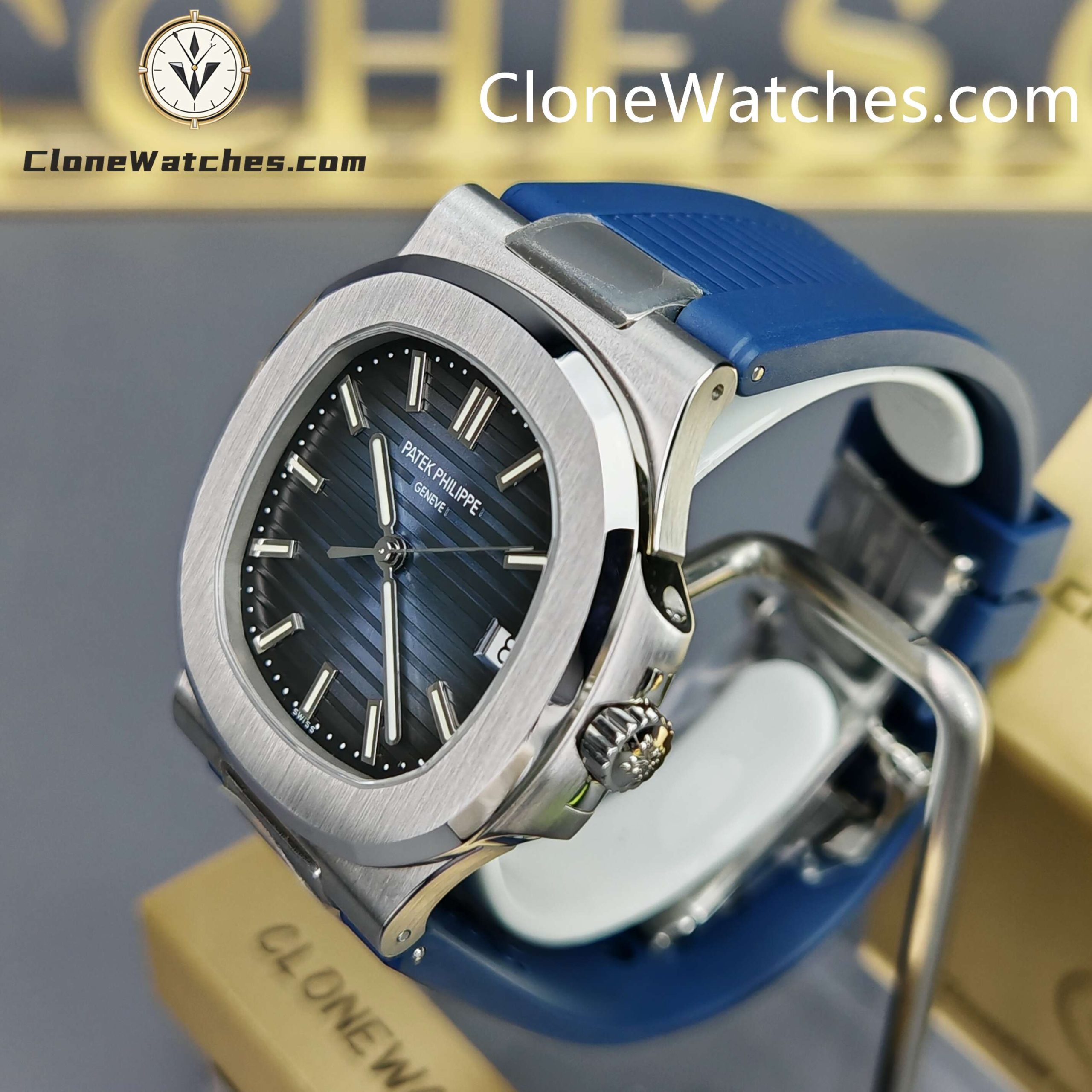 Patek Philippe Super Clone Watches 1:1 Nautilus 5711/1R Blue Dial Blue Rubber Strap