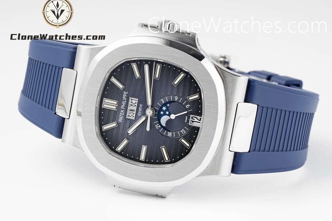 Patek Philippe Super Clone Watches 1:1 Nautilus 5726 Blue Dial Blue Rubber Strap