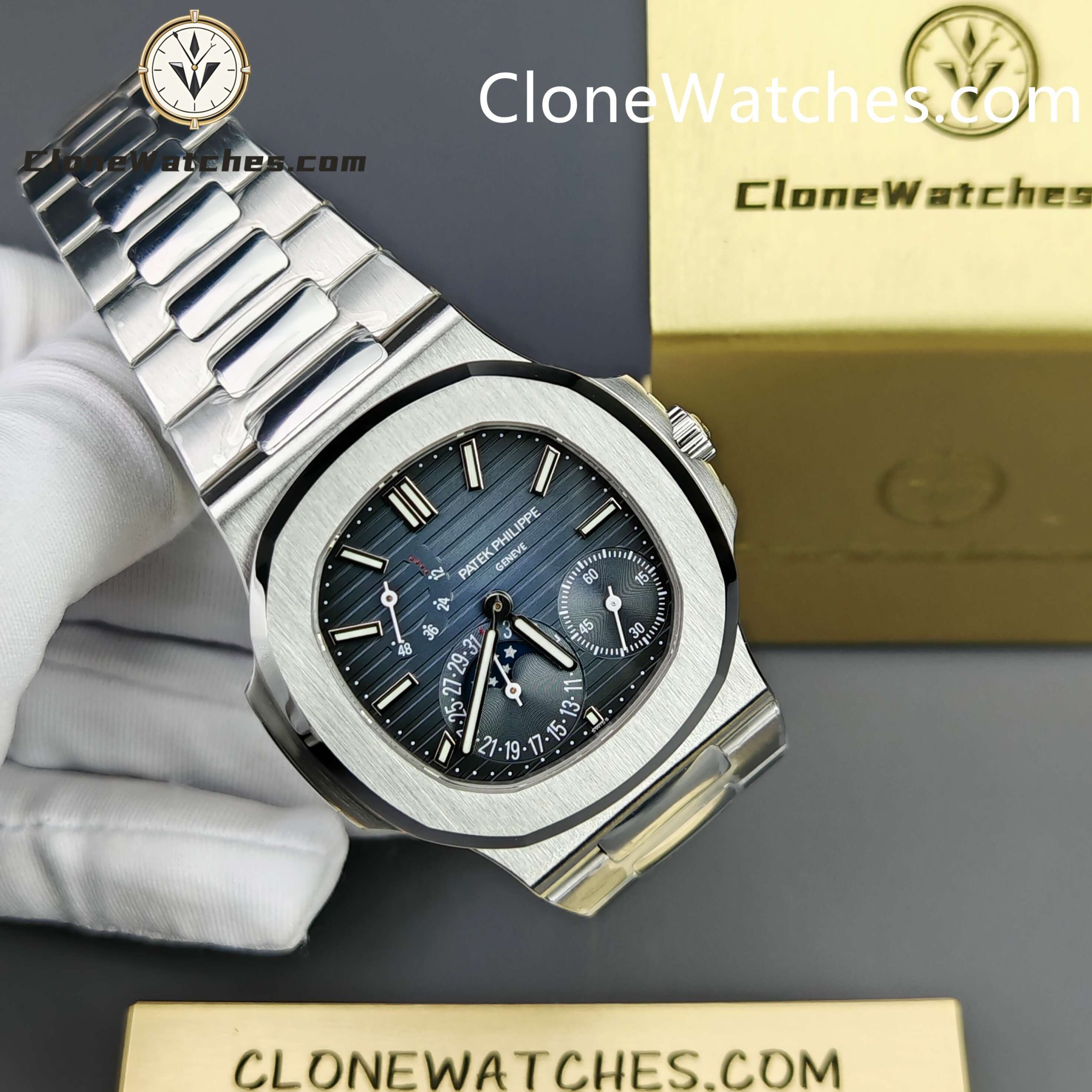 Patek Philippe Super Clone Watches 1:1 Nautilus Moon Phase 5712 Blue Dial New Clasp