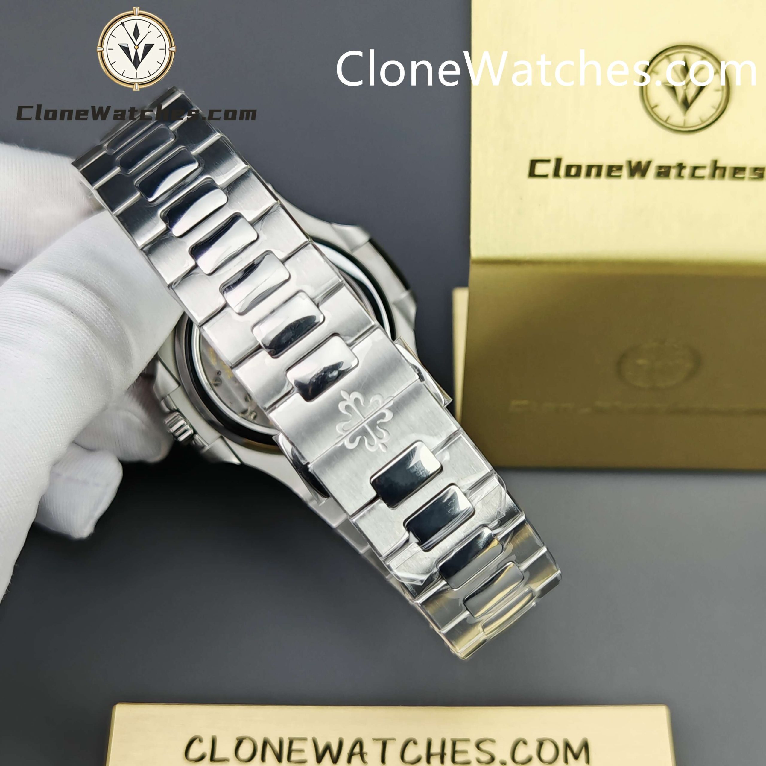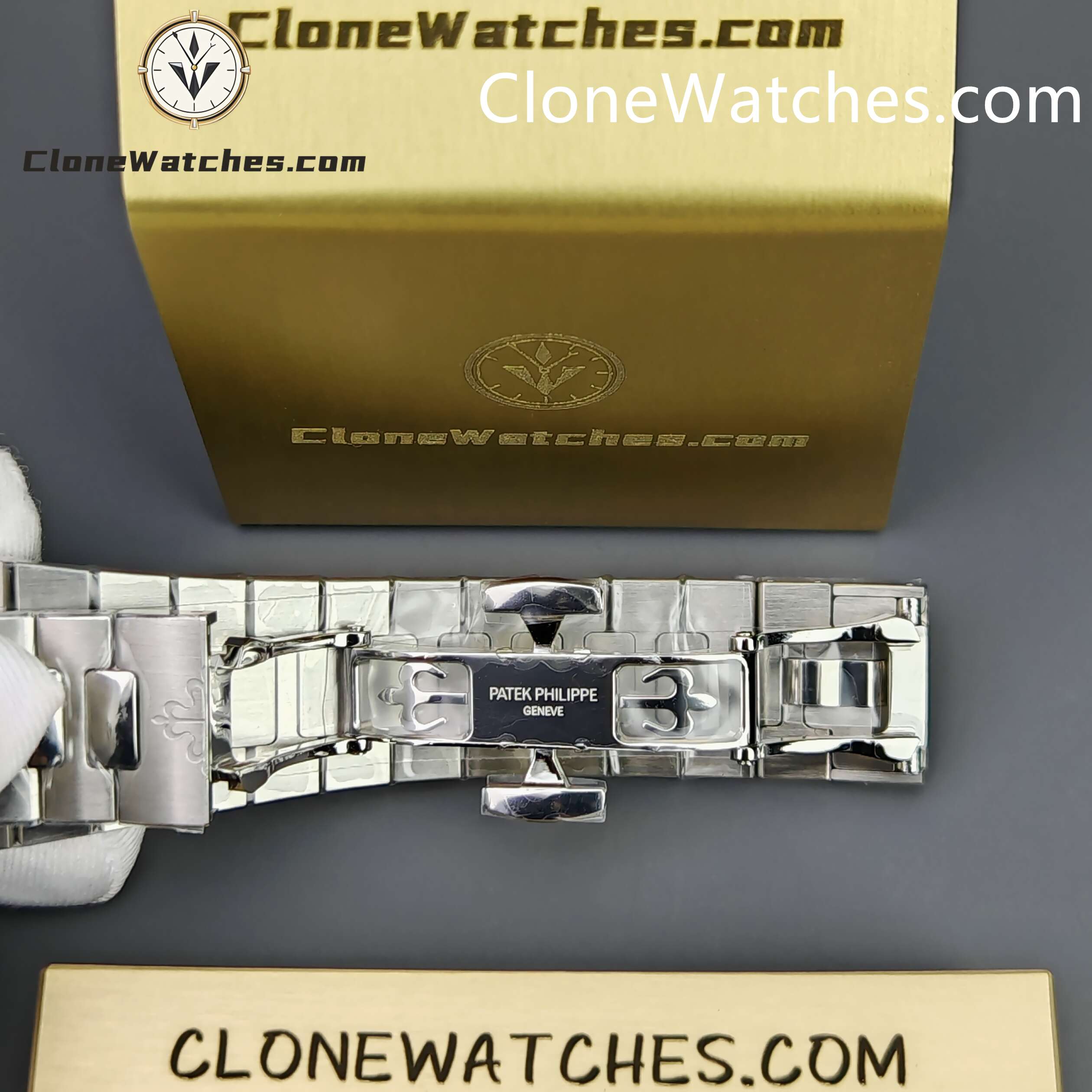 Super Clone Watches has a stainless steel case with a diameter of 40 mm and a thickness of 12.1 mm, and a blue dial with hour markers and hands, and a date display at 3 o’clock. All the functions of the watch are exactly the same as the real thing. The moon phase display is located at 6 o’clock. Equipped with Clone Patek Philippe Caliber 240 PS automatic movement 21600bph, this is a self-winding mechanical movement with a power reserve of approximately 48 hours.
