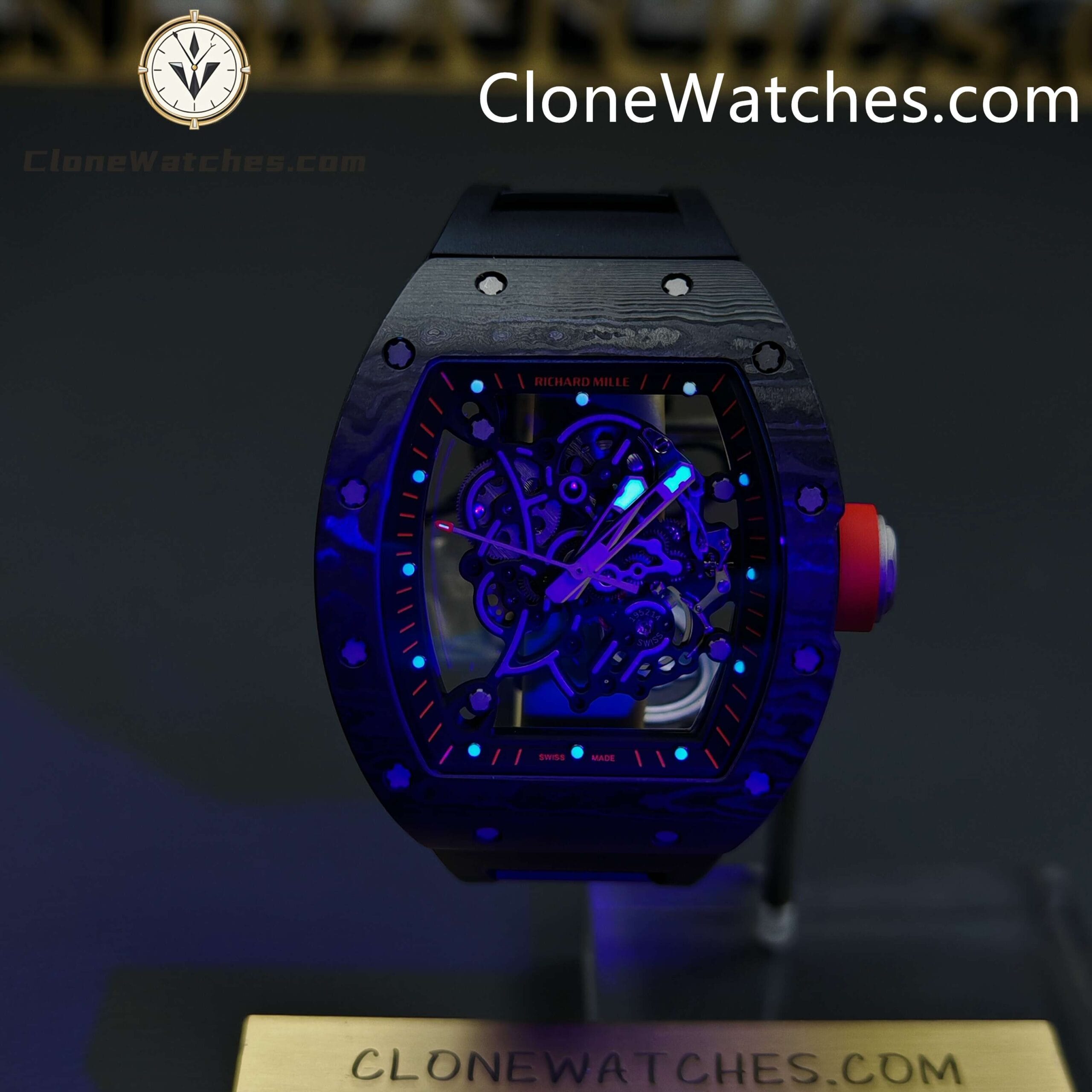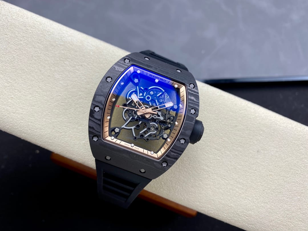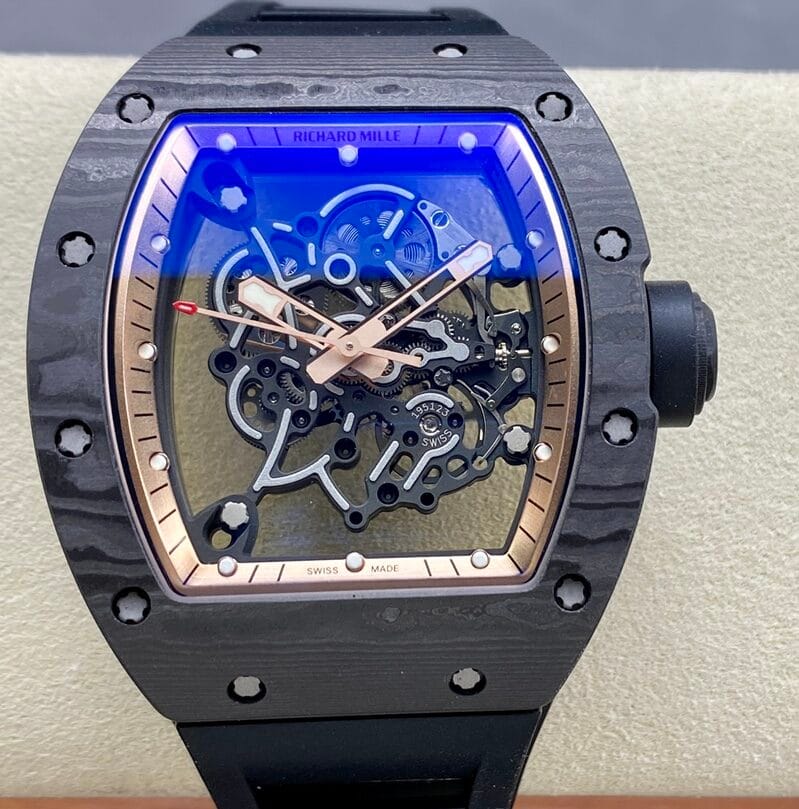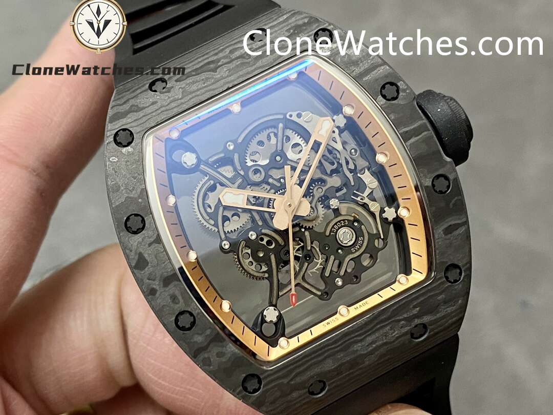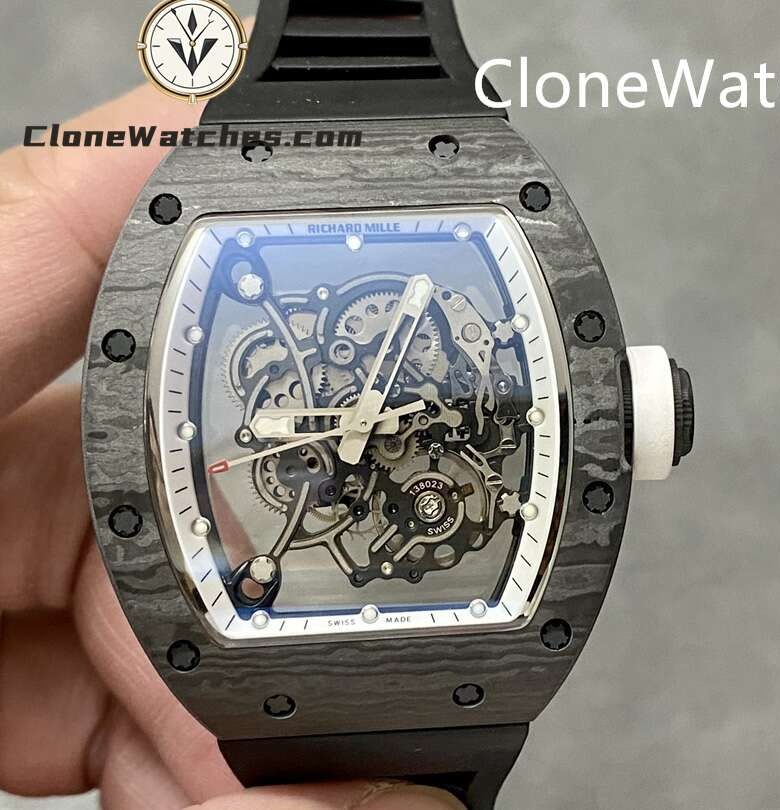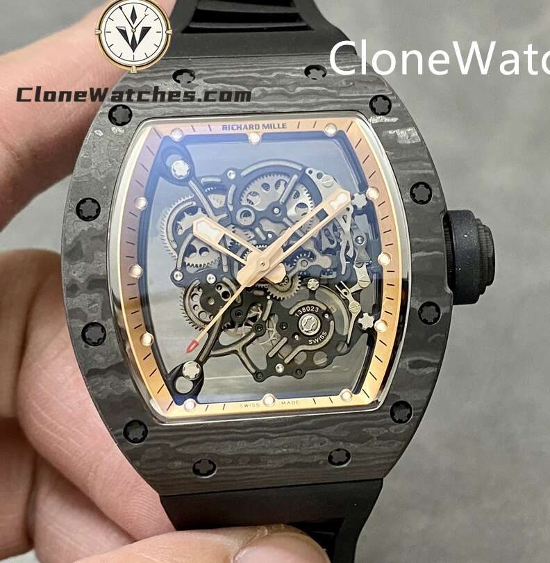 Richard Mille Super Clone Watches 1:1 RM 055 Carbon Tourbillon Black Strap