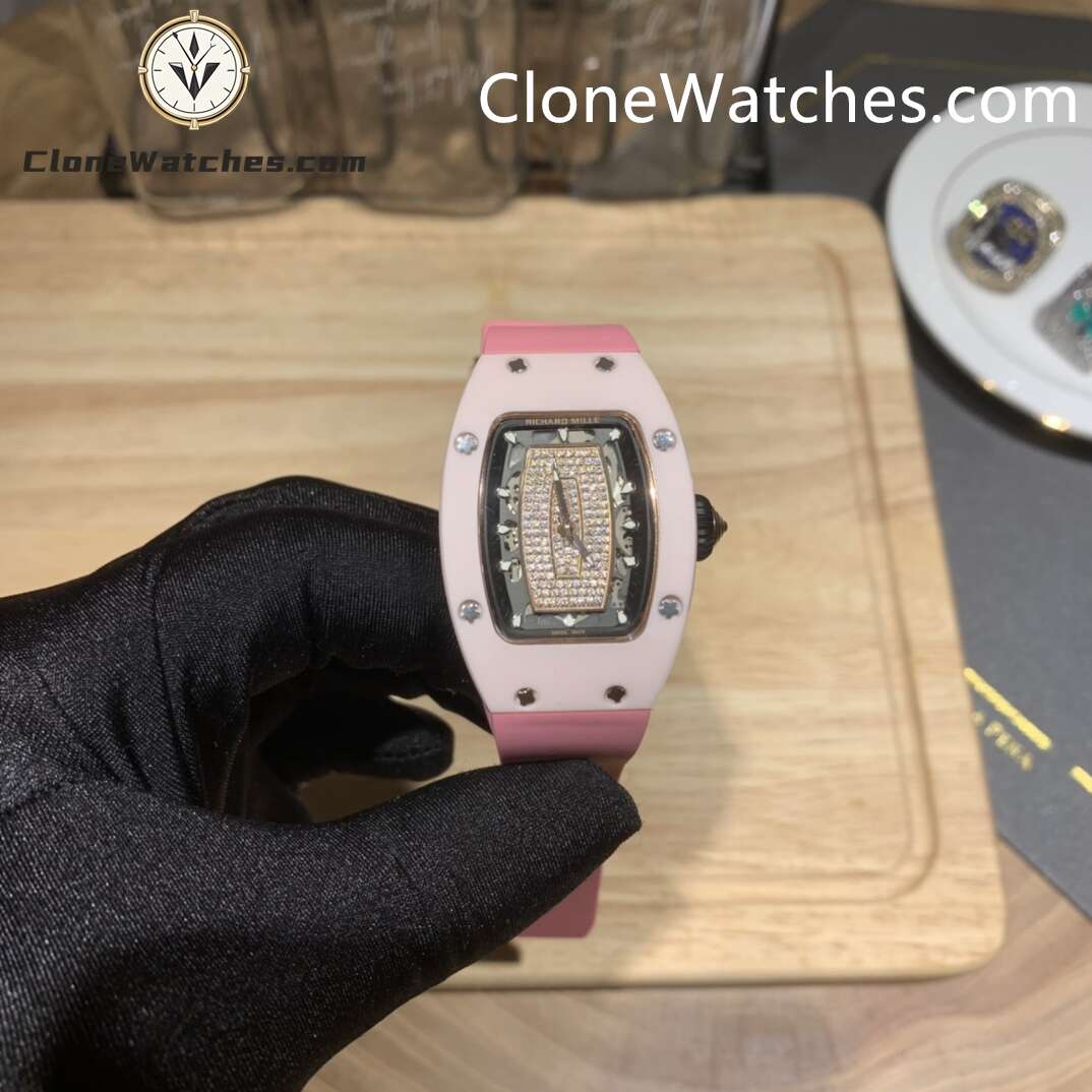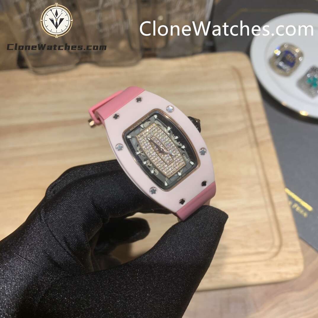 Richard Mille Super Clone Watches 1:1 RM 07 – 01 Pink Ceramic Diamond Dial Pink Strap