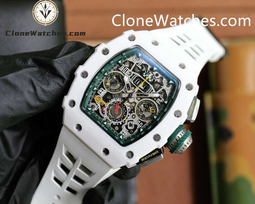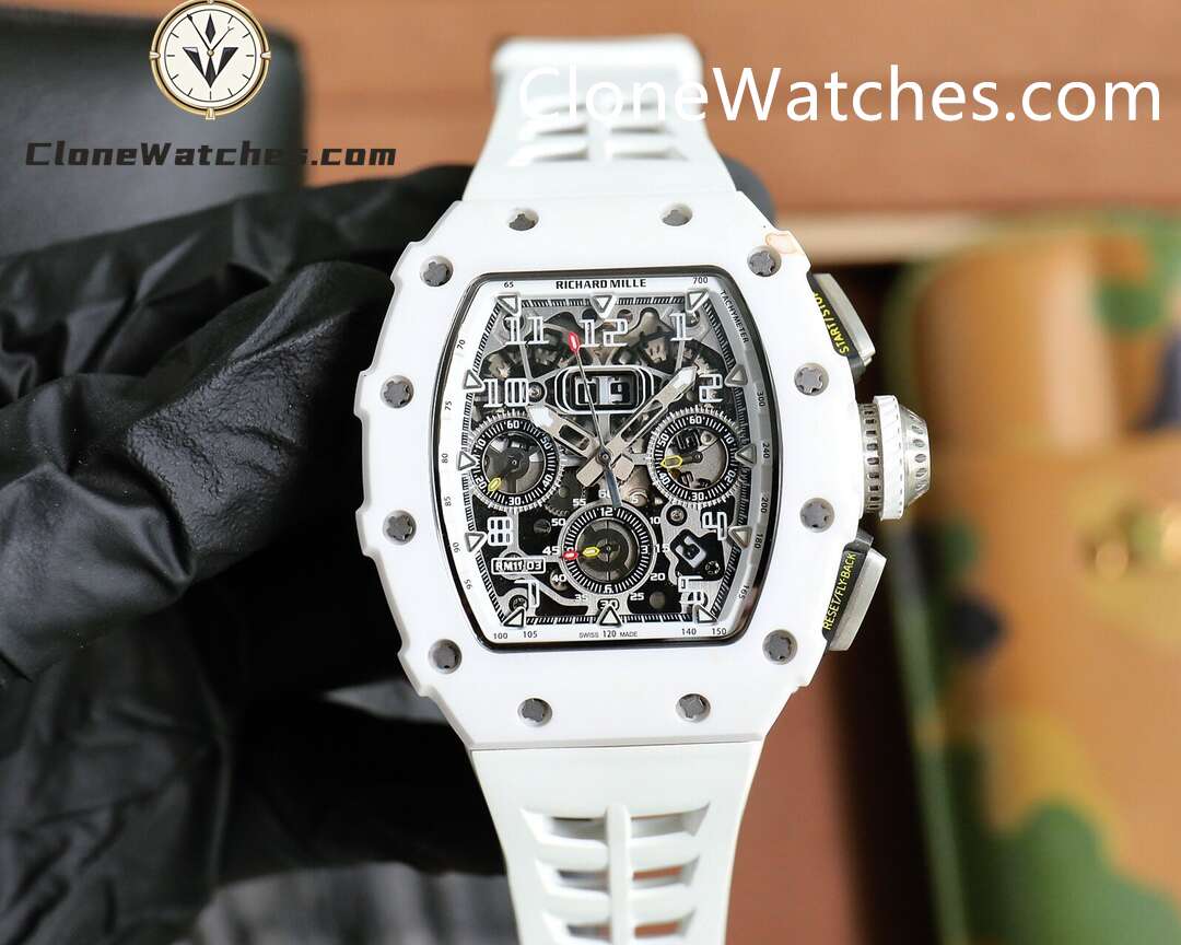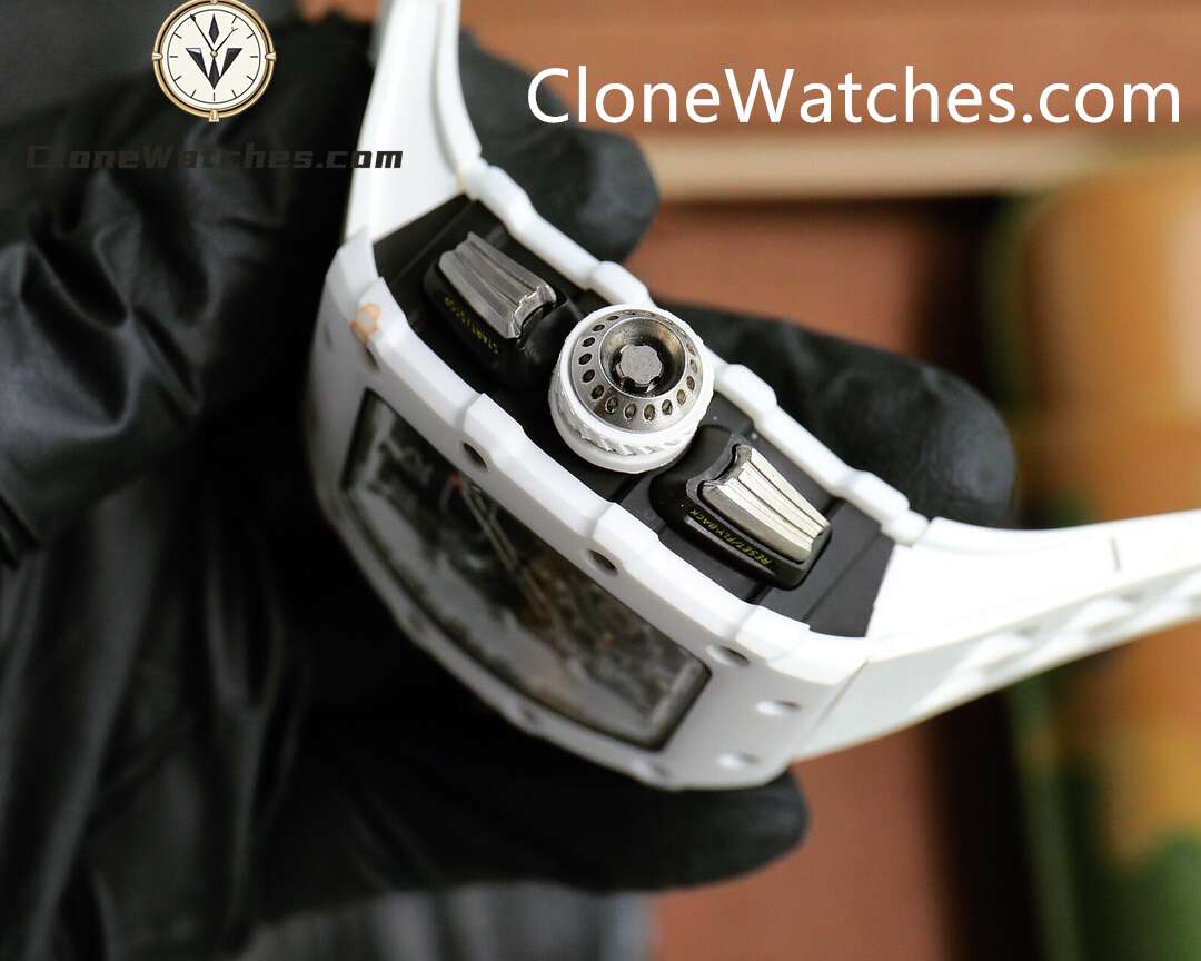Richard Mille Super Clone Watches 1:1 RM 11 – 03 White Ceramic Skeleton Dial White Strap