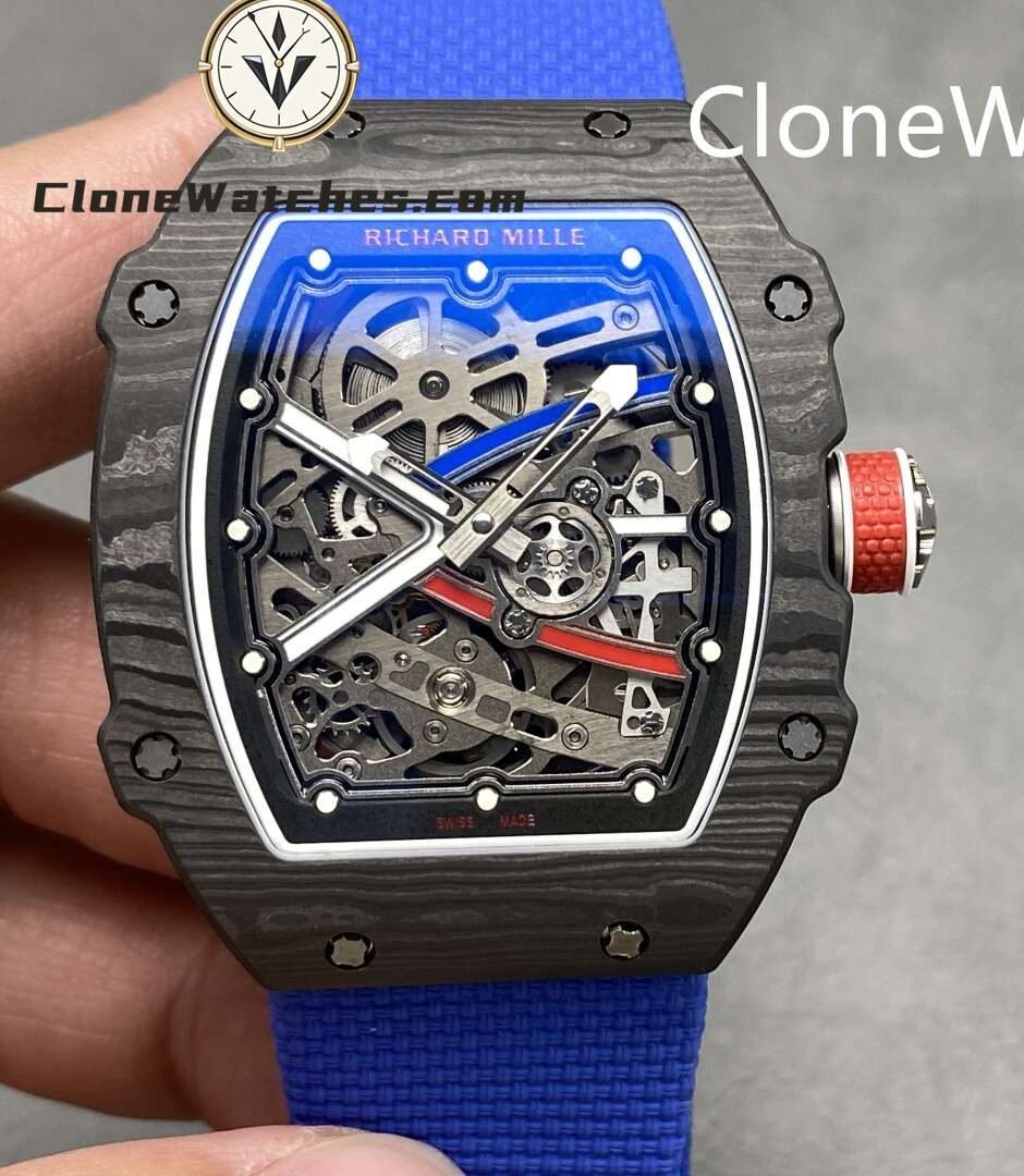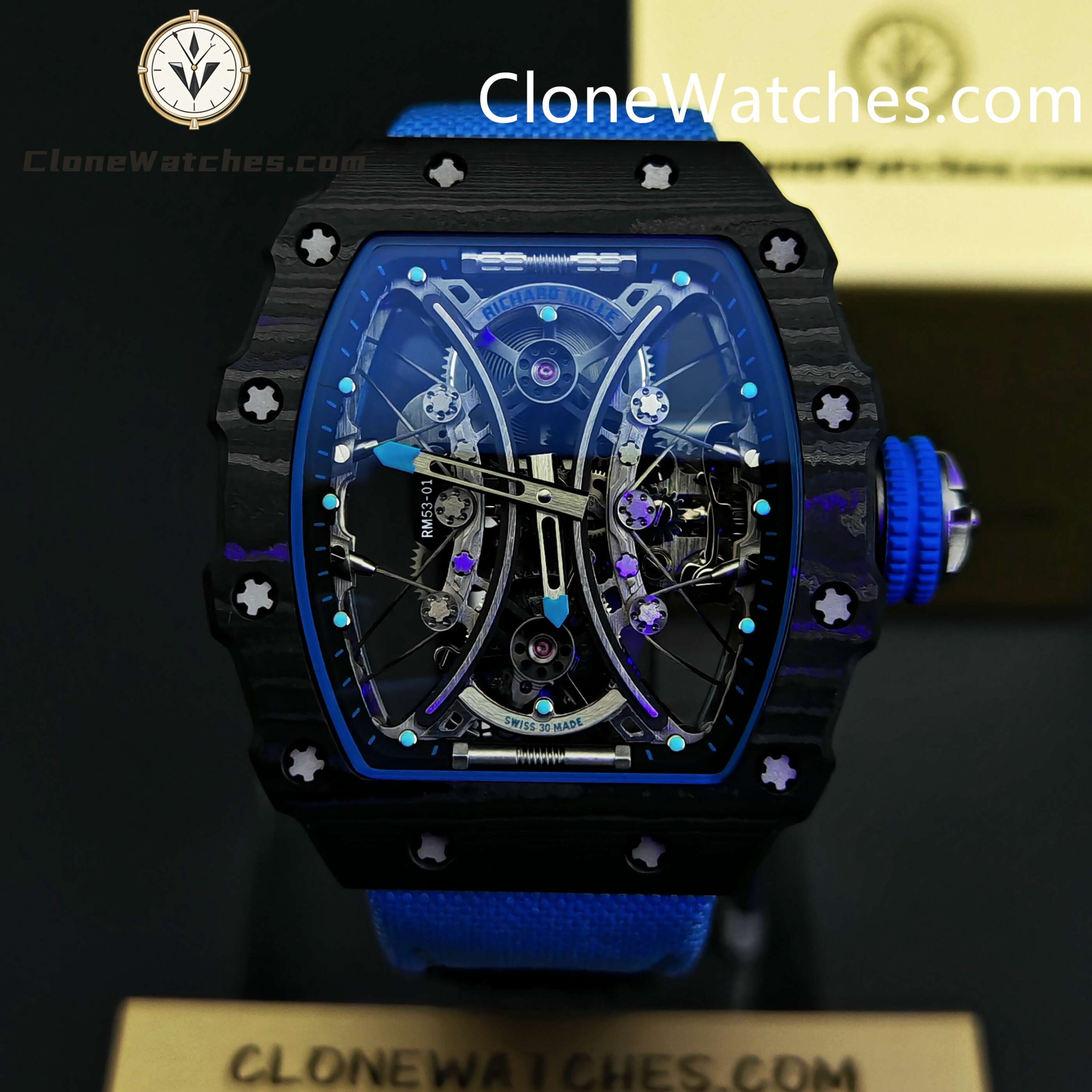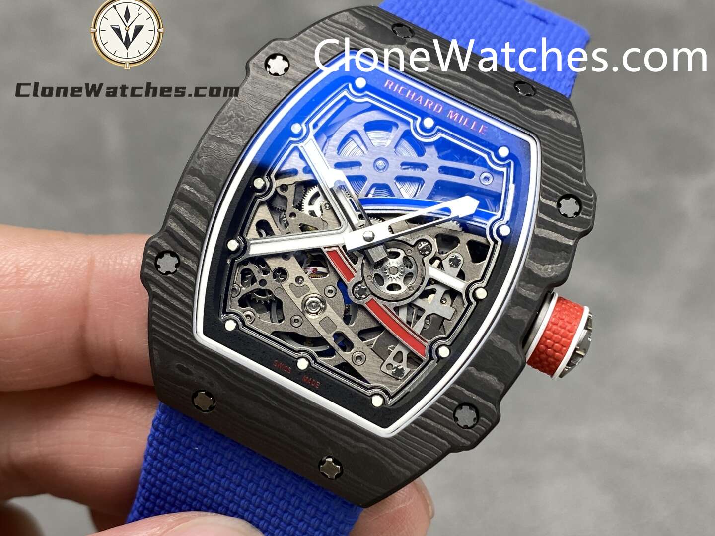 Richard Mille Super Clone Watches 1:1 RM 67 – 02 Carbon Tourbillon Blue Strap