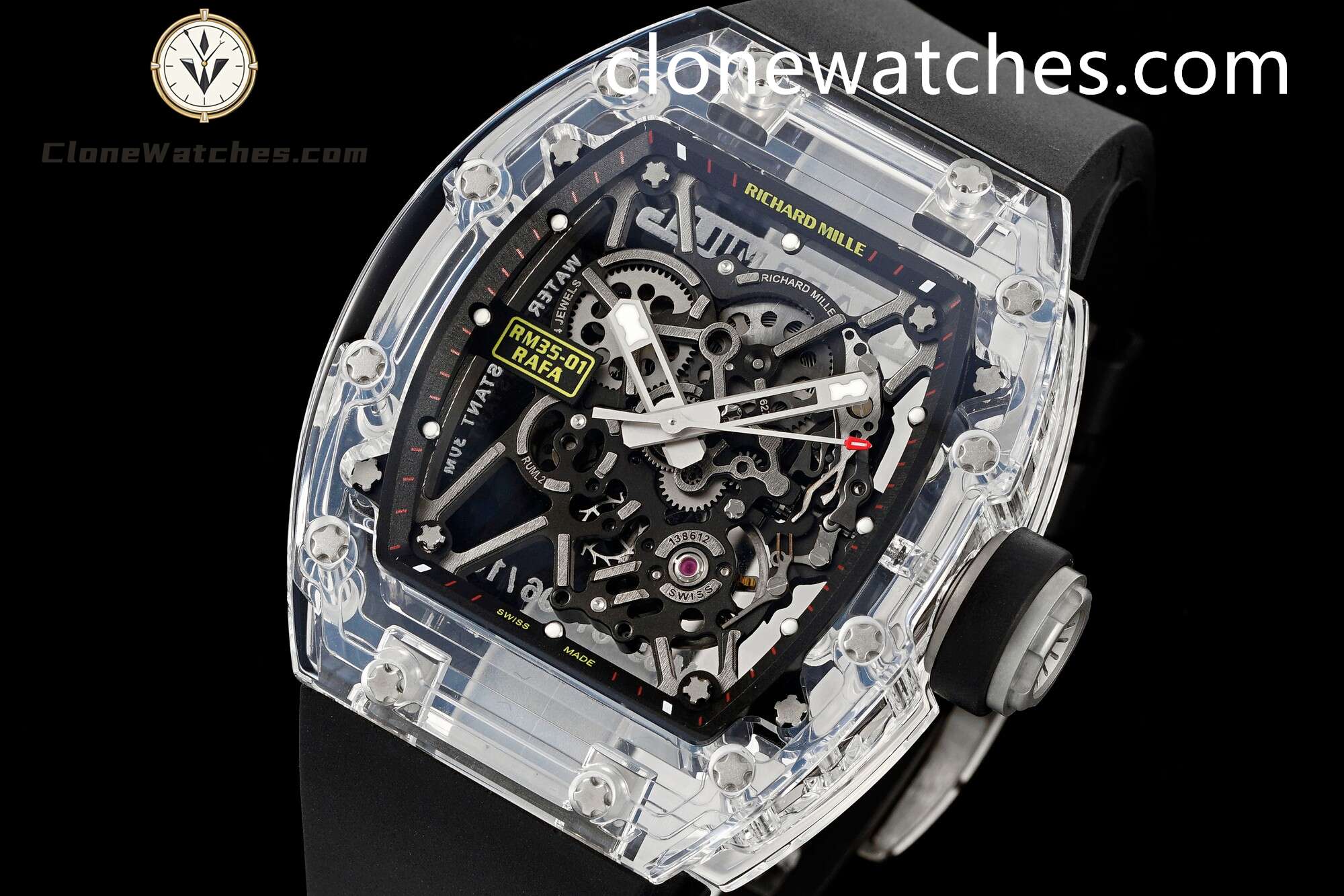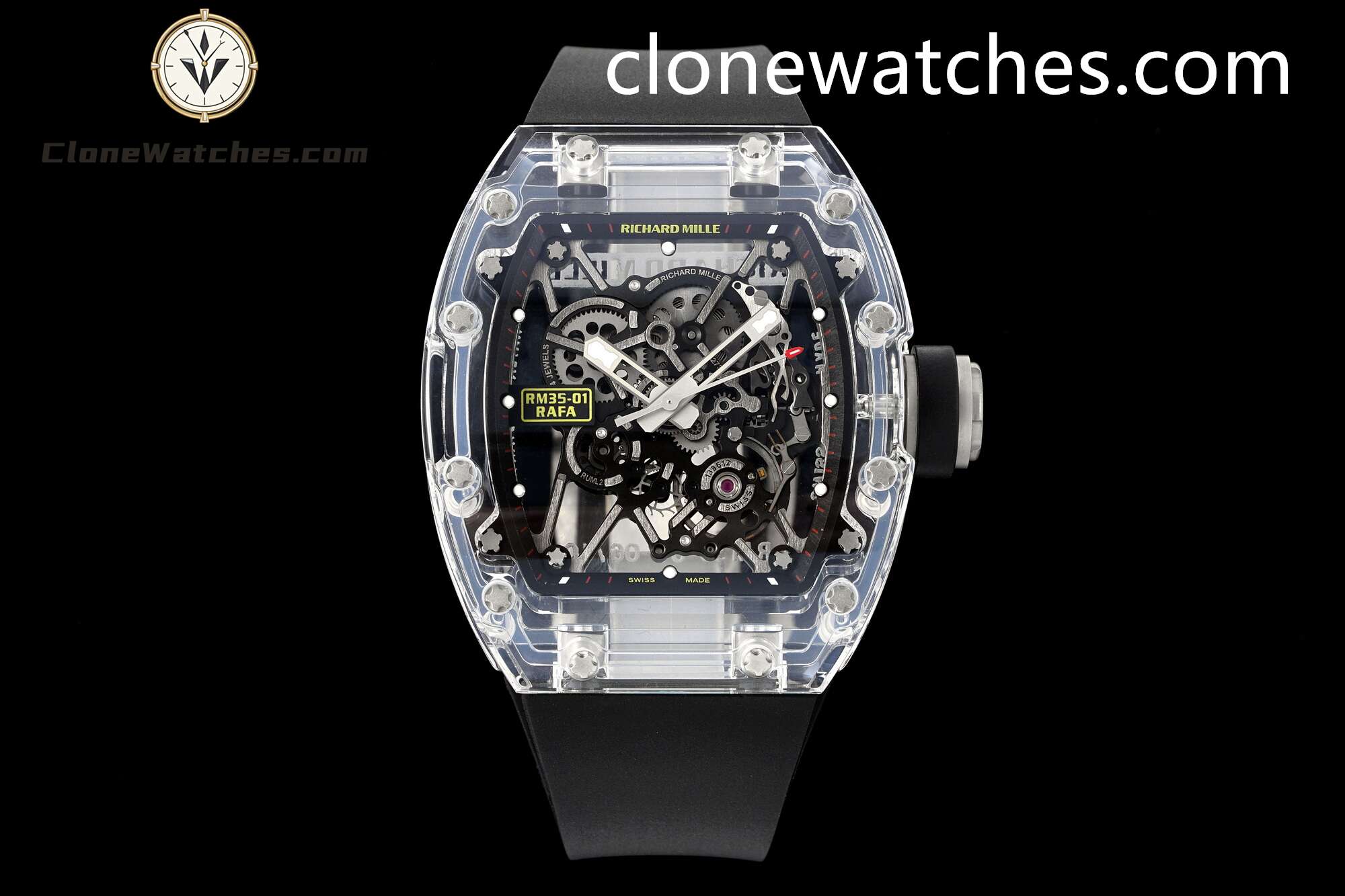 Richard Mille Super Clone Watches 1:1 RM 035 Full Transparent Tourbillon Black Strap