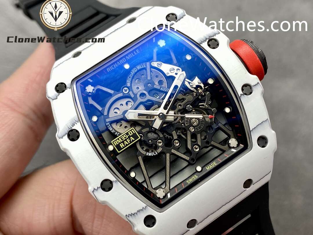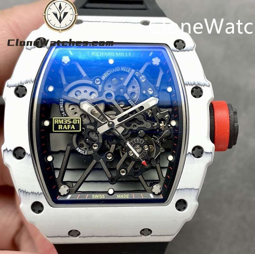 Richard Mille Super Clone Watches 1:1 RM 035 – 01 White Carbon Tourbillon Black Strap