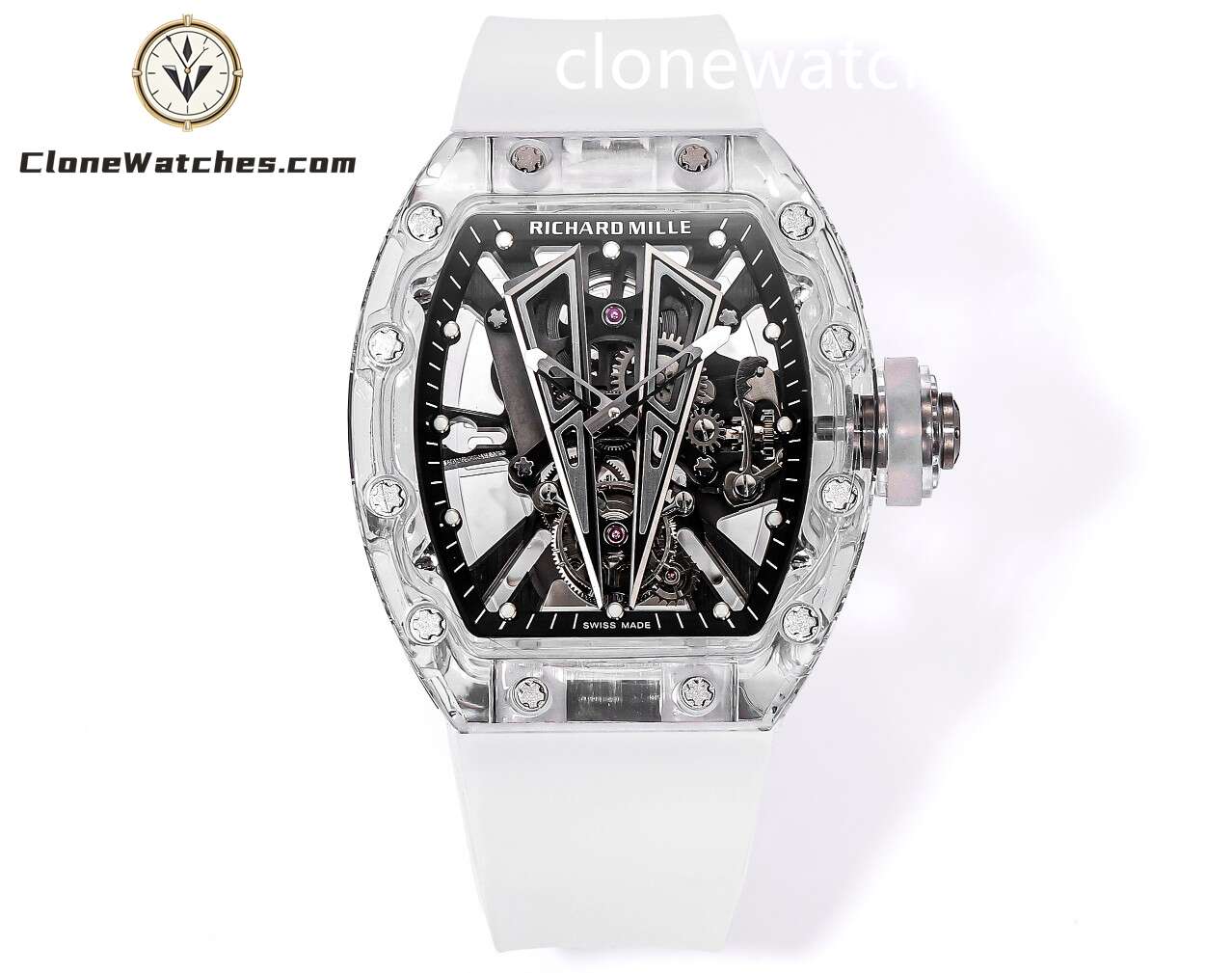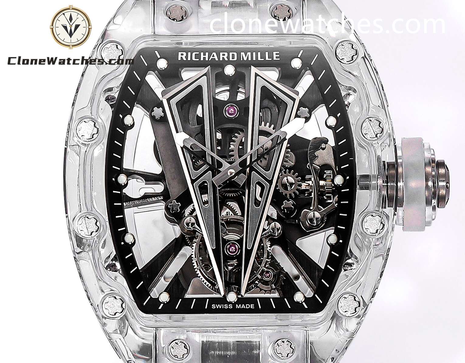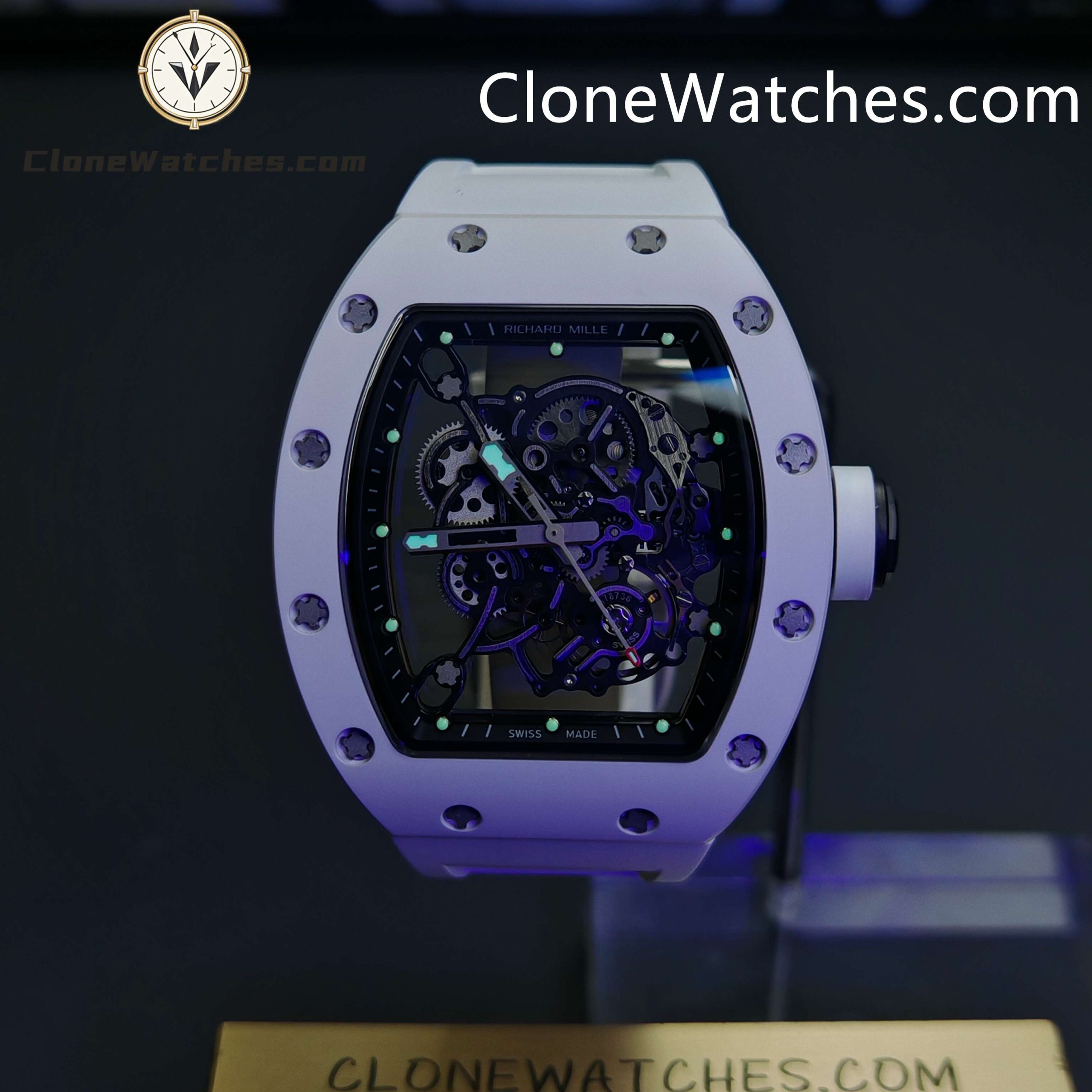 Richard Mille Super Clone Watches 1:1 RM 055 Full Transparent Tourbillon White Strap