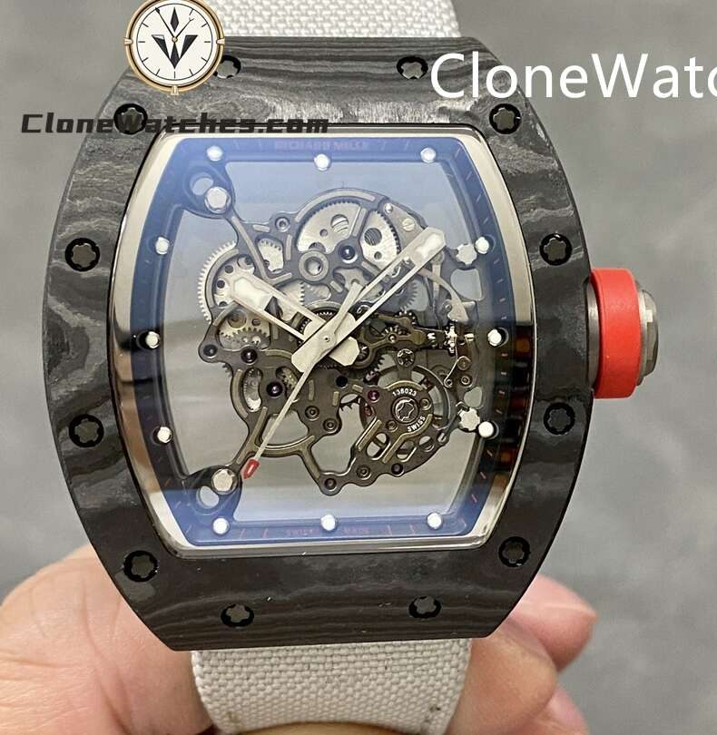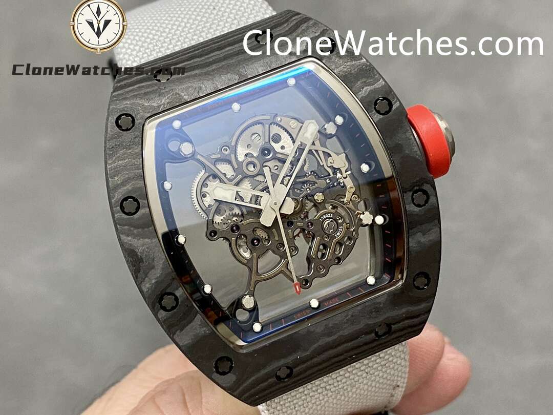 Richard Mille Super Clone Watches 1:1 RM 055 Carbon Tourbillon White Nylon Strap