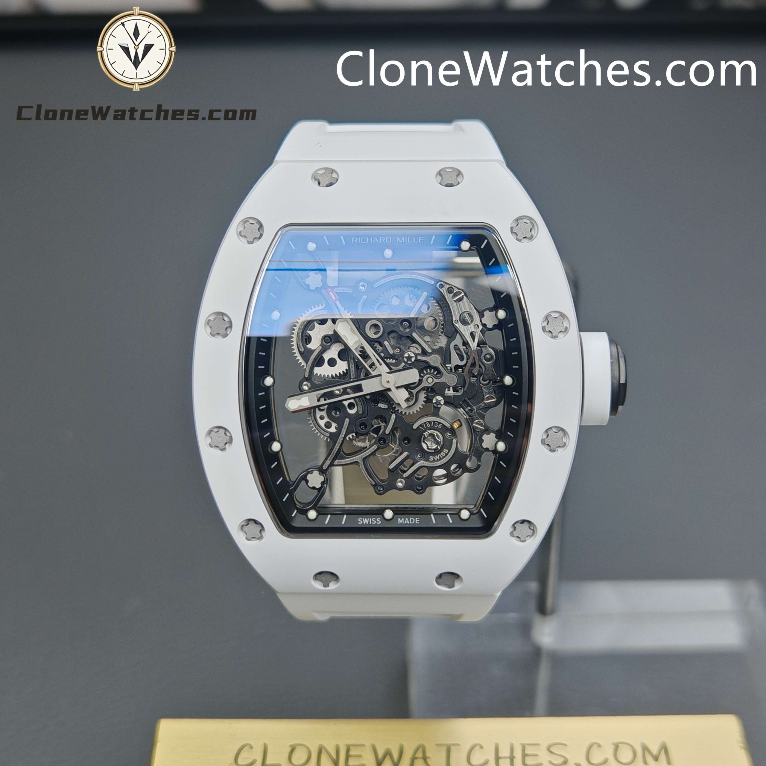 Richard Mille Super Clone Watches 1:1 RM 055 Ceramics Tourbillon White Strap