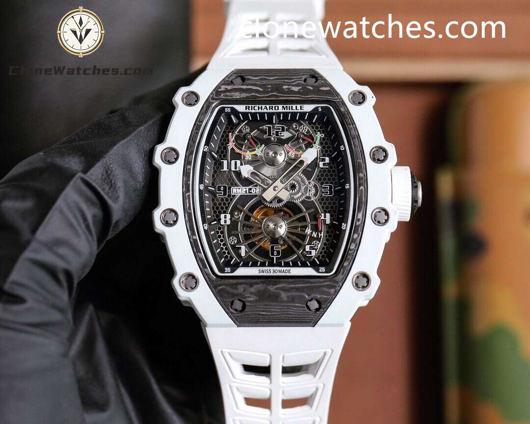 Richard Mille Super Clone Watches 1:1 RM 021- 02 Manual Winding Tourbillon Aerodyne White Strap