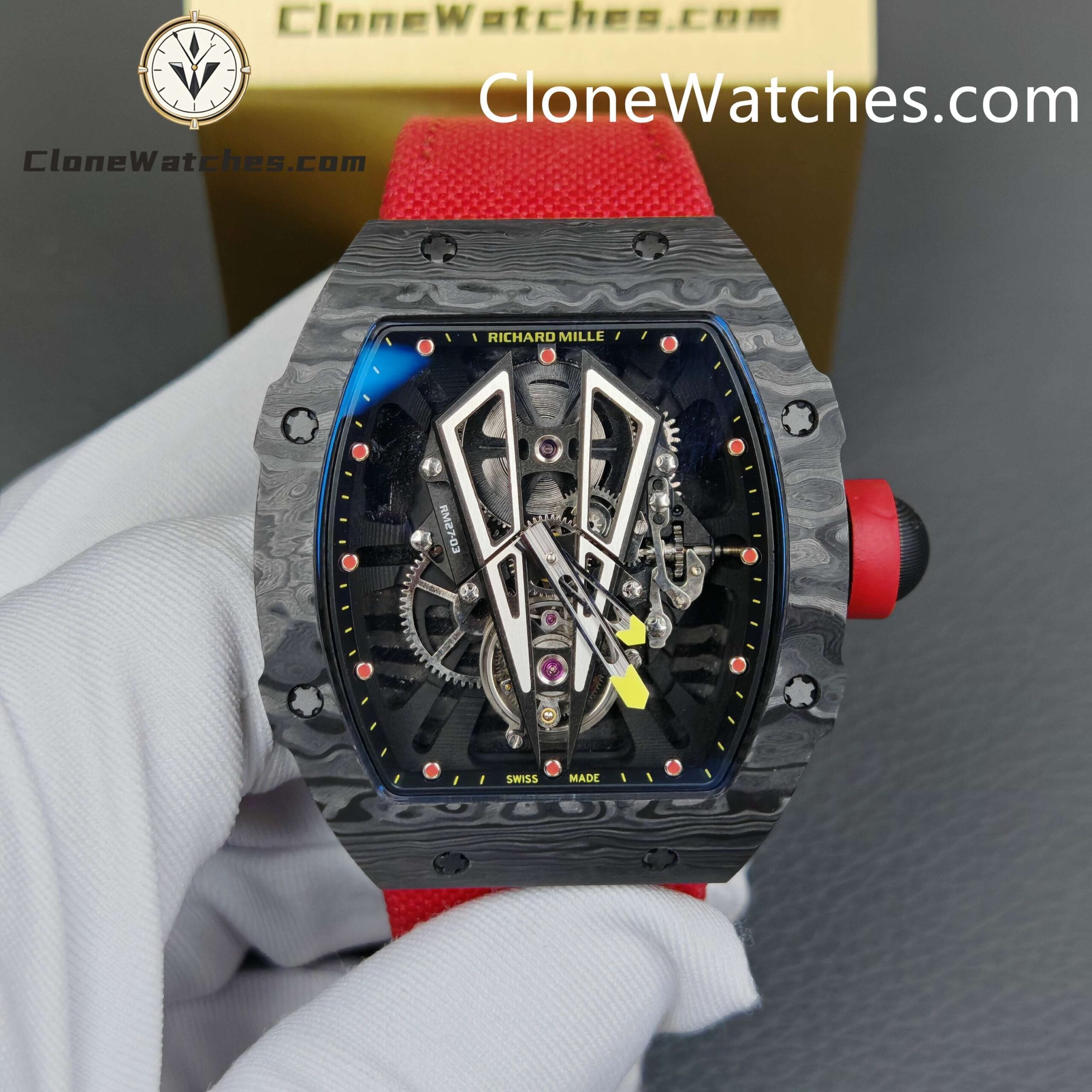 Richard Mille Super Clone Watches 1:1 RM 027 – 03 Carbon Tourbillon Red Strap