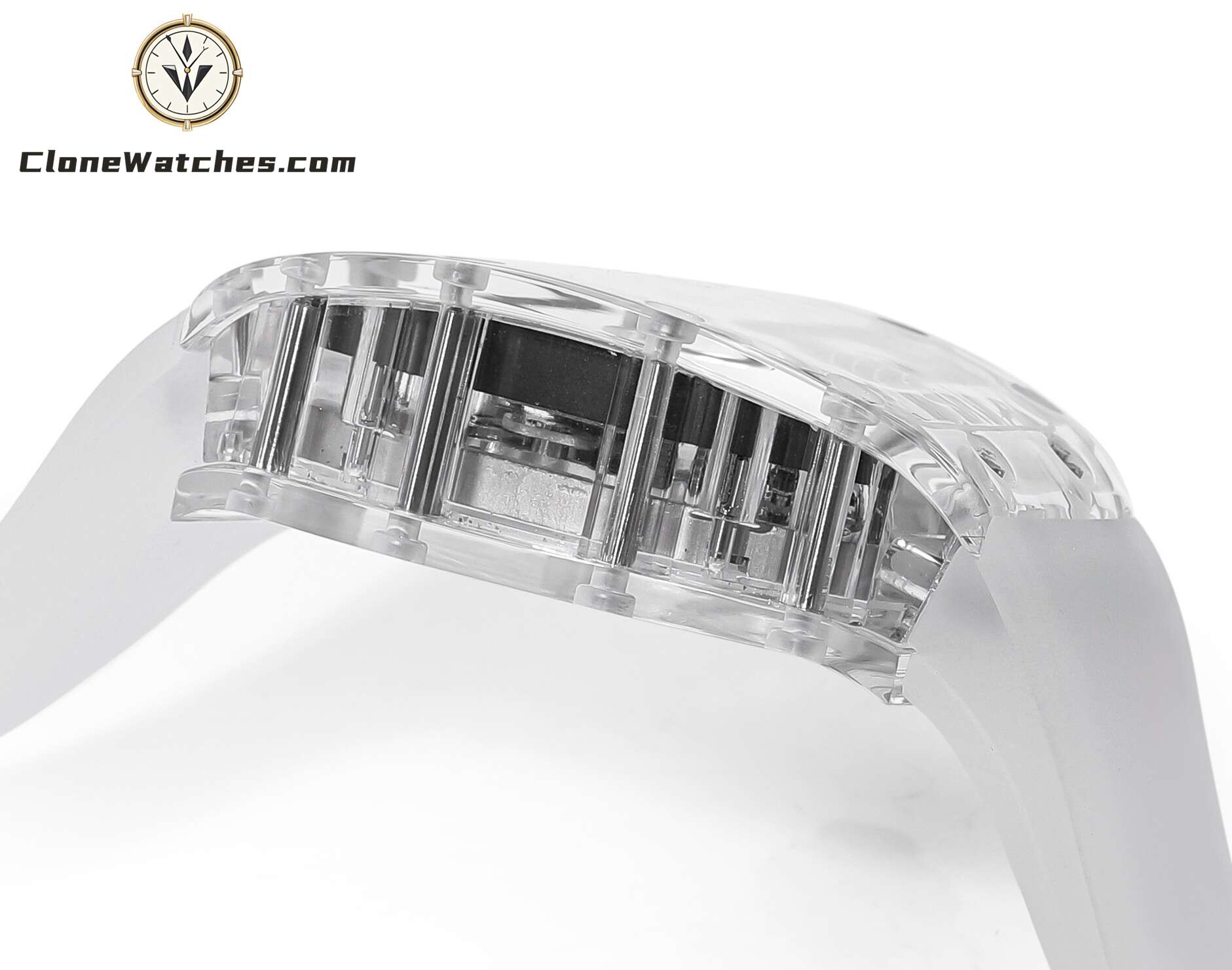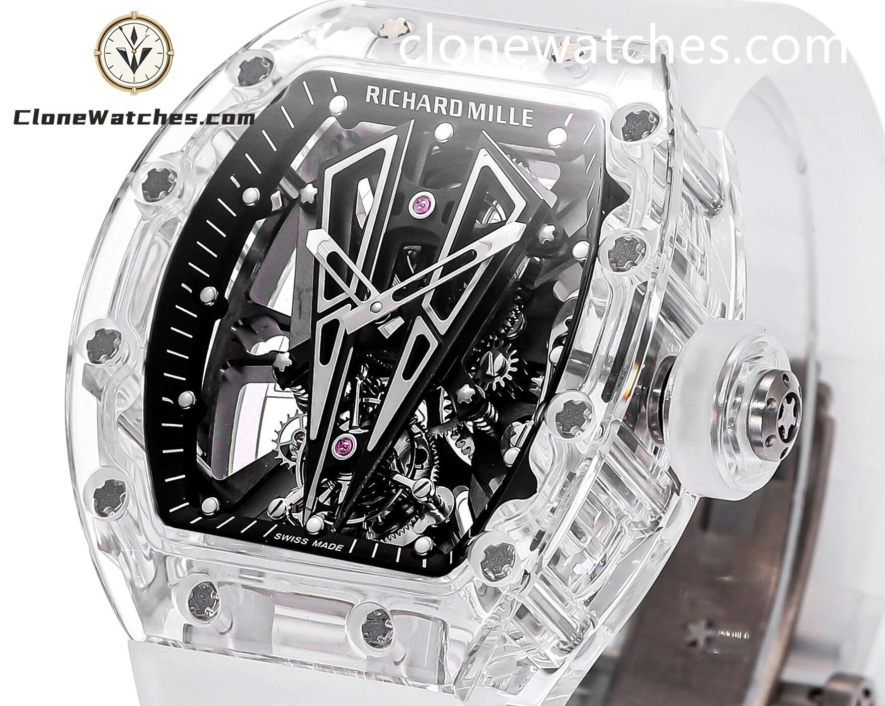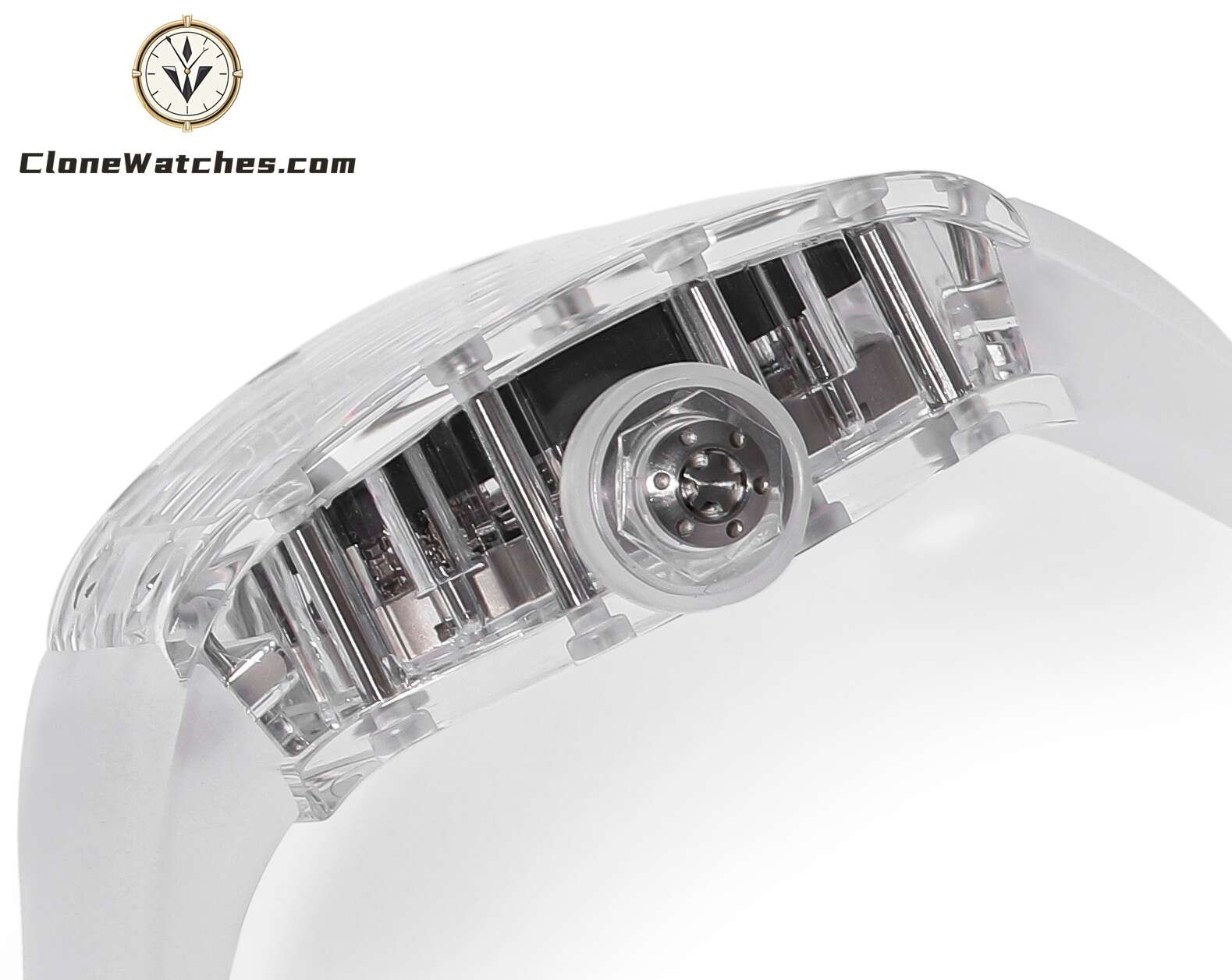 Richard Mille RM 027 – 03 Super Clone Watches Tourbillon has a fully transparent case, forming a technically coherent and visually indivisible whole. The integrated bottom plate and case are integrated into one, enhancing rigidity and impact resistance.