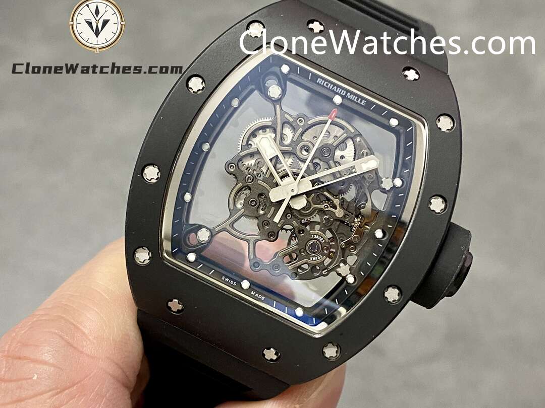 Richard Mille Super Clone Watches 1:1 RM 055 Ceramics Tourbillon Black Strap