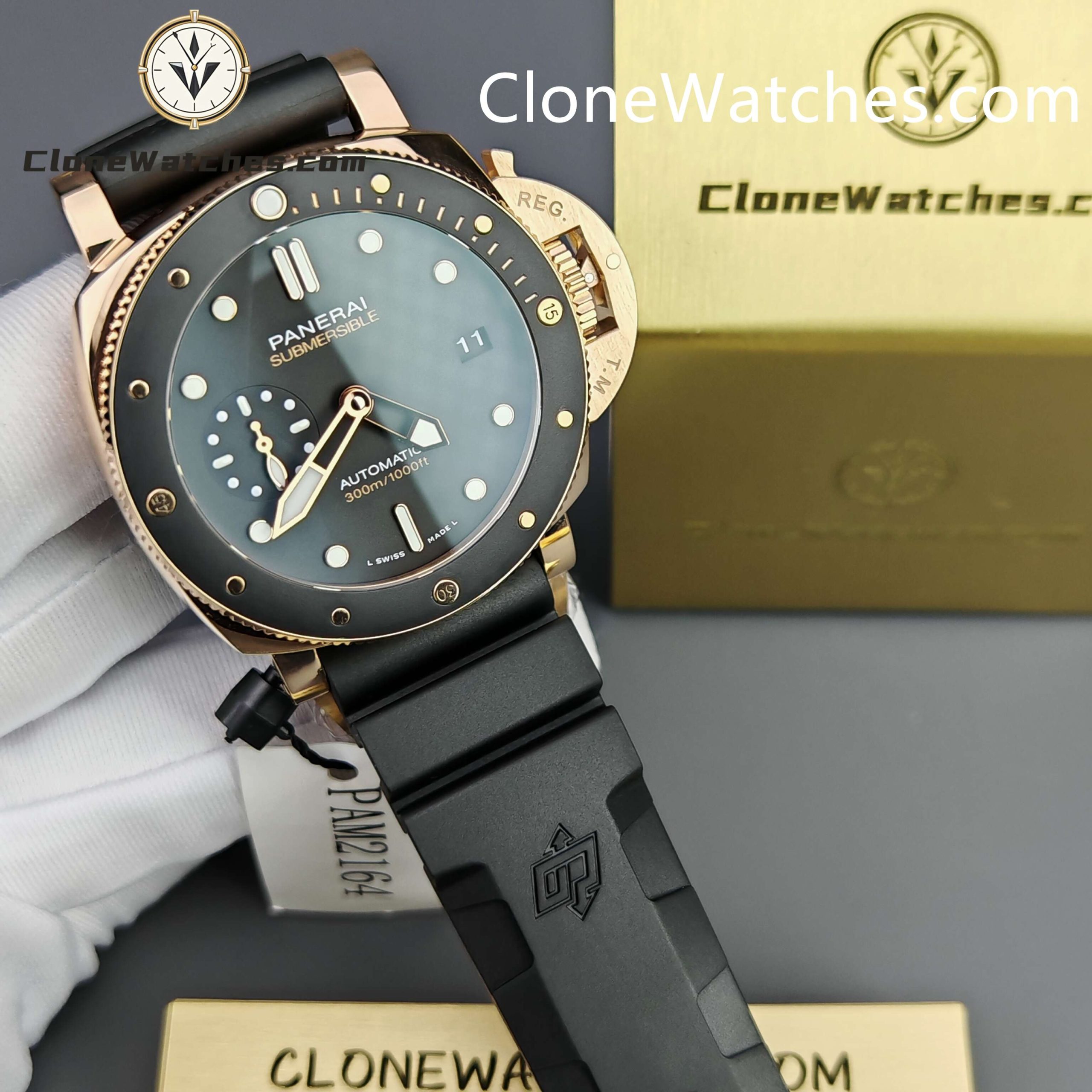 Panerai Super Clone Watches 1:1 Submersible GoldtechTM PAM02164 Black Dial