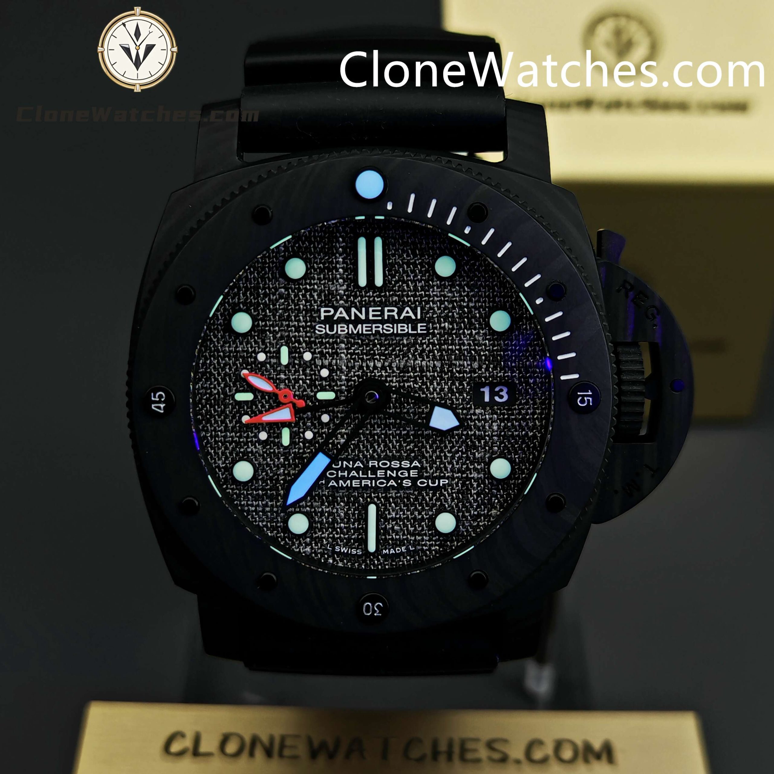 Panerai Super Clone Watches 1:1 Submersible Luna Rossa CarboTech GMT America’s Cup PAM 01039