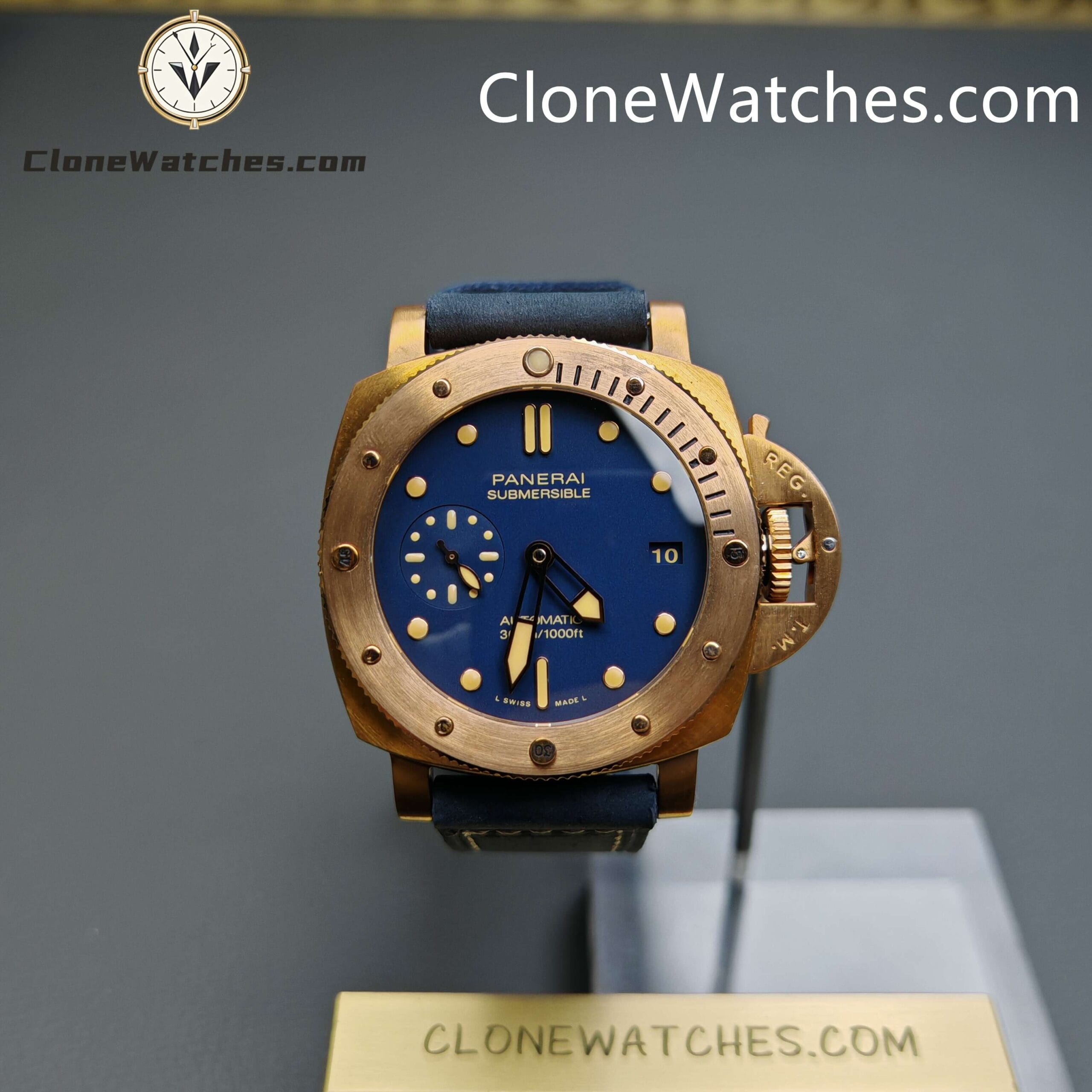 Panerai Super Clone Watches 1:1 Submersible Bronzo PAM01074 Blue Dial