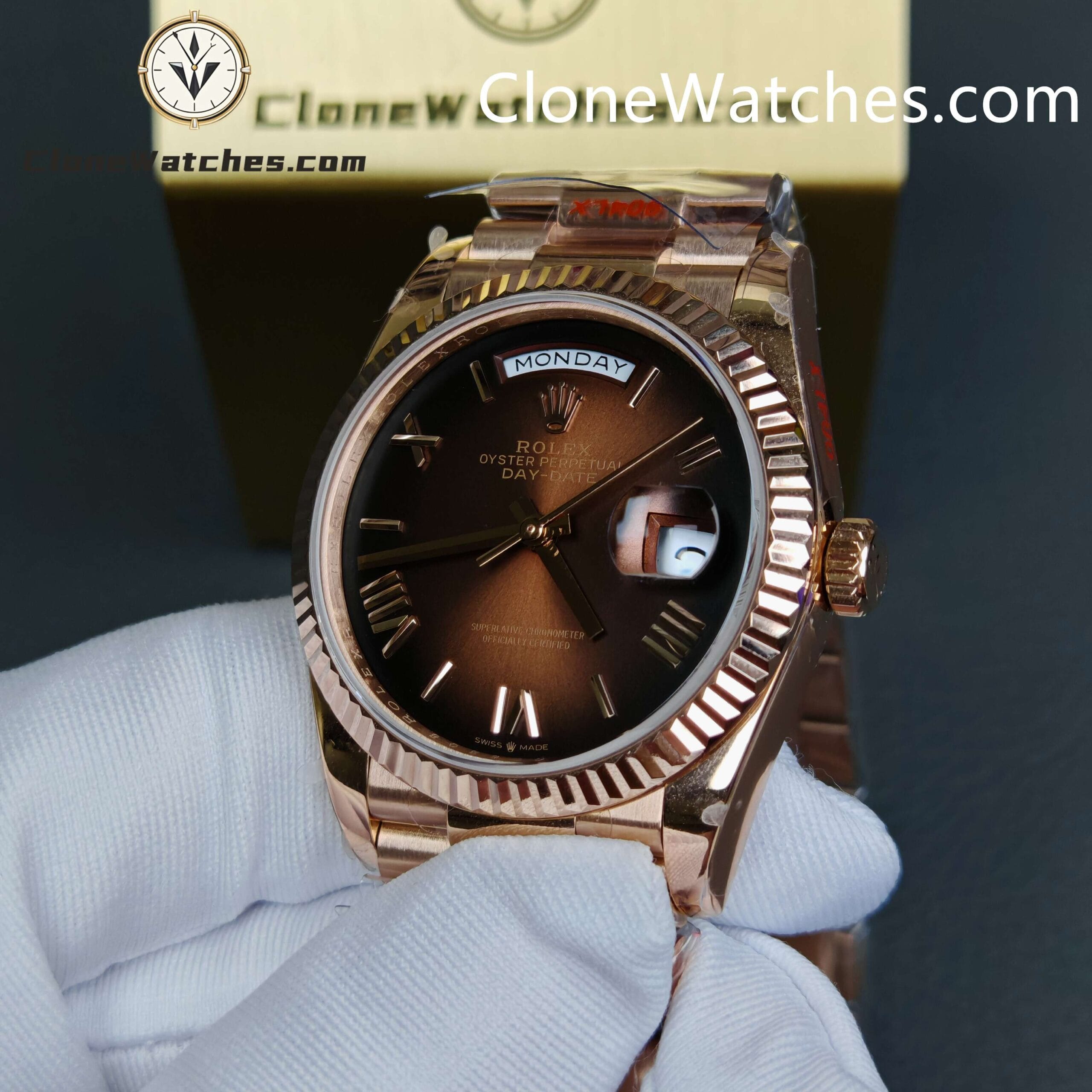 | Model | Rolex Super Clone Watches Day-Date 18K Rose Gold Brown Roman Dial m128235 |