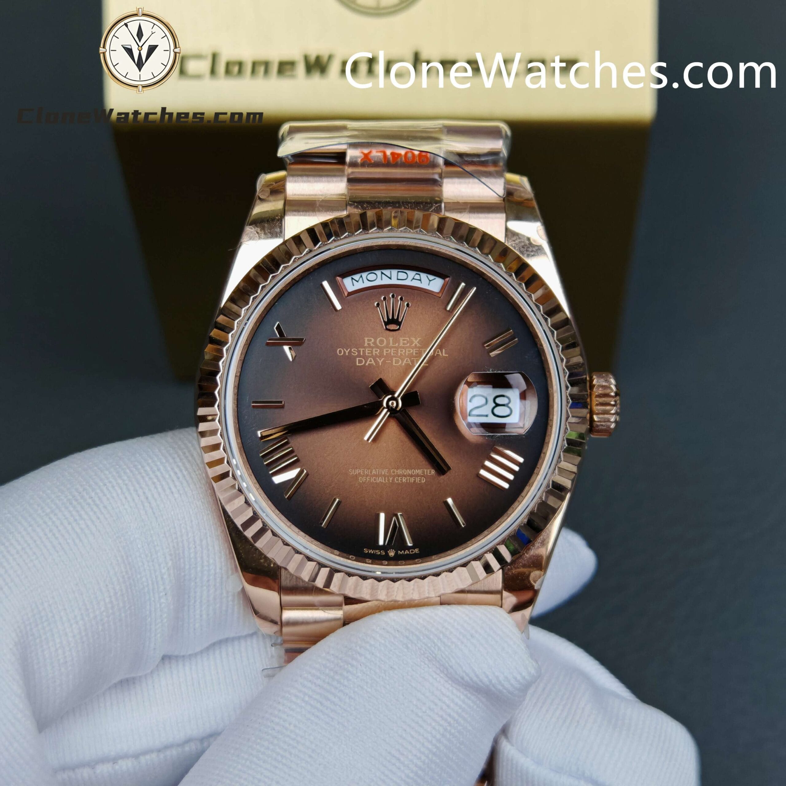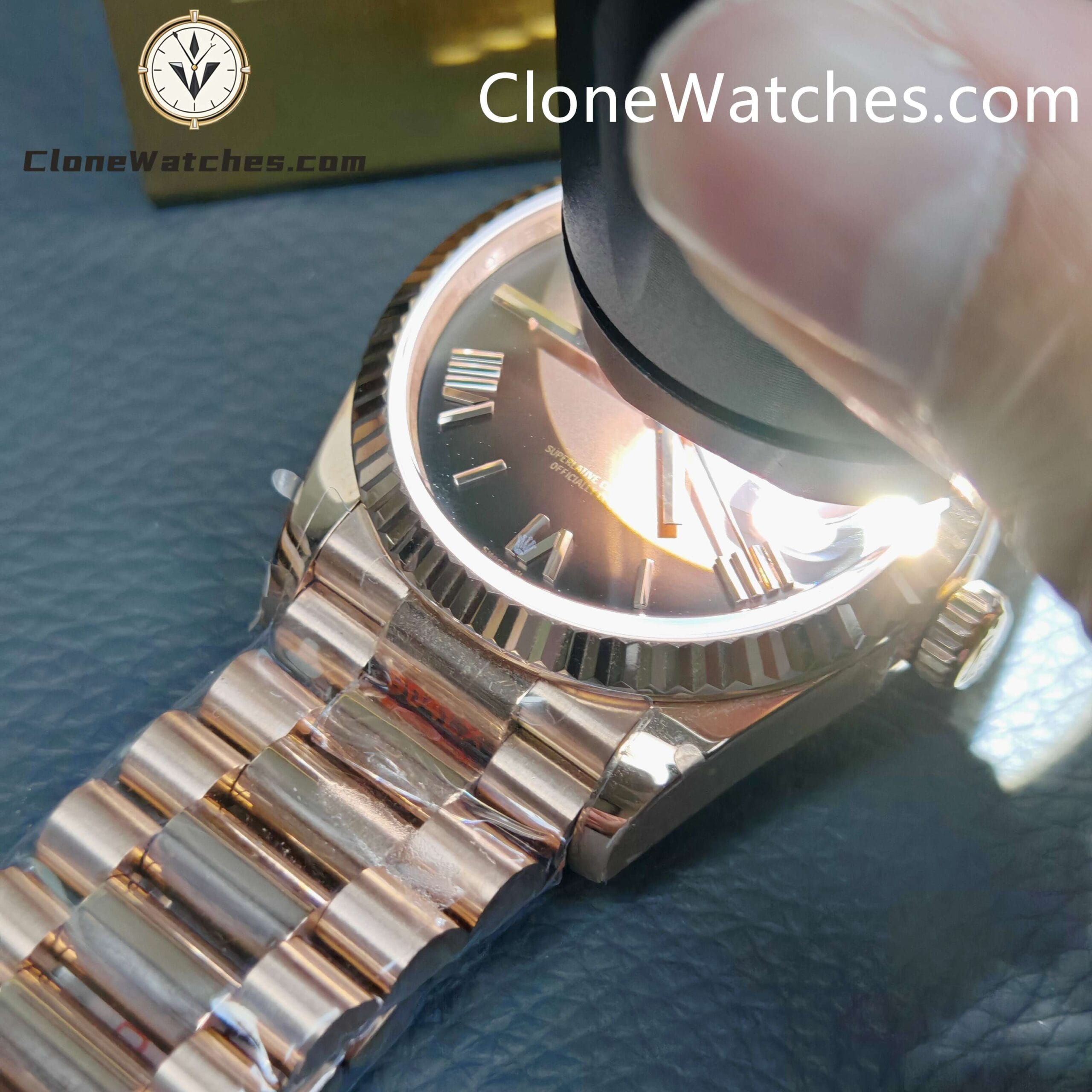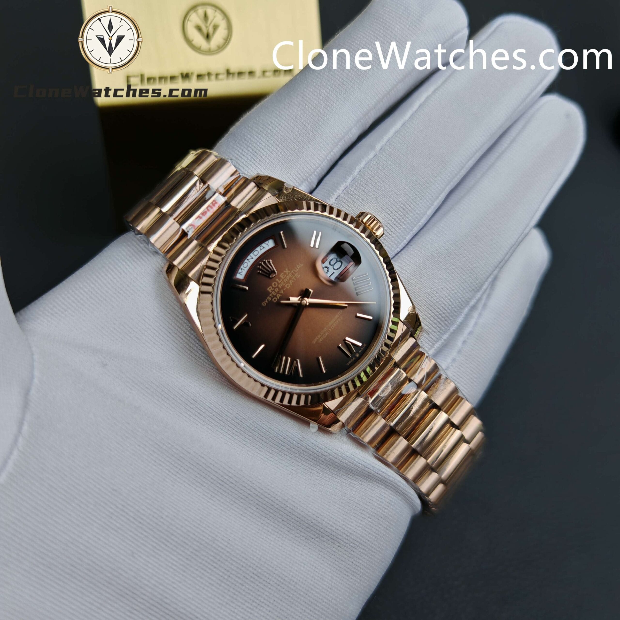 Rolex Super Clone Watches 1:1 Day Date Rose Gold Brown Roman Dial 36mm m128235-0075 3255 Movement