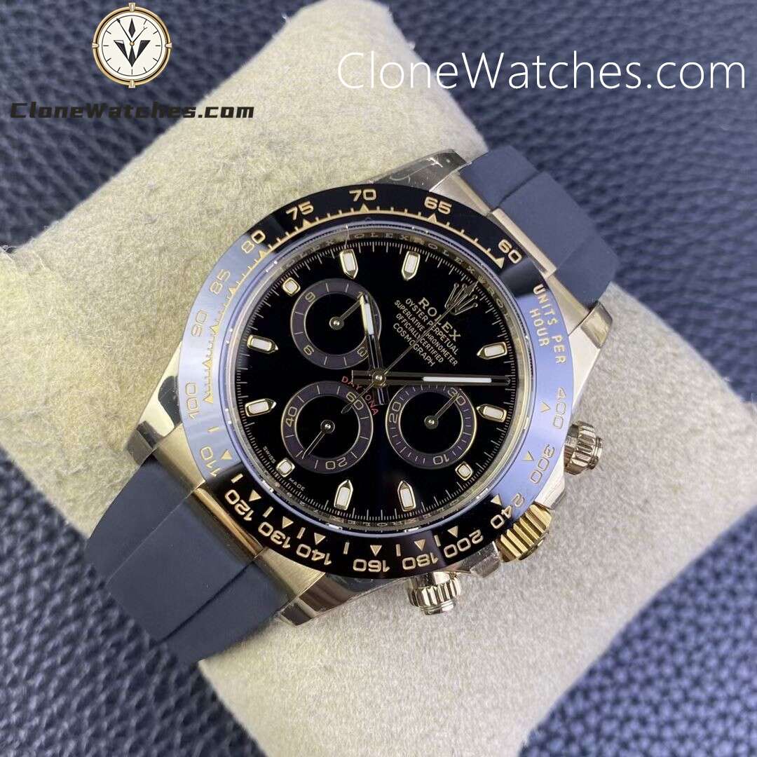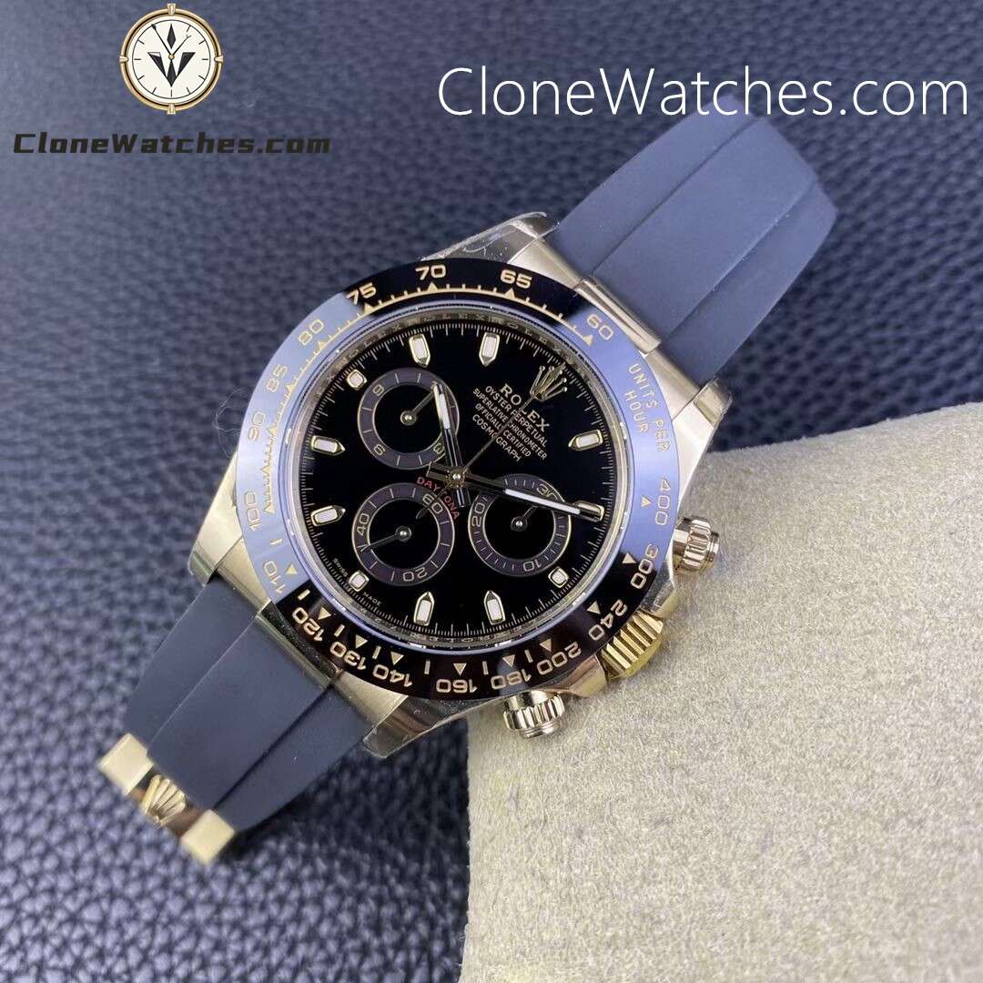Rolex Super Clone Watches 1:1 Daytona Black Dial Rubber Strap 4130 Movement
