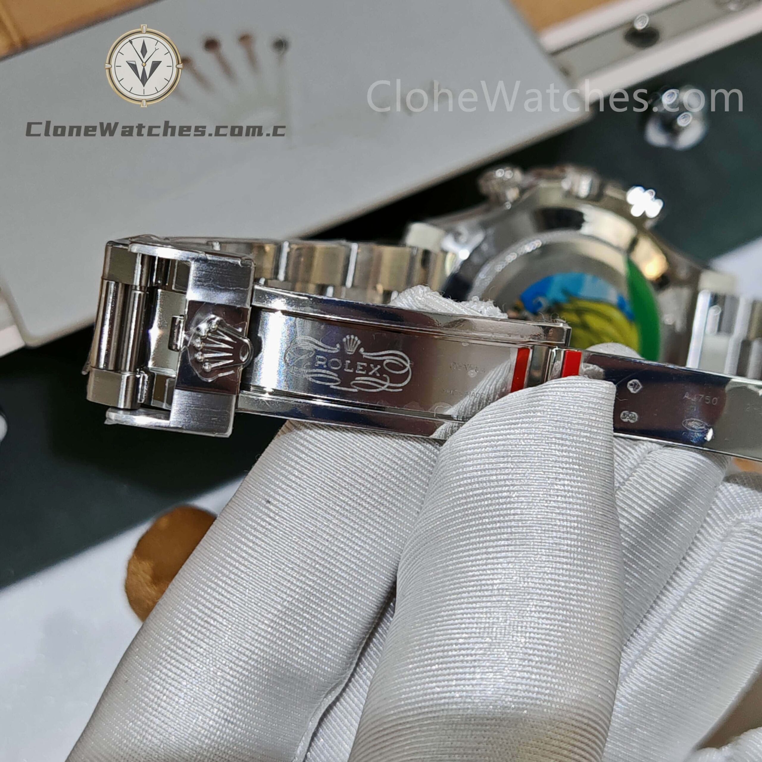 | Function | This Rolex Super Clone functions just like the original. Central hour and minute hands with small seconds at 6 o’clock. Timekeeping via central seconds hand, 30-minute counter at 3 o’clock and 12-hour counter at 9 o’clock. Stop seconds function for precise time setting. |