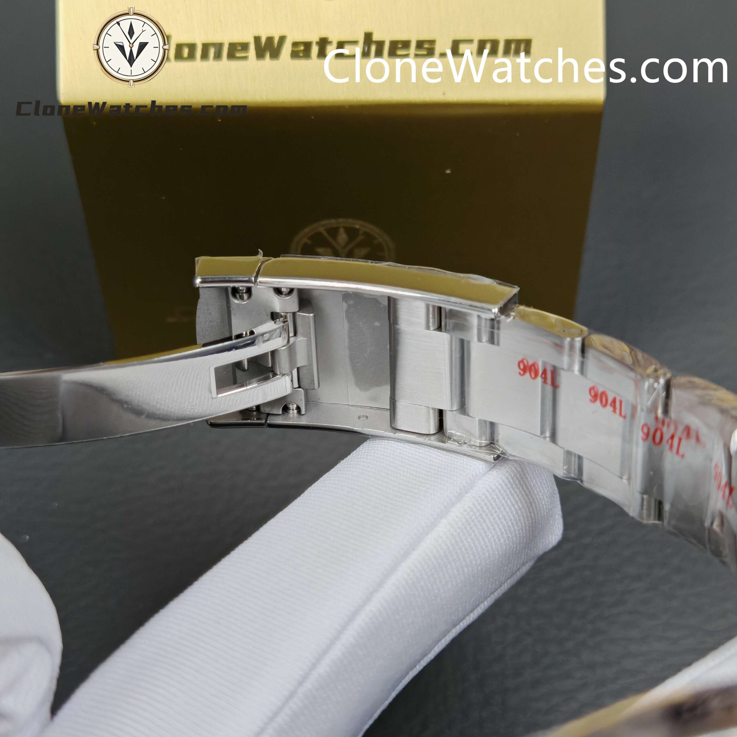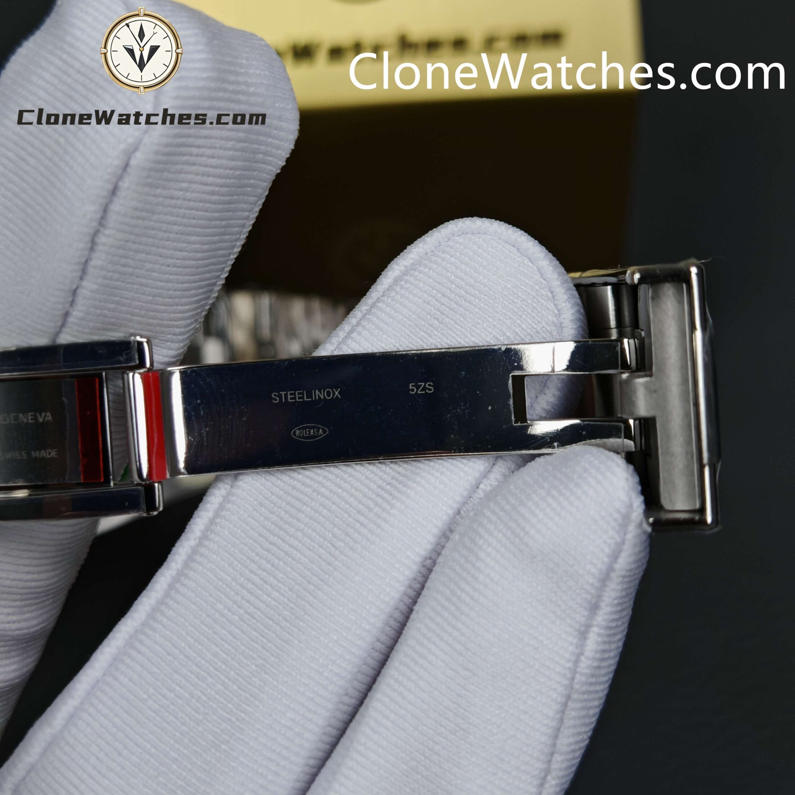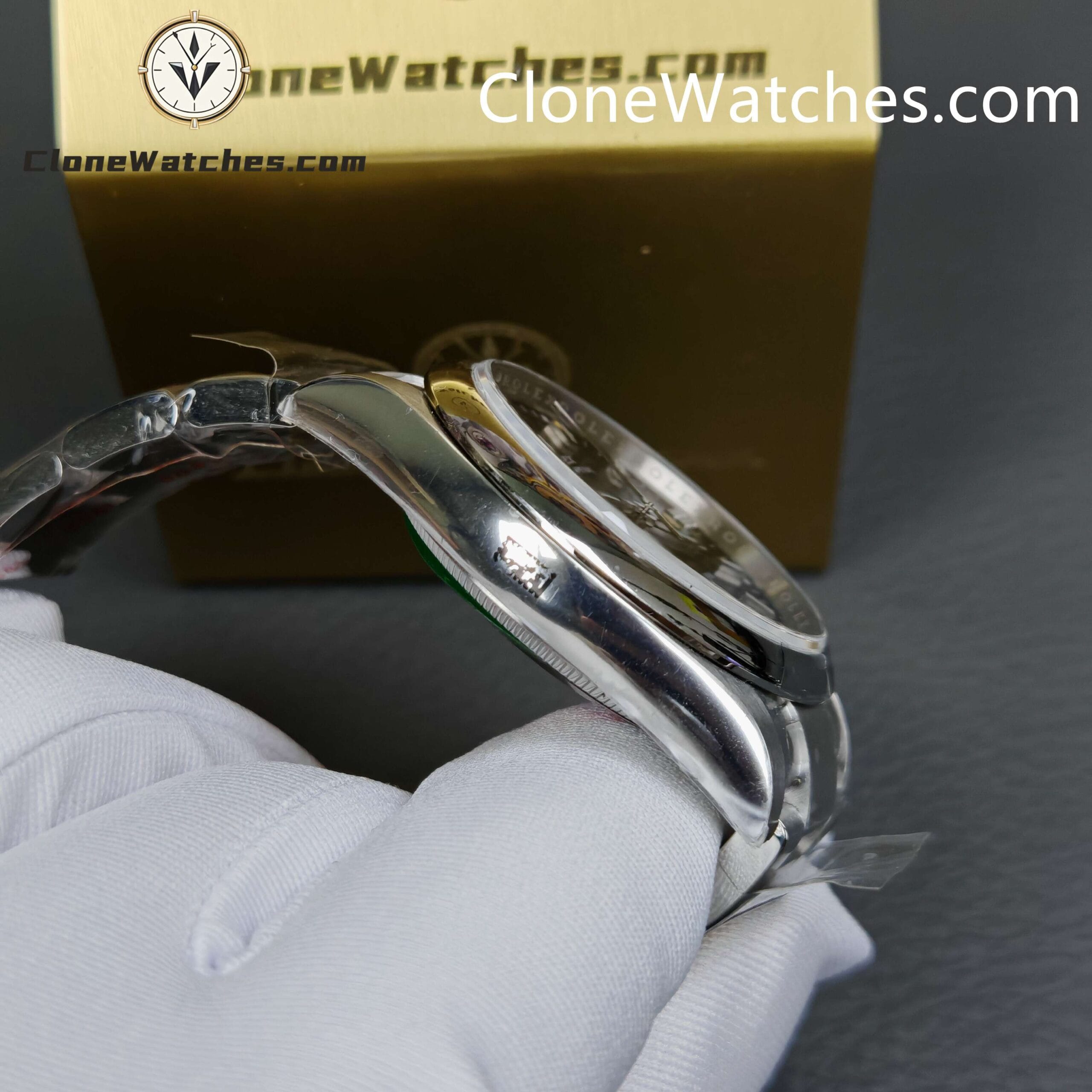 Rolex Oyster Perpetua Super Clone Watches is made of 904L stainless steel, the real Oyster Perpetual is also made of 904L stainless steel, so there is not much difference in the shine between the real and fake. The clone Rolex watch Oyster Perpetual is exact, with a flip lock, fully brushed bracelet, solid links, solid end links, screw links. The front crystal is hardened and made of sapphire, making this super Oyster Perpetual 1:1 clone watch scratch-proof. The front sapphire crystal has a laser-etched Rolex crown at the 6 o’clock position.