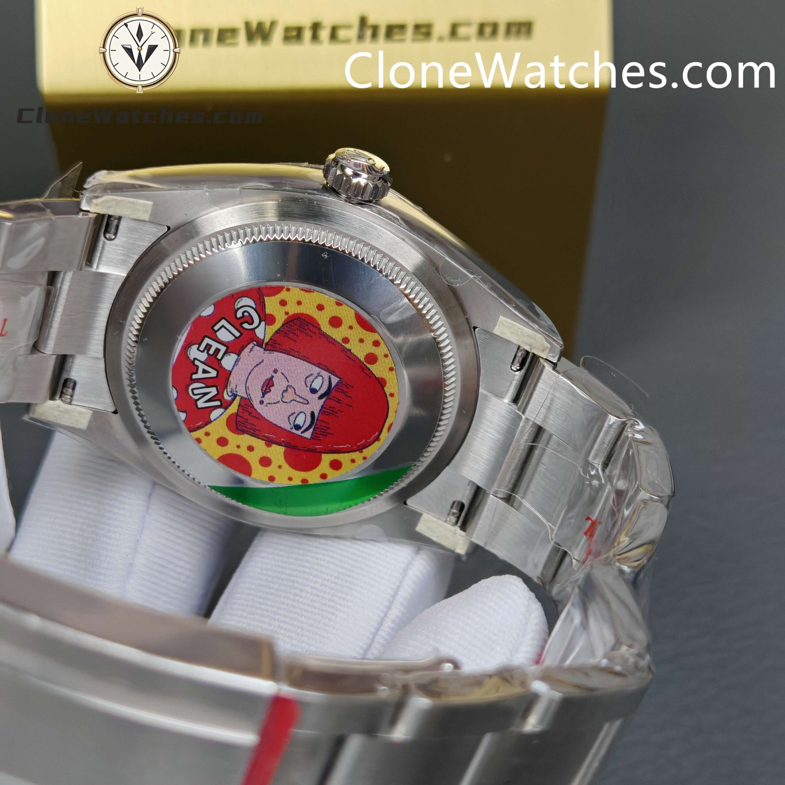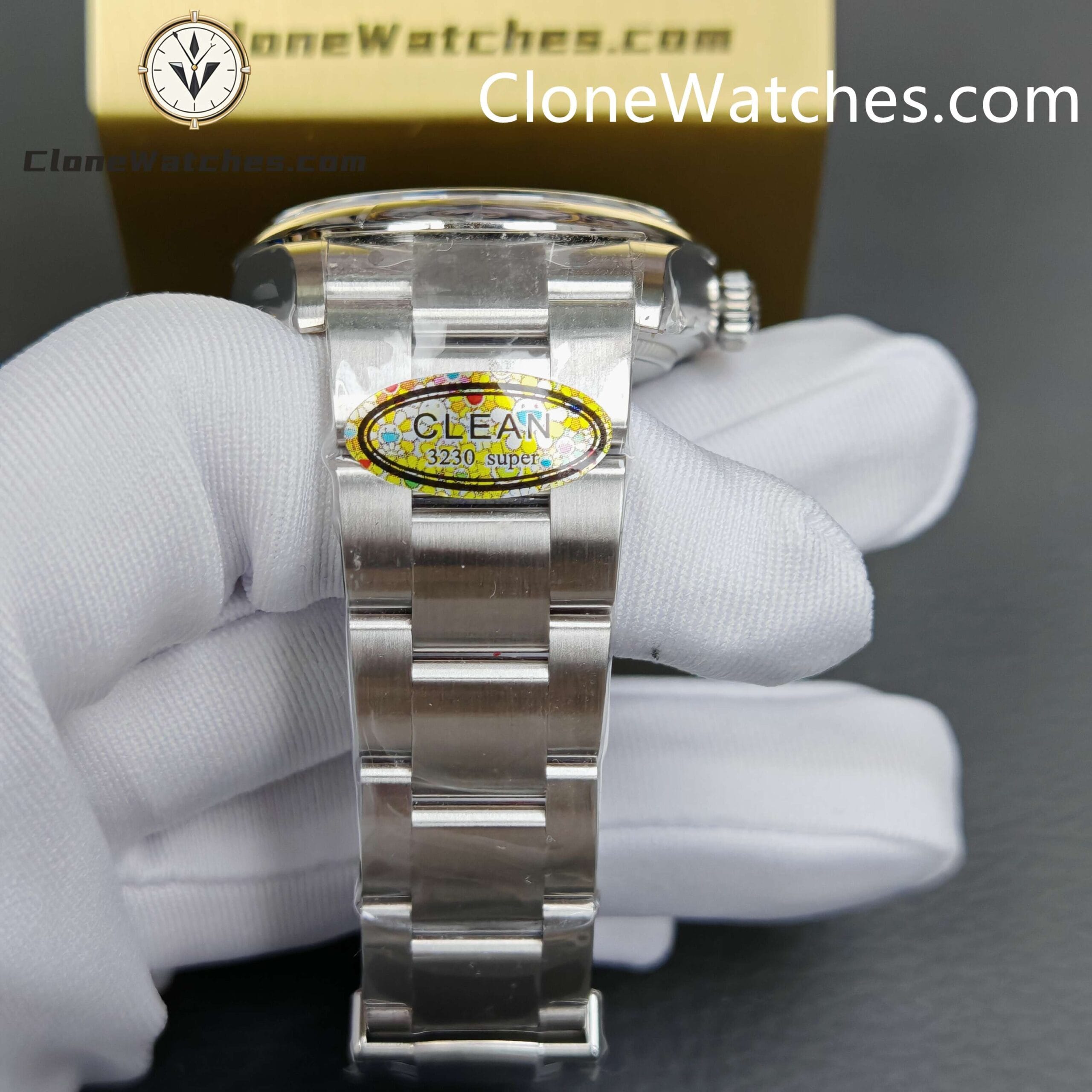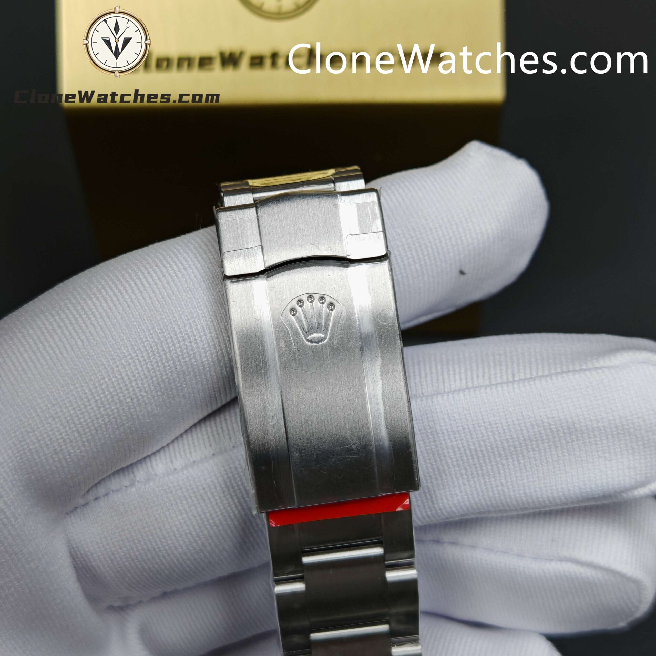 Rolex Oyster Perpetua Super Clone Watches is made of 904L stainless steel, the real Oyster Perpetual is also made of 904L stainless steel, so there is not much difference in the shine between the real and fake. The clone Rolex watch Oyster Perpetual is exact, with a flip lock, fully brushed bracelet, solid links, solid end links, screw links. The front crystal is hardened and made of sapphire, making this super Oyster Perpetual 1:1 clone watch scratch-proof. The front sapphire crystal has a laser-etched Rolex crown at the 6 o’clock position.