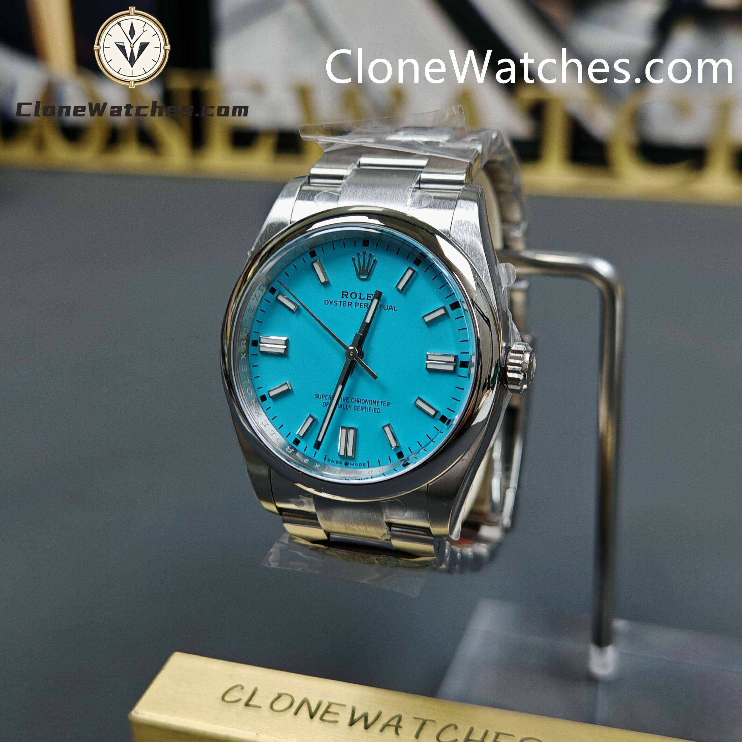 Rolex Oyster Perpetual Super Clone Watches 126000 Turquoise Blue dial with 36mm case, comes with a satin Oyster strap for . The magnificent clone Rolex Oyster Perpetual is made of 904L stainless steel and shines like the original. The Rolex Oyster Perpetual Super Clone is equipped with a 3230 1:1 clone movement.