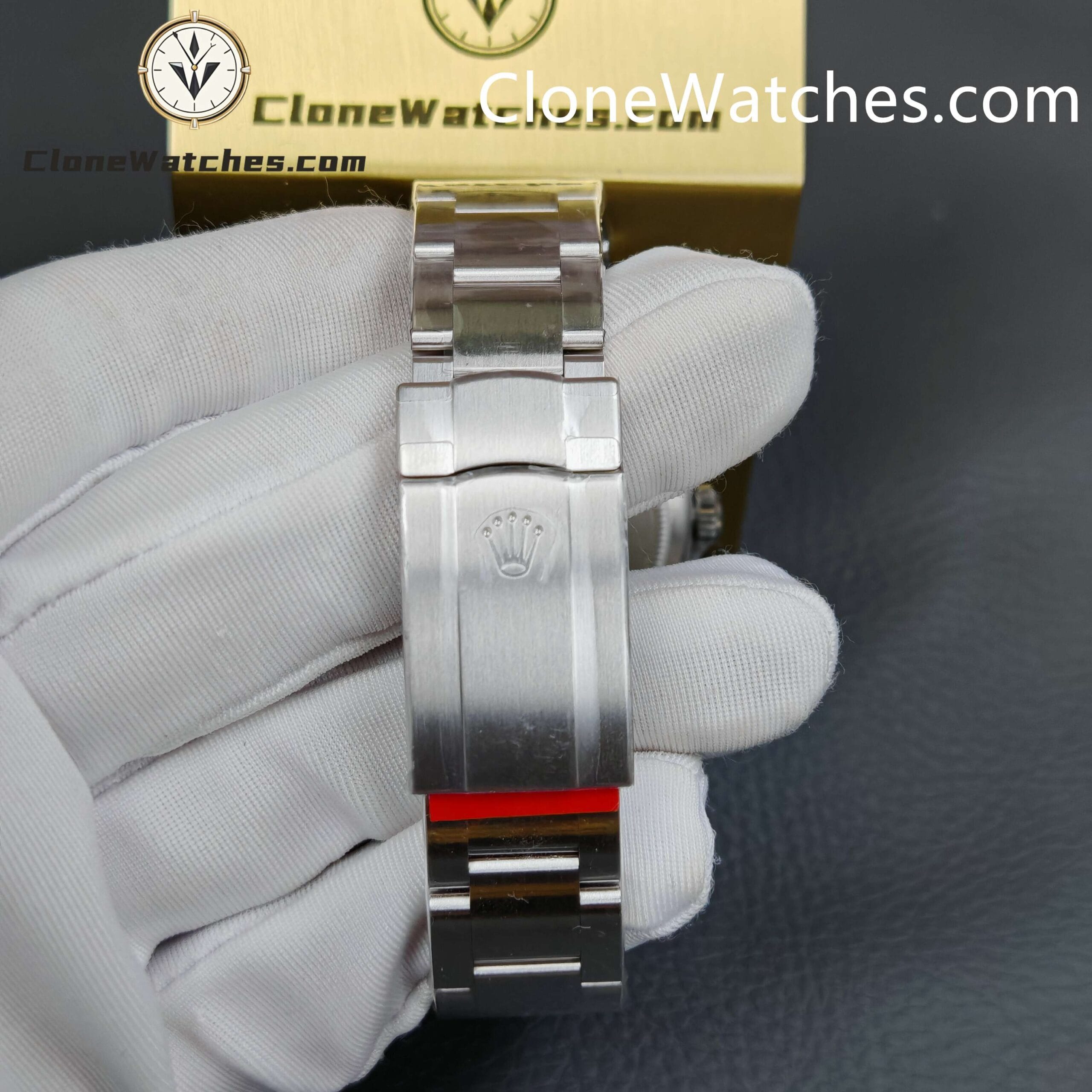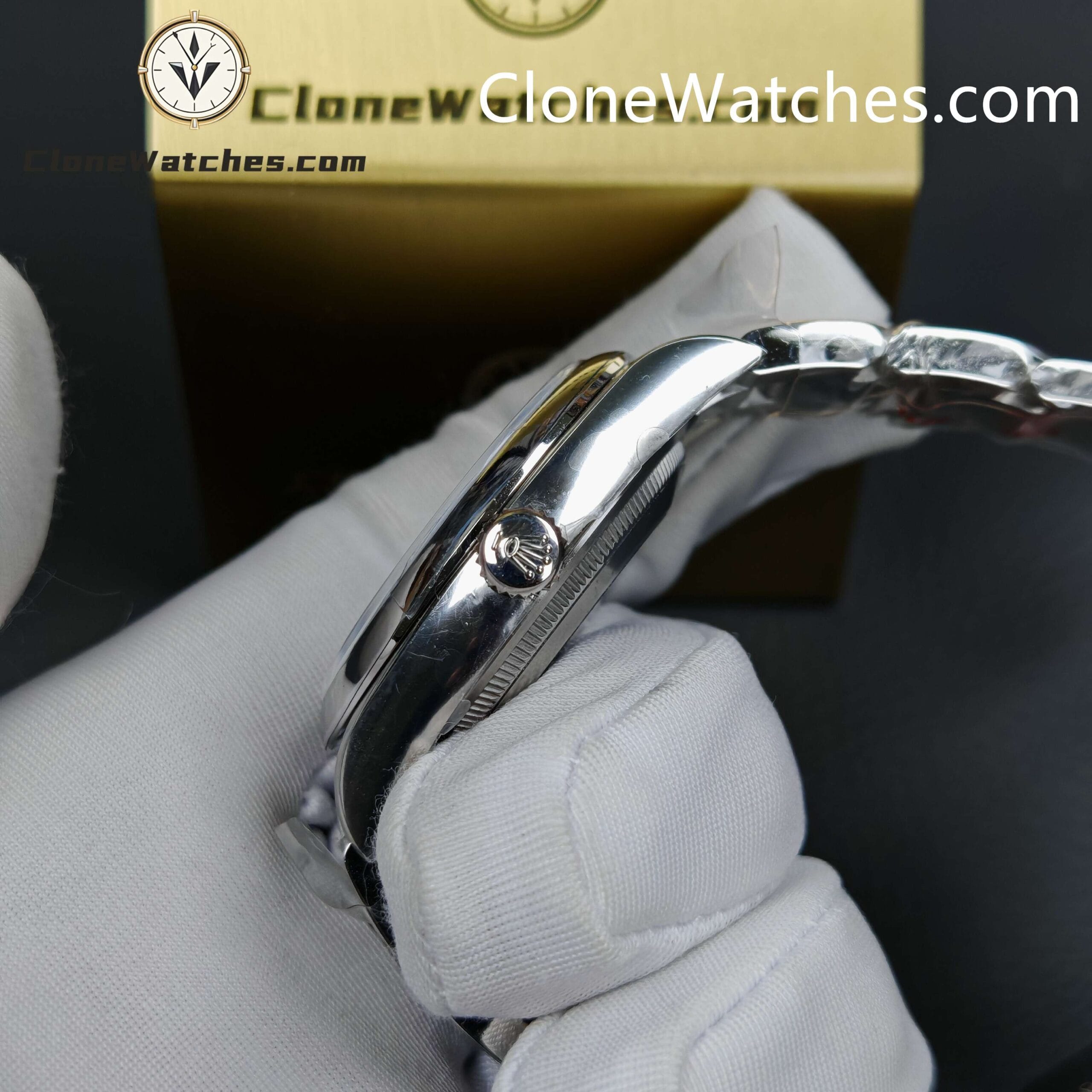Rolex Oyster Perpetua Super Clone Watches is made of 904L stainless steel, the real Oyster Perpetual is also made of 904L stainless steel, so there is not much difference in the shine between the real and fake. The clone Rolex watch Oyster Perpetual is exact, with a flip lock, fully brushed bracelet, solid links, solid end links, screw links. The front crystal is hardened and made of sapphire, making this super Oyster Perpetual 1:1 clone watch scratch-proof. The front sapphire crystal has a laser-etched Rolex crown at the 6 o’clock position.