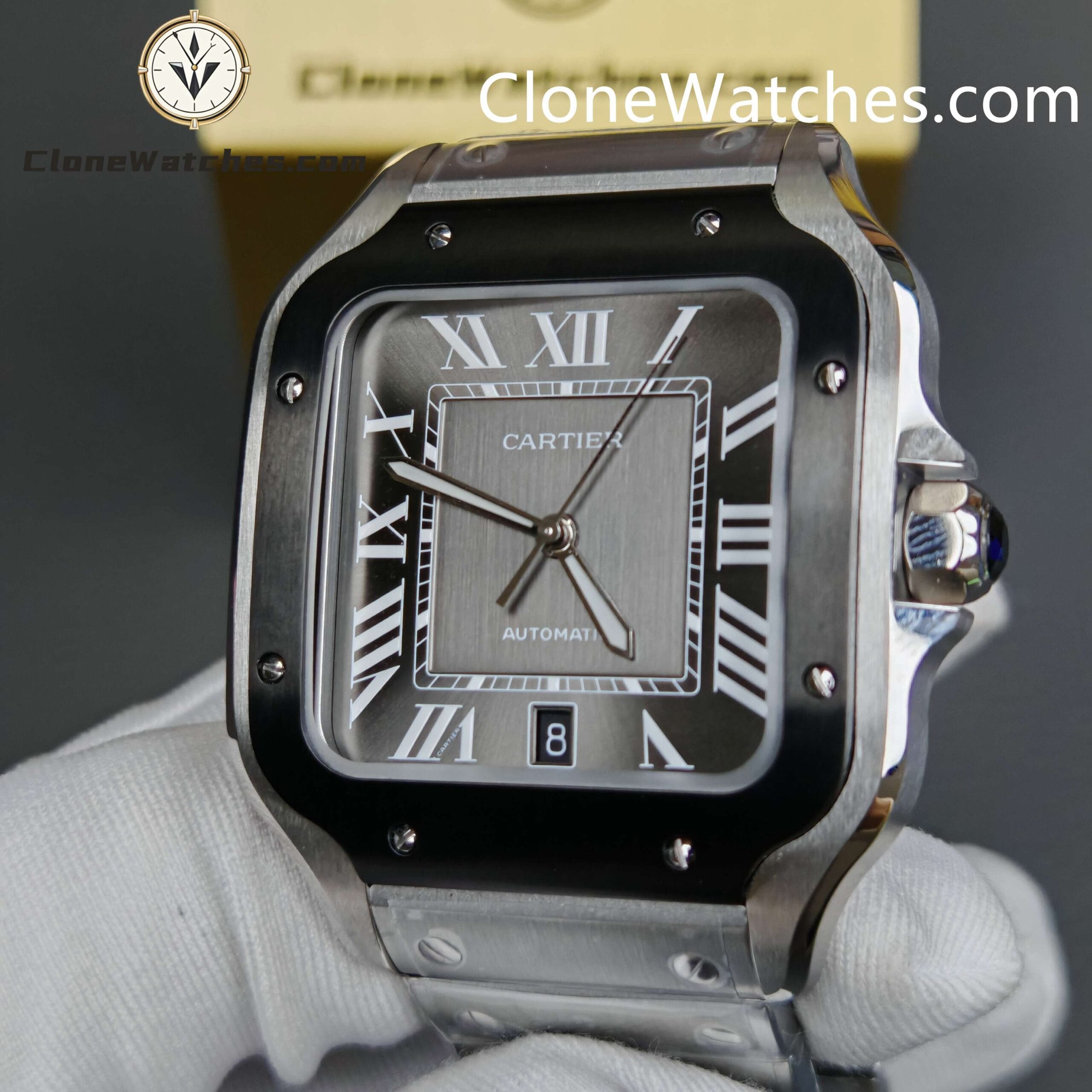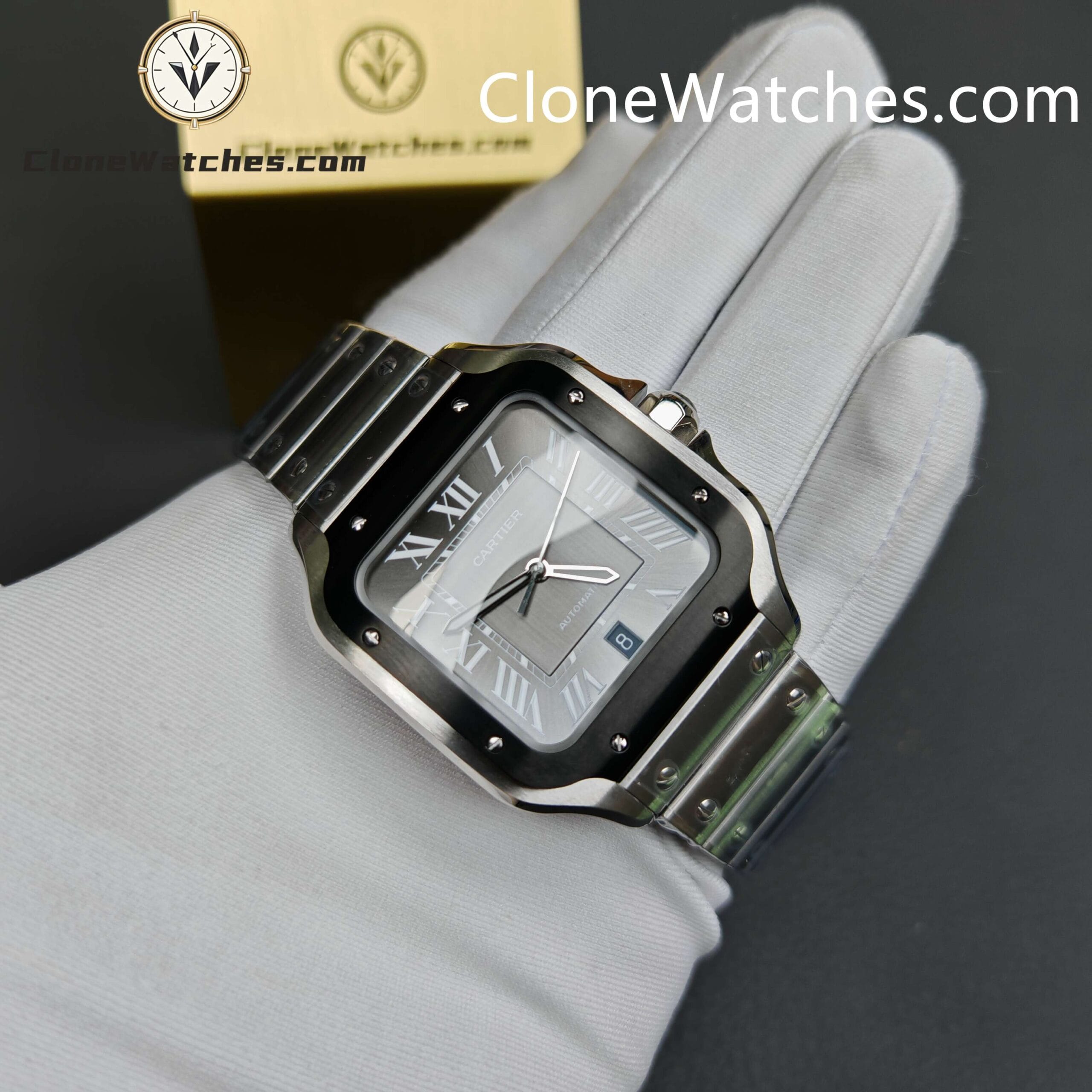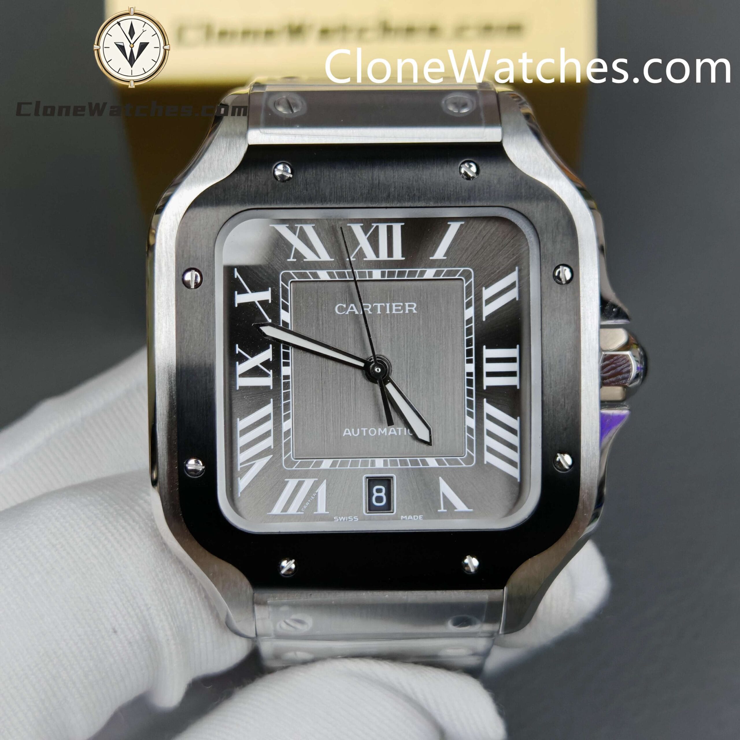 Cartier Super Clone Watches 1:1 Santos Series Gray Dial 39.8MM WSSA0037 Steel Strap