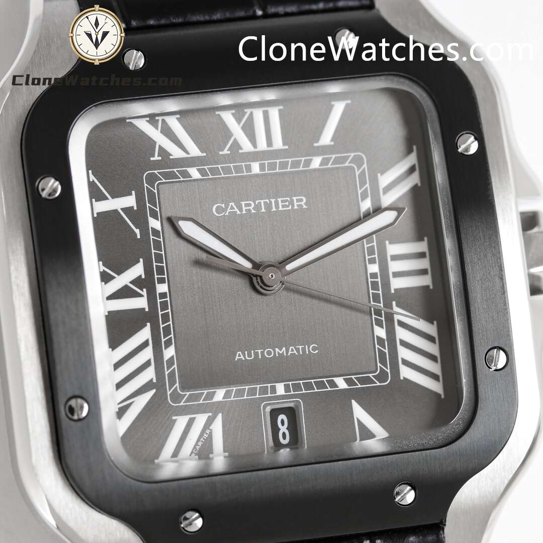 Cartier Super Clone Watches 1:1 Santos Series Grey Dial 39.8MM WSSA0037 Leather Strap