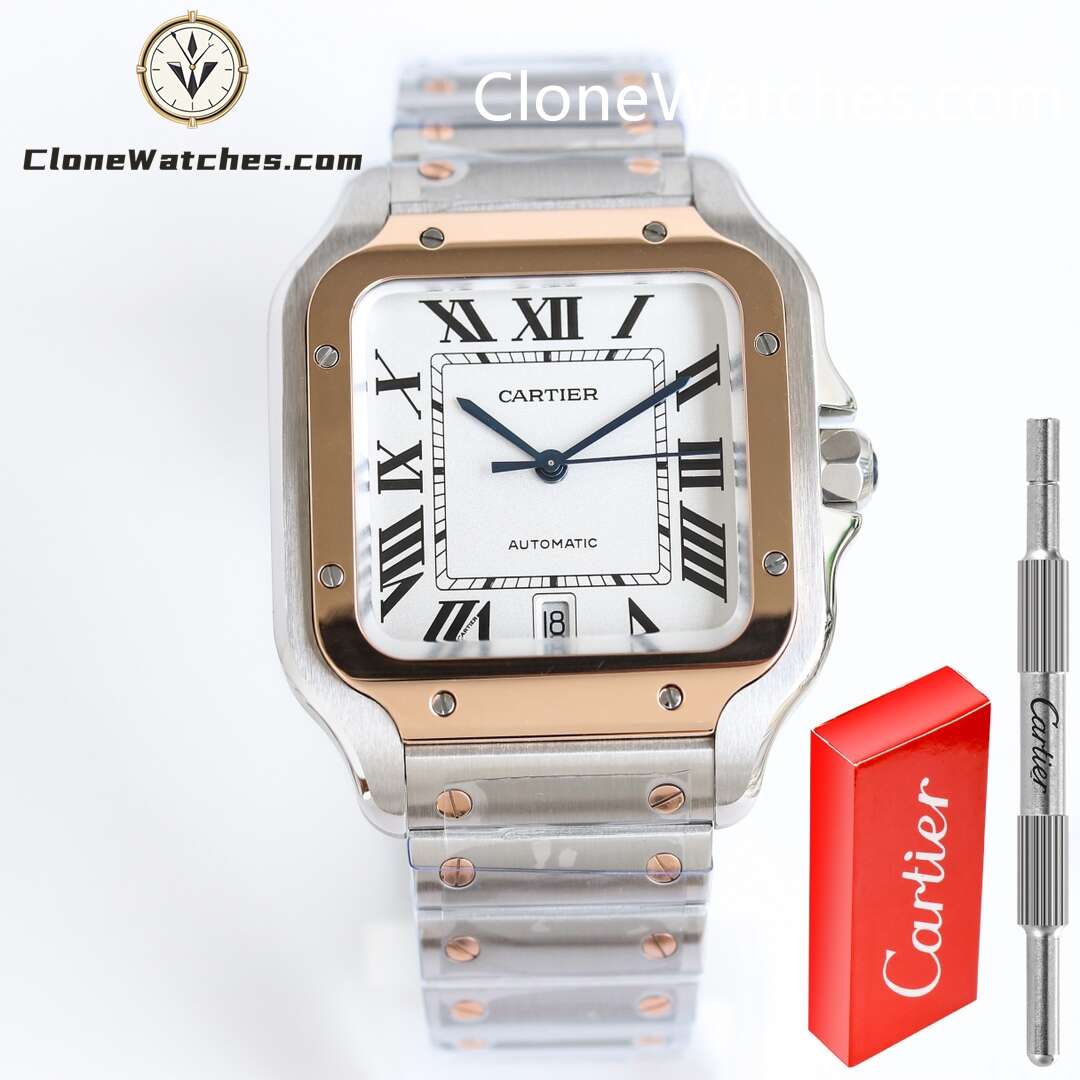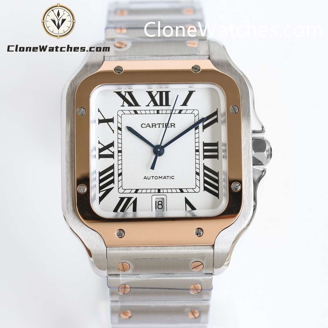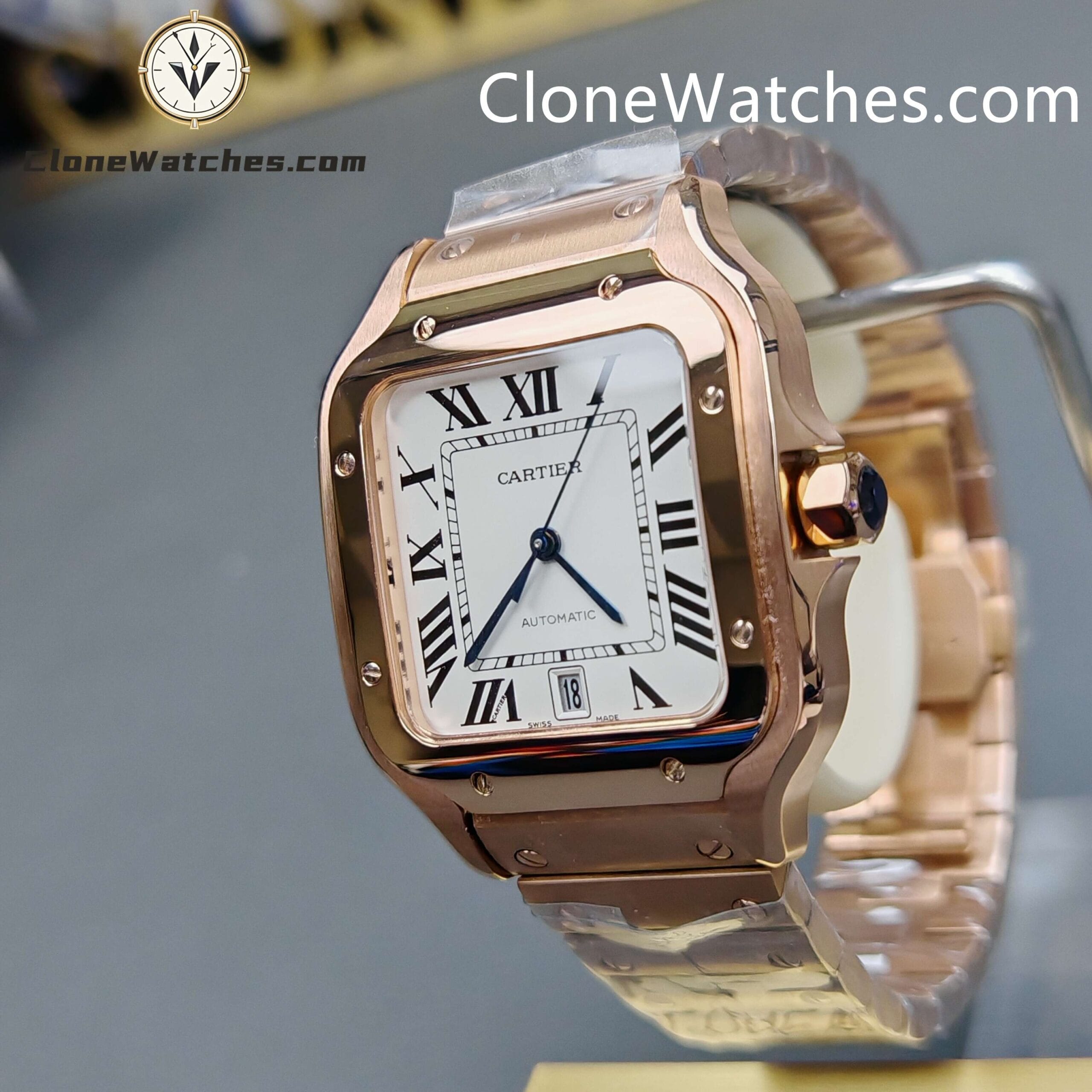 Cartier Super Clone Watches 1:1 Santos Rose Gold White Dial 39.8MM WGSA0007