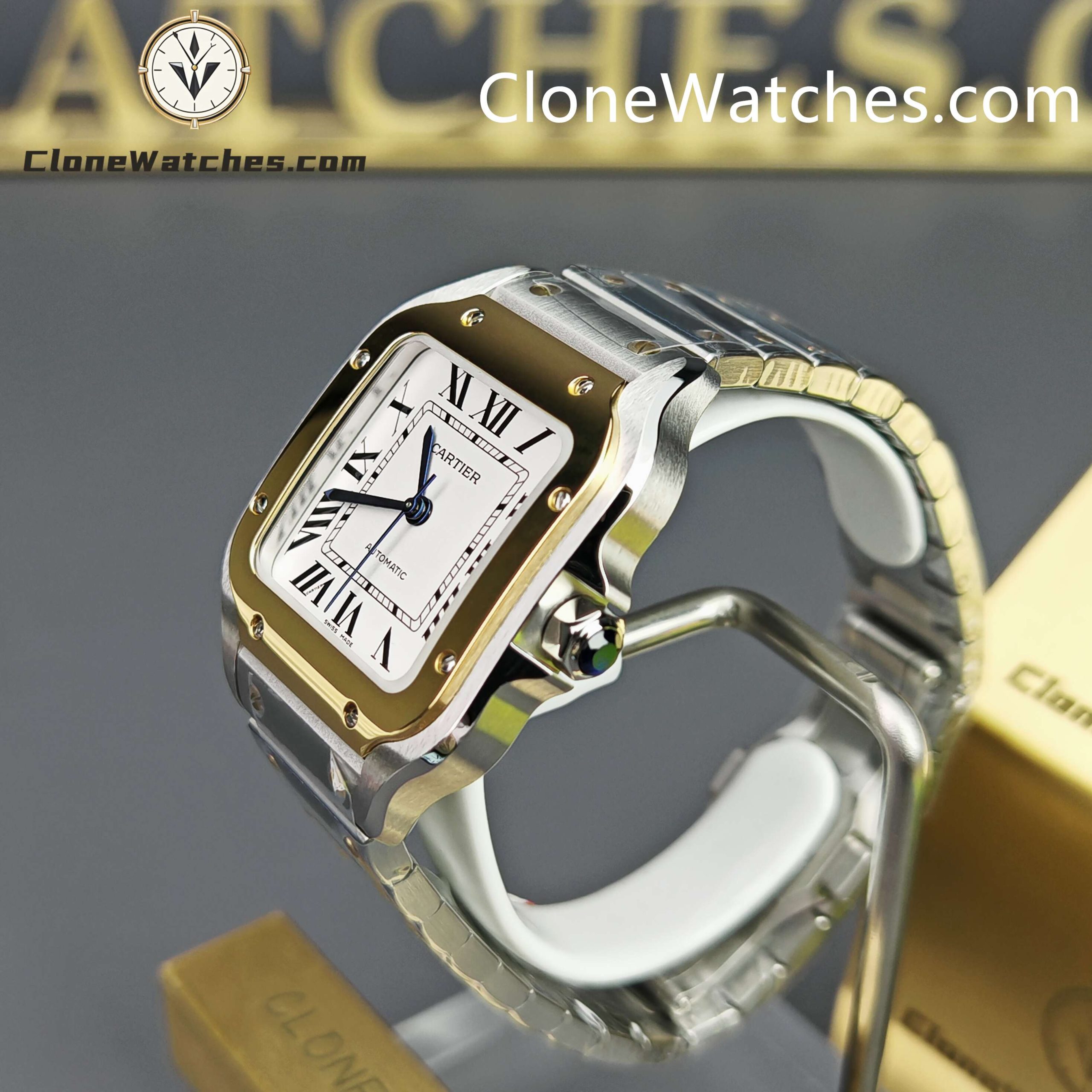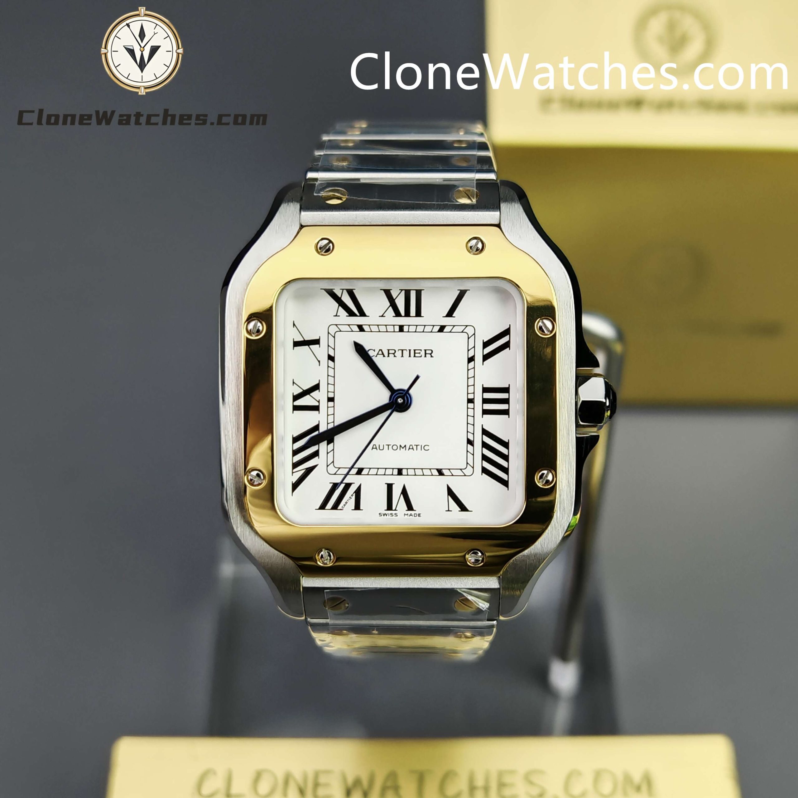 Cartier Super Clone Watches 1:1 Santos Series White Dial 18K gold plated 35.1MM W2SA0016