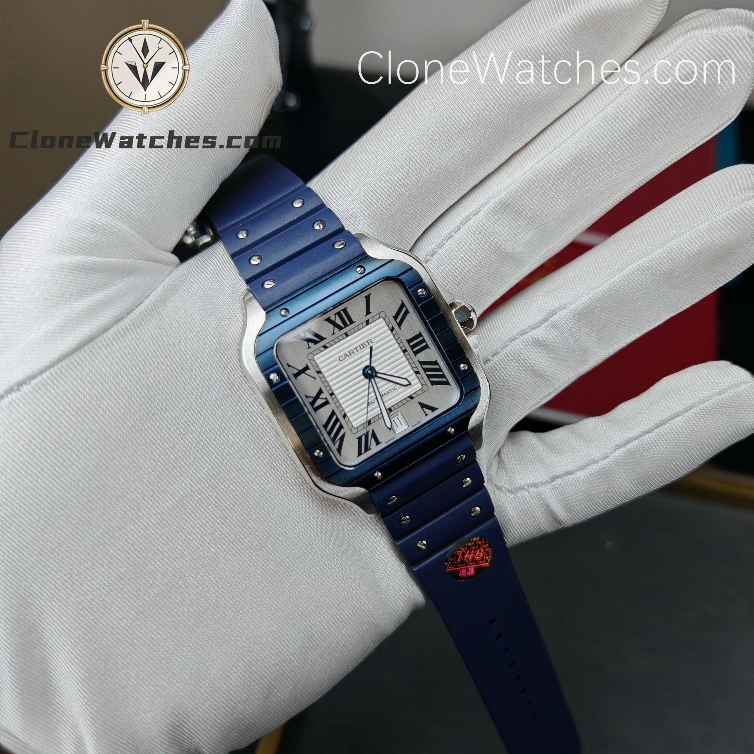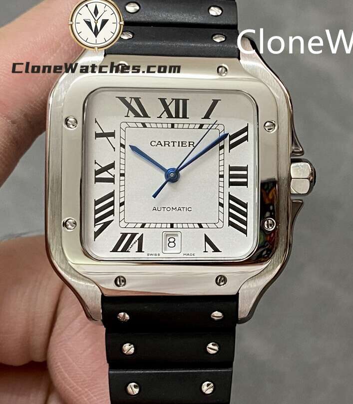 Cartier Super Clone Watches 1:1 Santos Series White Dial 39.8MM WSSA0018 Rubber Strap