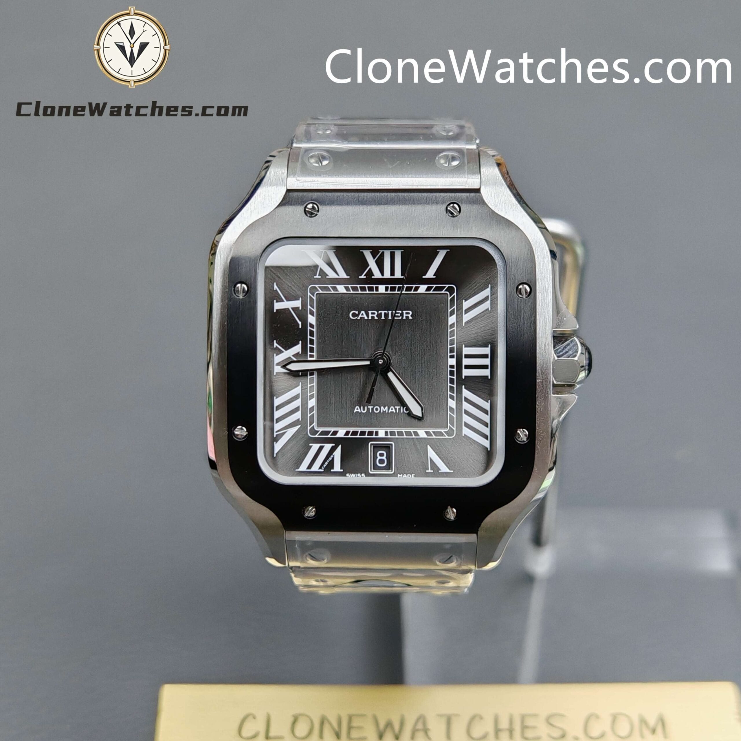 Cartier Super Clone Watches 1:1 Santos Series Gray Dial 39.8MM WSSA0037 Steel Strap