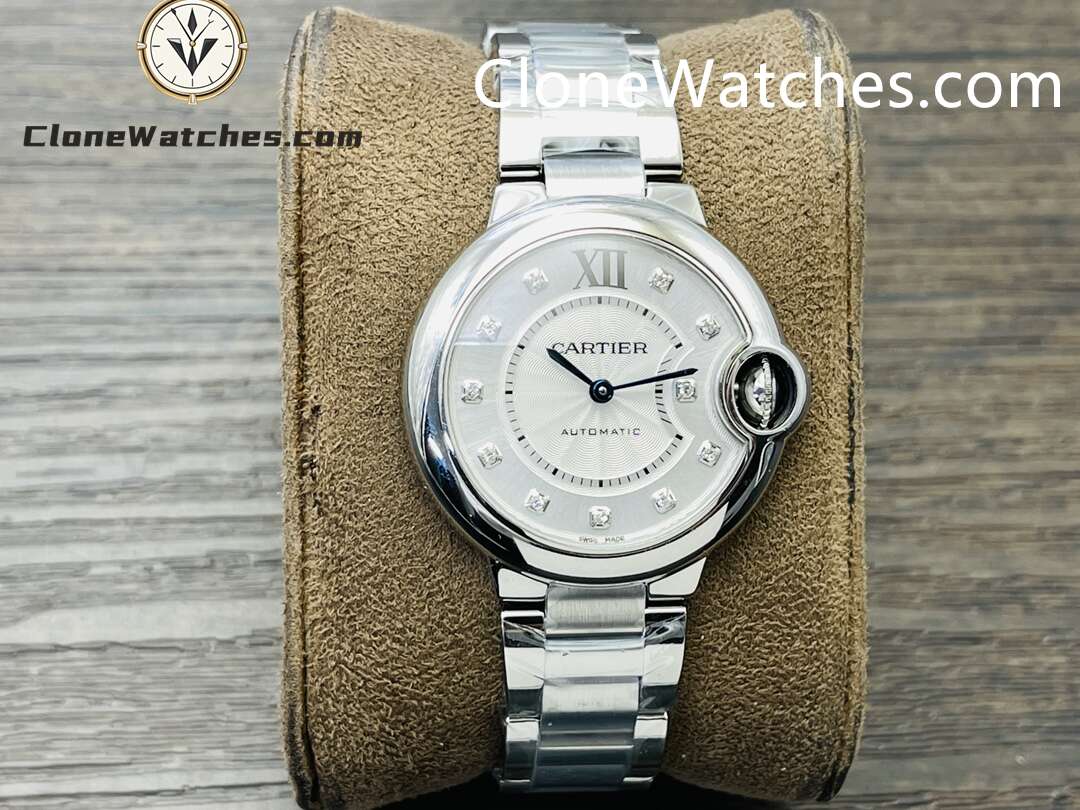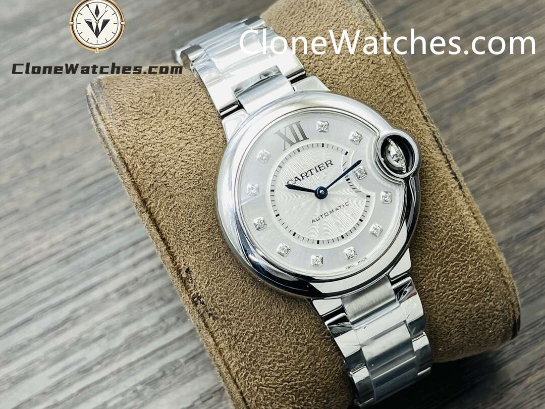 Cartier Super Clone Watches 1:1 Ballon Bleu de Cartier WE902074 White Diamond Dial 33mm