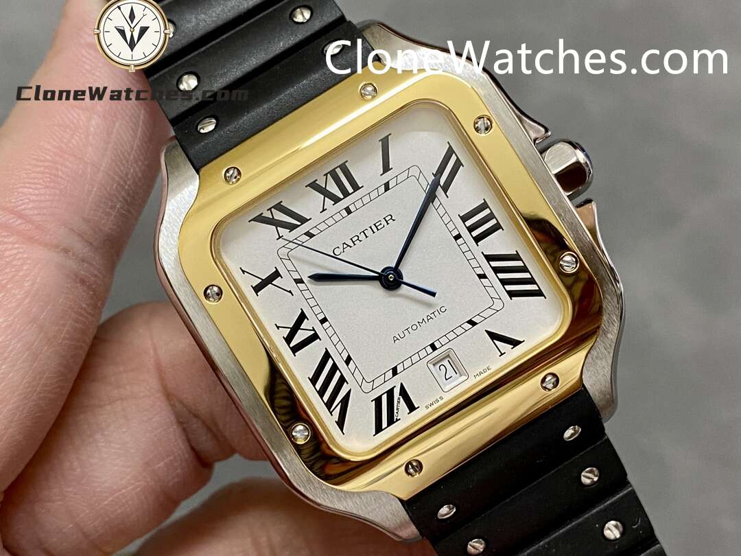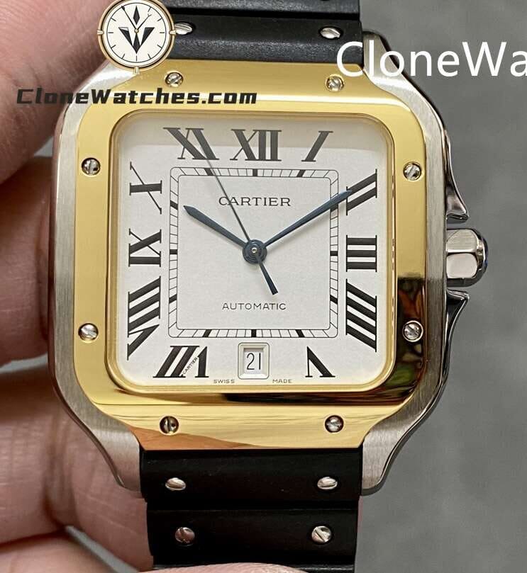 Cartier Super Clone Watches 1:1 Santos Series White Dial 18K gold plated 39.8MM W2SA0009 Rubber Strap