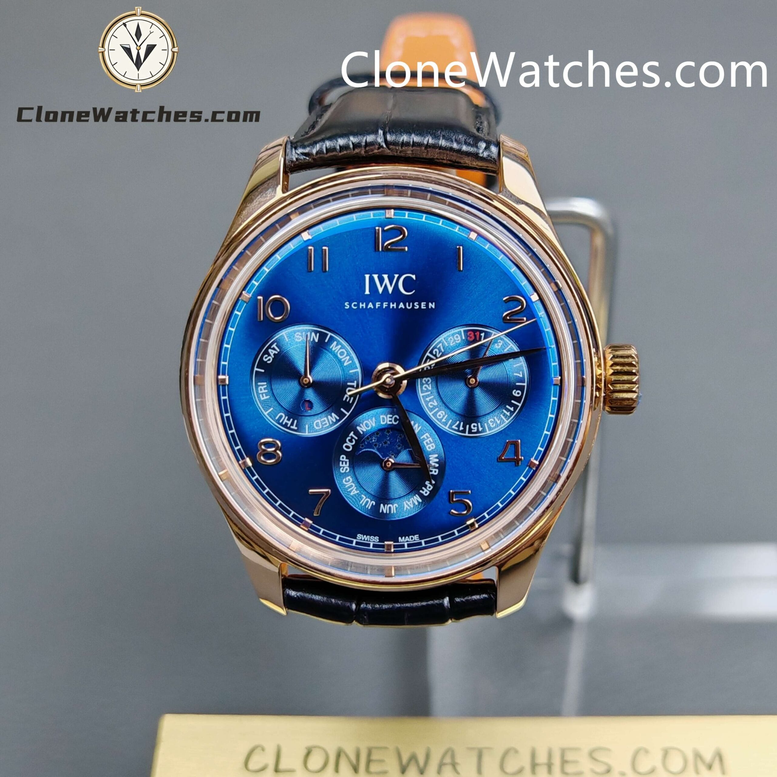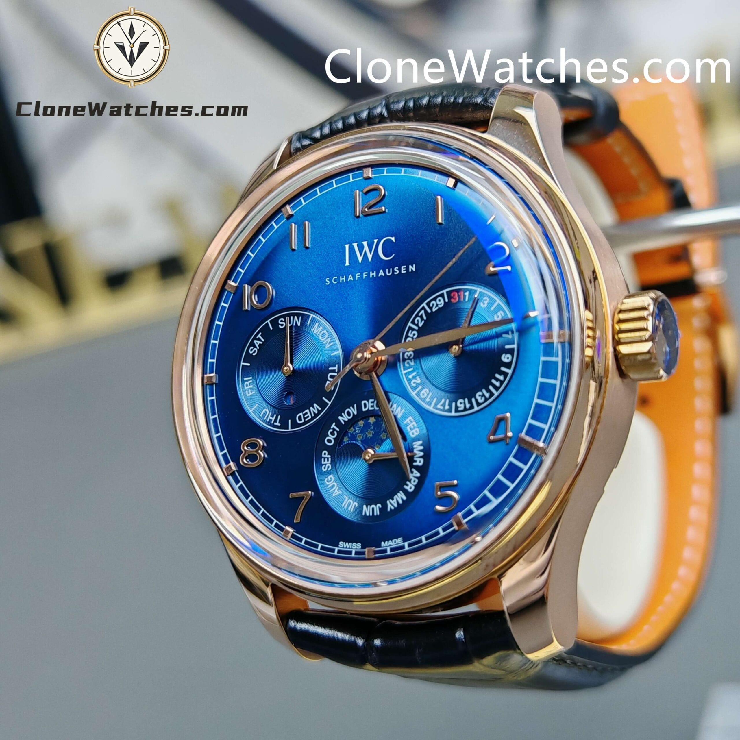 IWC Super Clone Watches 1:1 Portugieser Rose Gold Blue Dial Perpetual Calendar 42MM IW344205