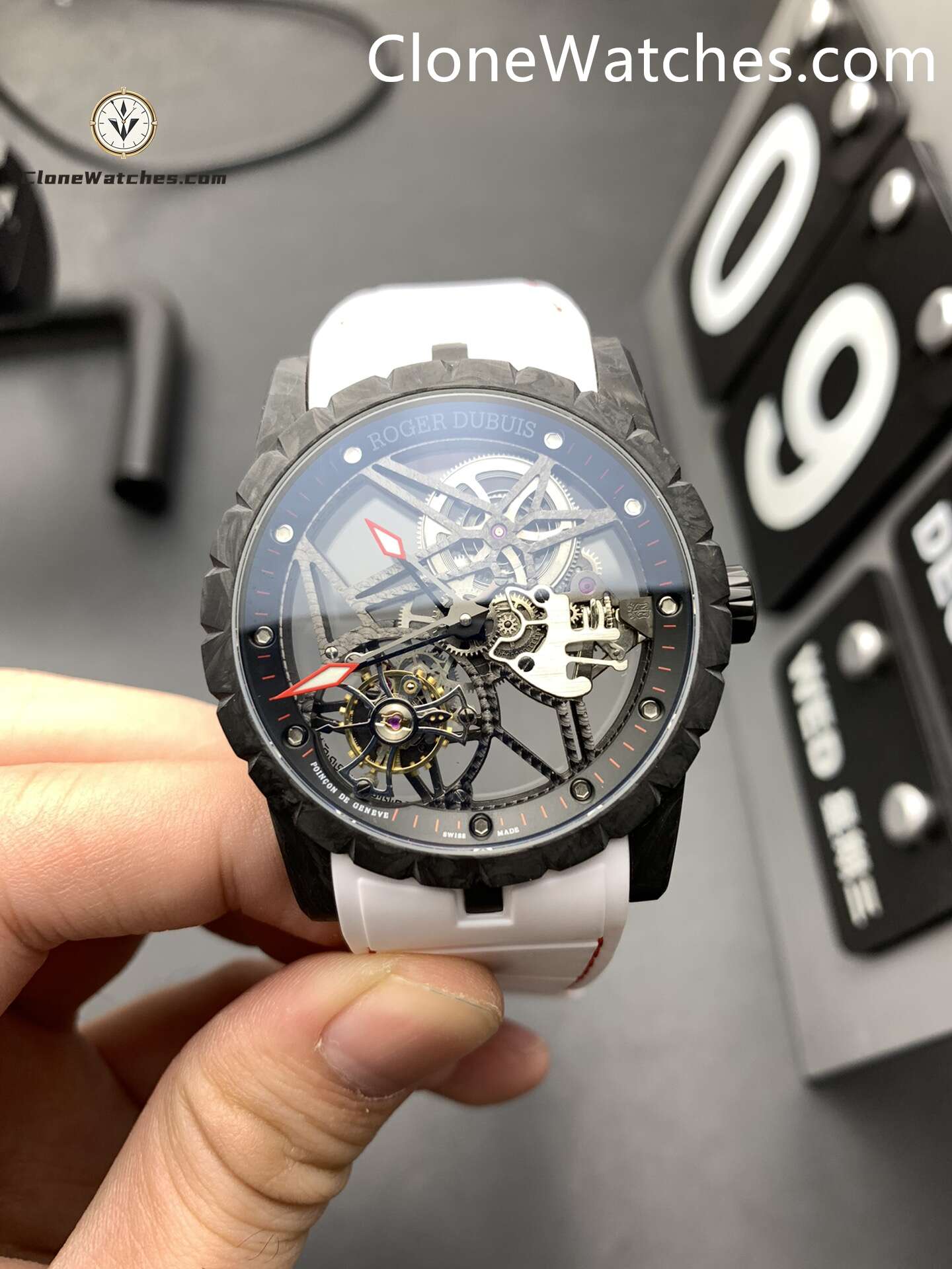 Roger Dubuis Super Clone Watches 1:1 Excalibur Carbon Fiber Skeleton Dial DBEX0577 42MM