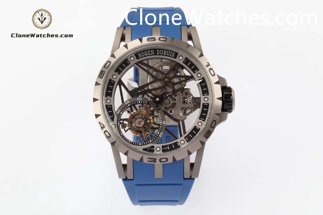 Roger Dubuis Super Clone Watches 1:1 Excalibur Skeleton Tourbillon RDDBEX0479 45MM Blue Strap
