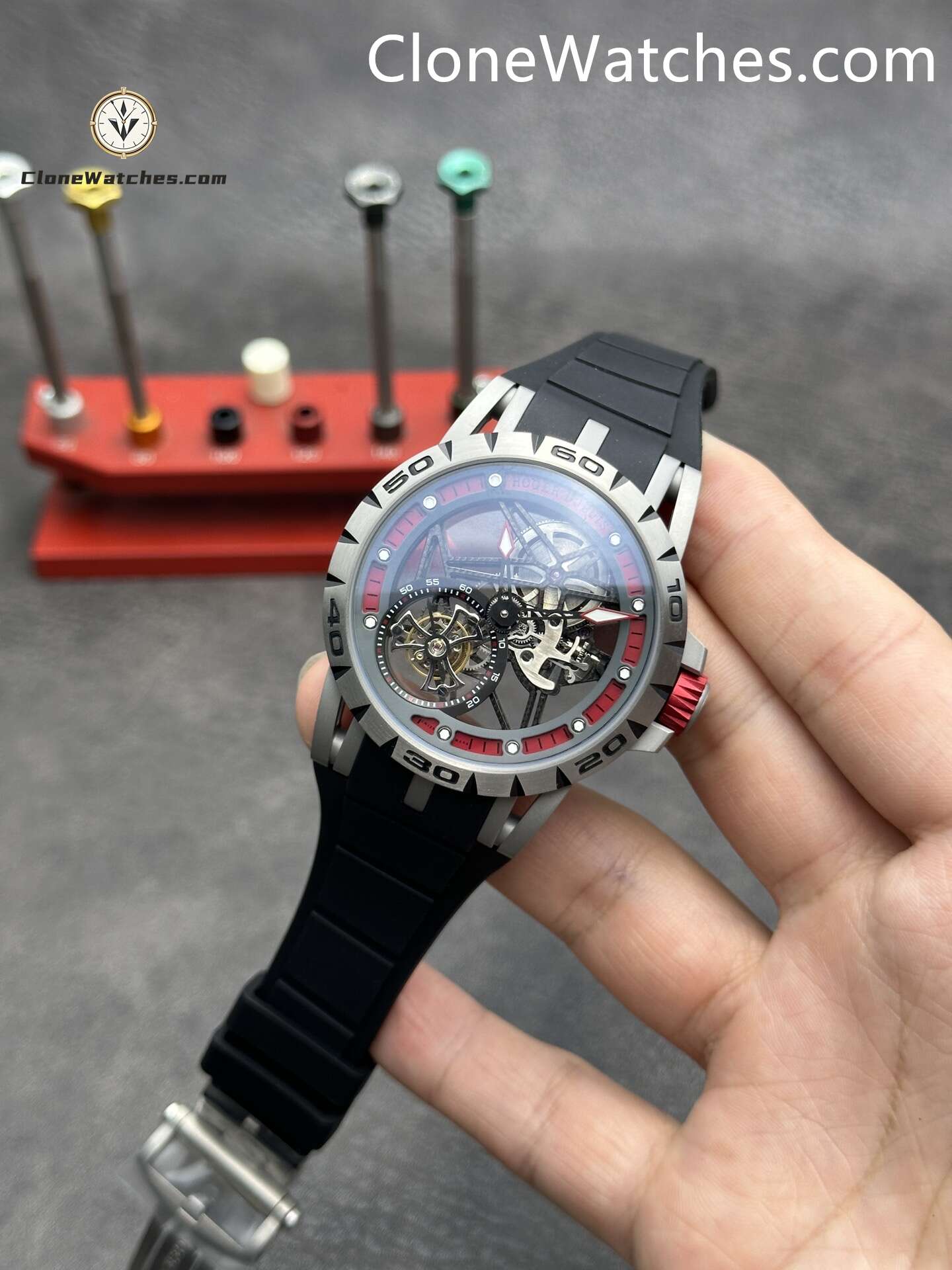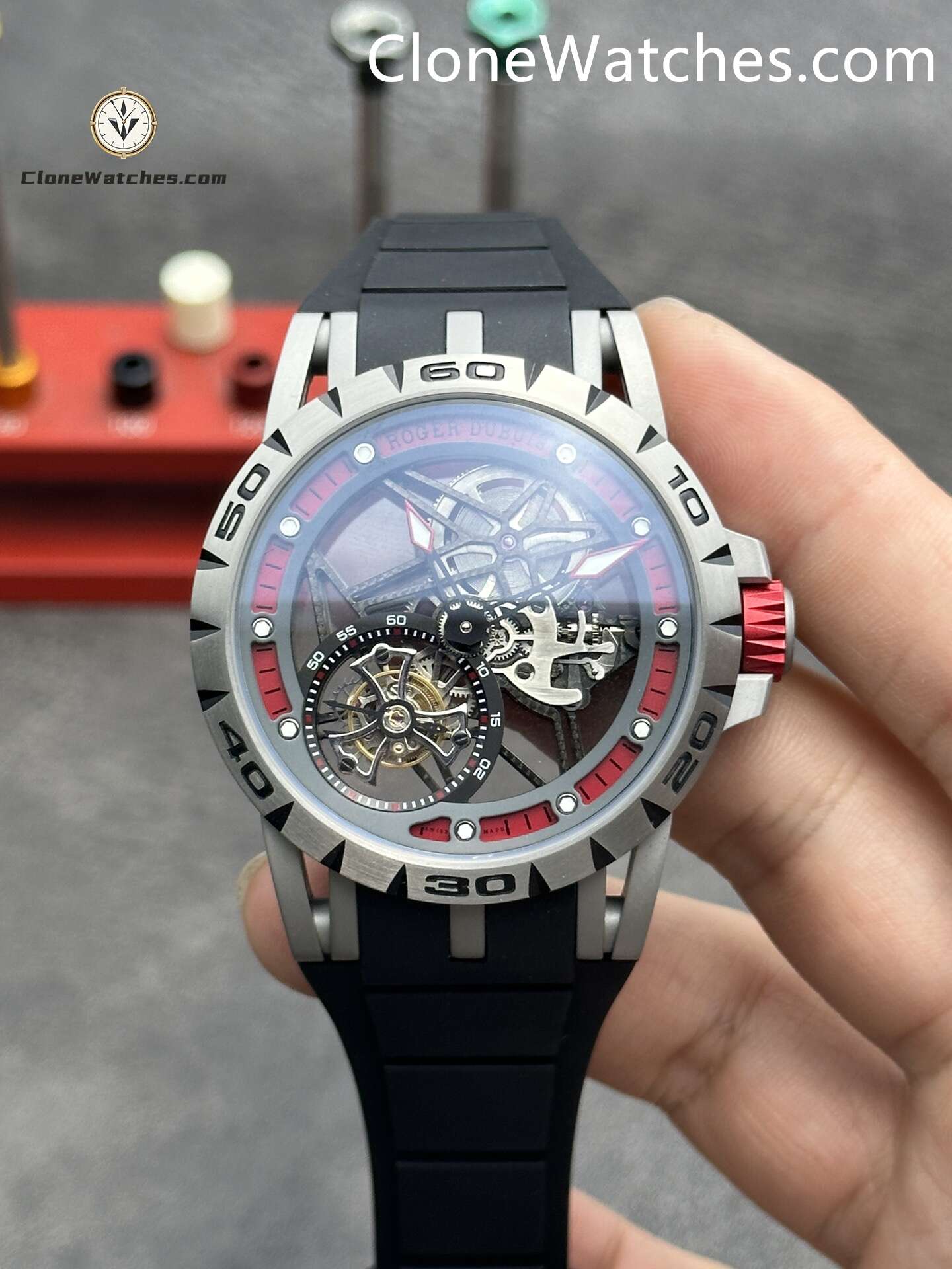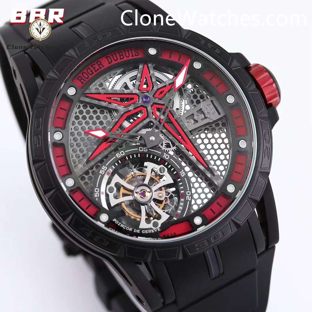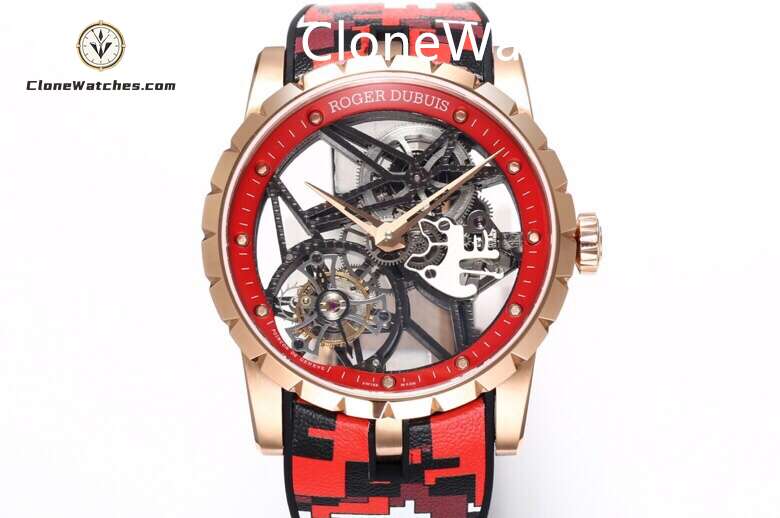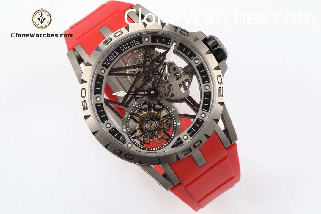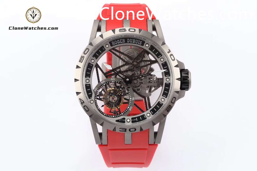 Roger Dubuis Super Clone Watches 1:1 Excalibur Skeleton Tourbillon RDDBEX0479 45MM Red Strap