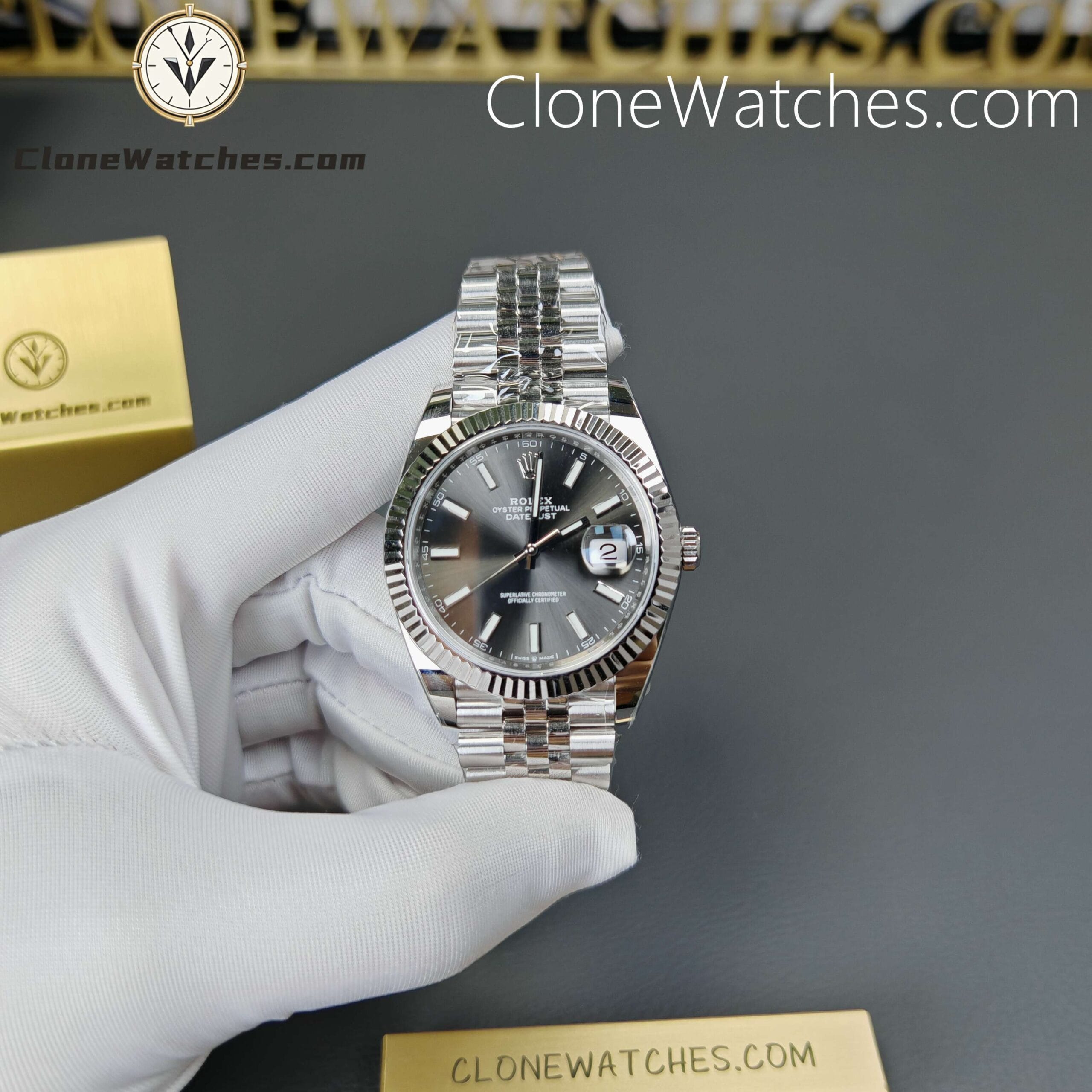 Rolex Super Clone Watches 1:1 DateJust Grey Dial M126334-0014 Jubilee 41MM 3235 Movement
