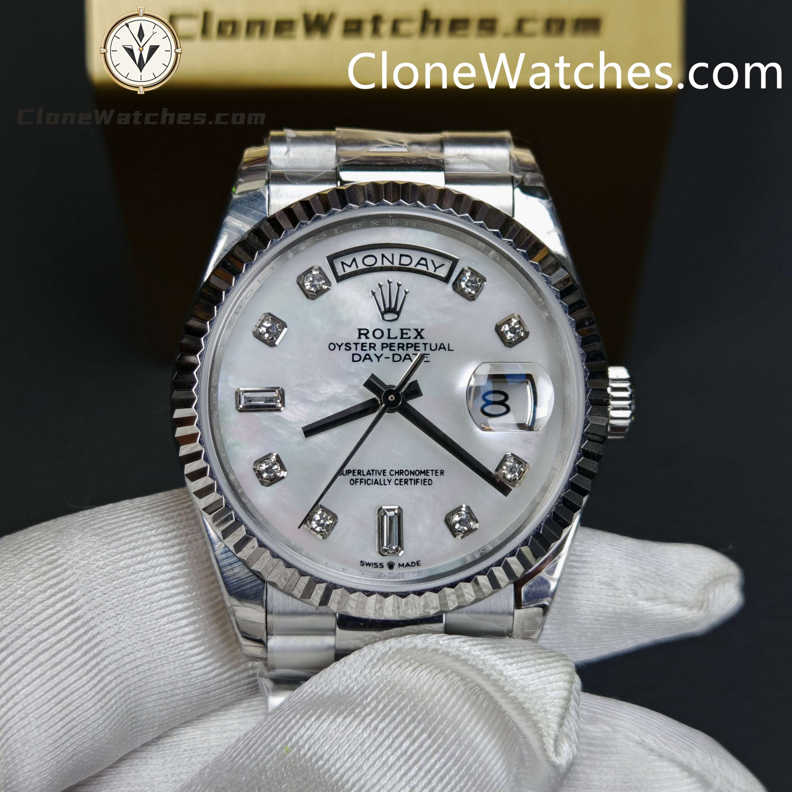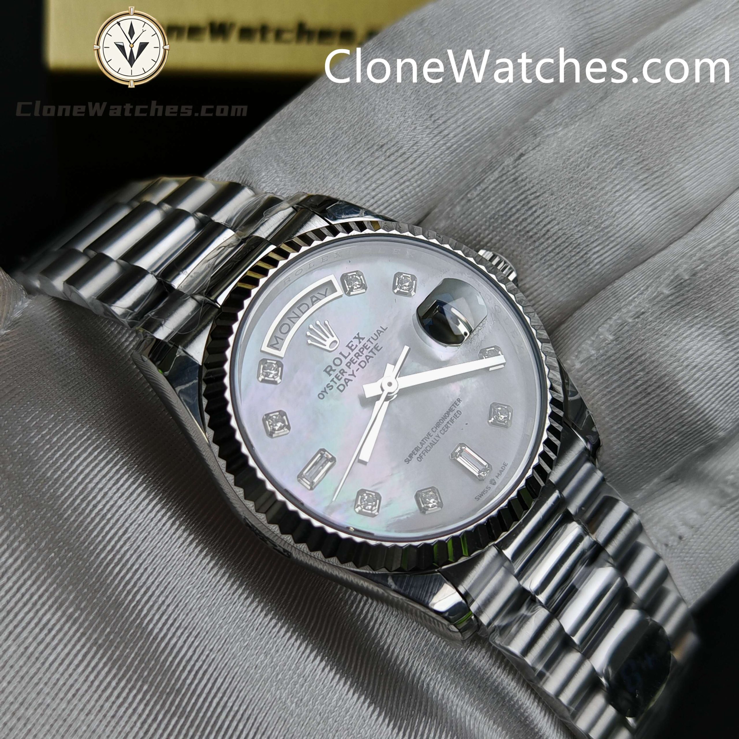 Rolex Super Clone Watches 1:1 Day Date Mother of Pearl Diamond Dial 36 mm m128239 – 0007 3255 Movement