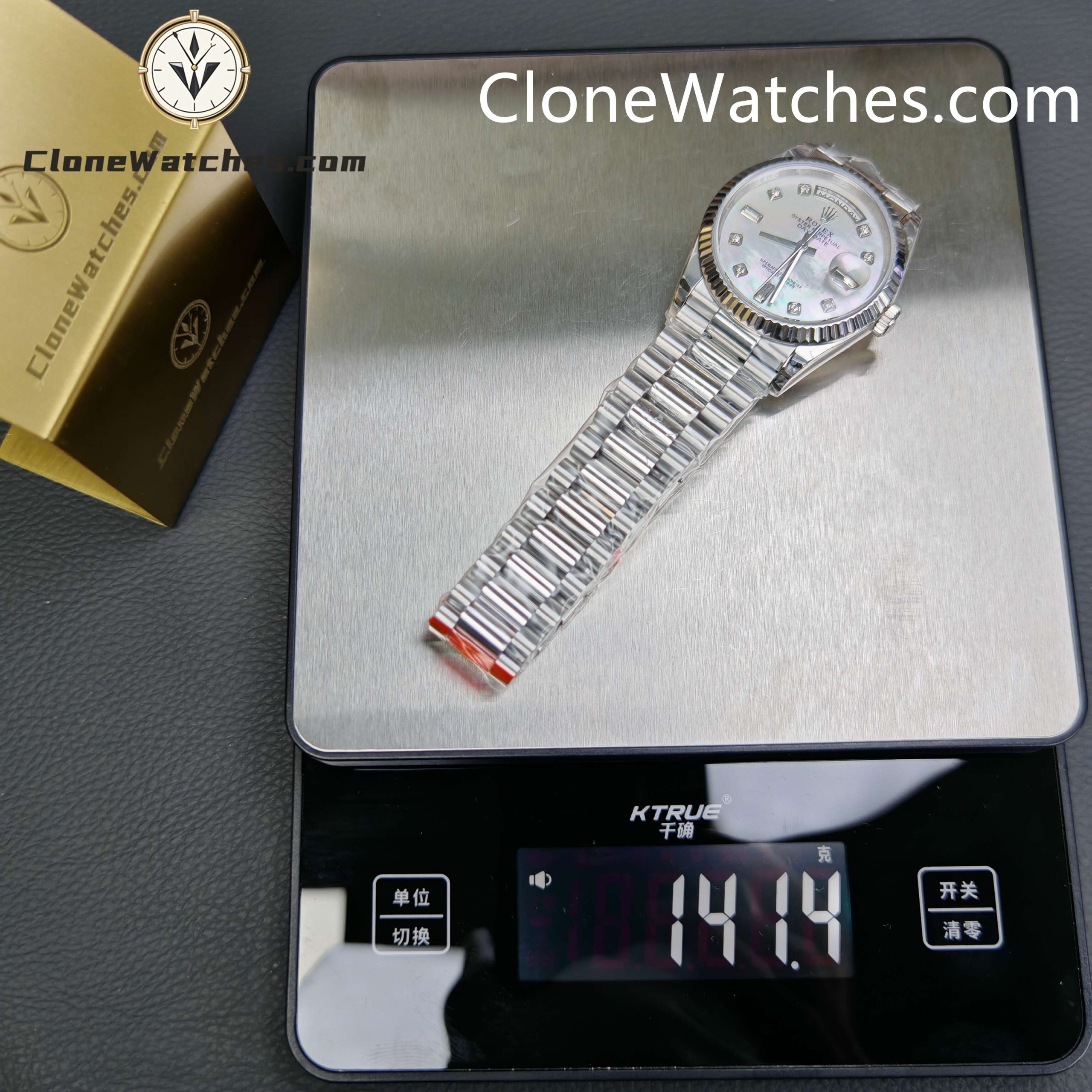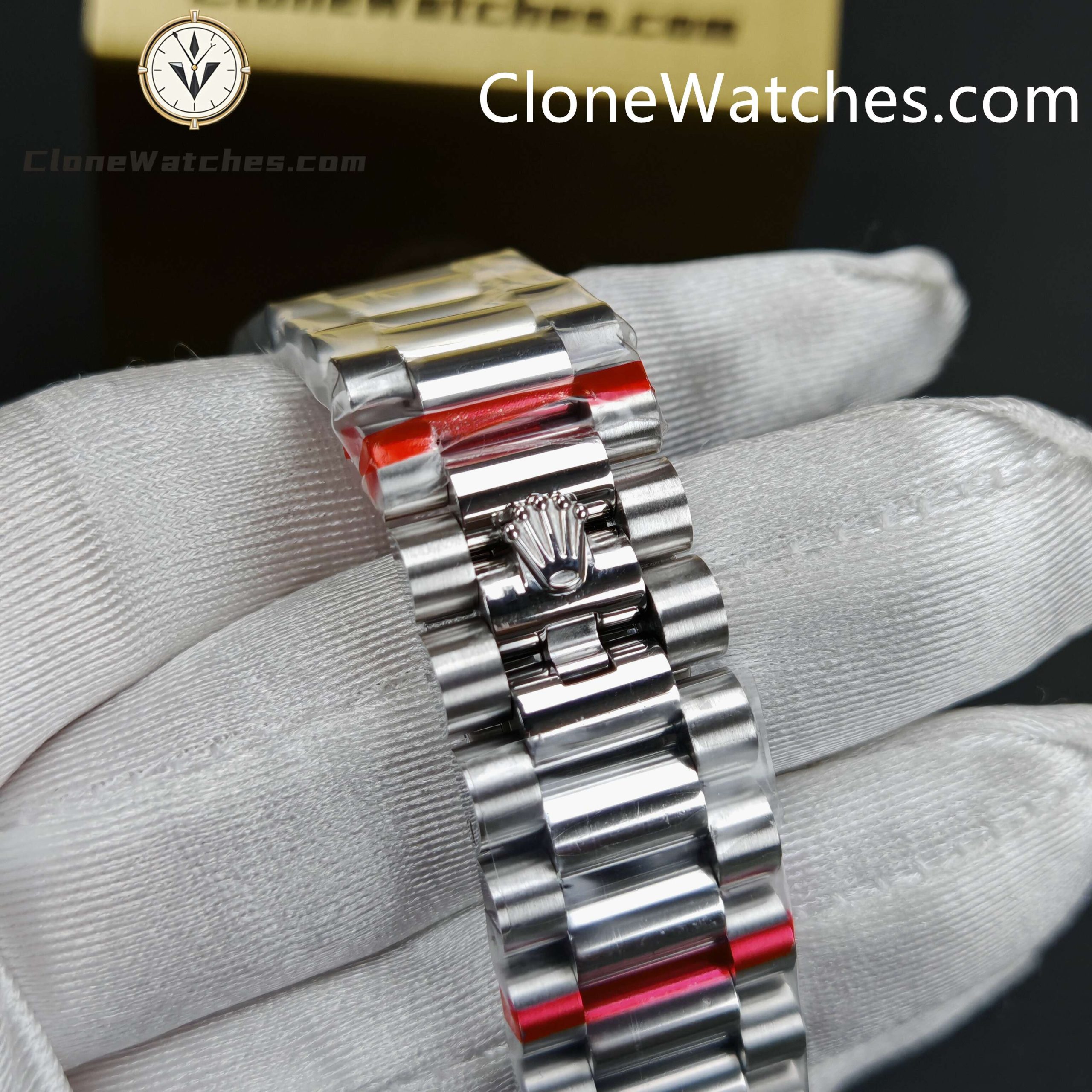 | Front Crystal | Made Of Sapphire, making this Rolex Super Clone Watches Day-Date scratch proof. Laser etched Rolex crown present at 6’O clock on the crystal |